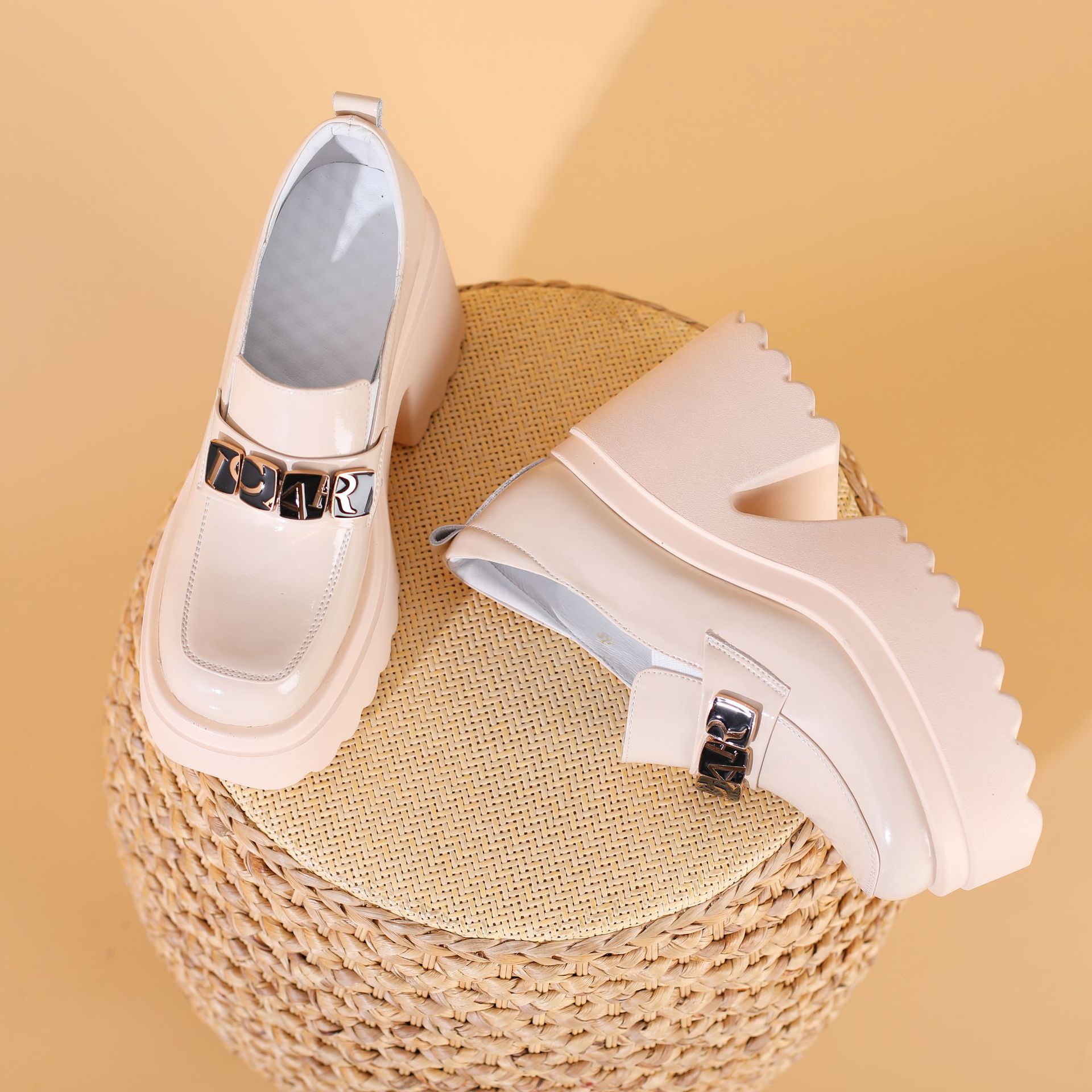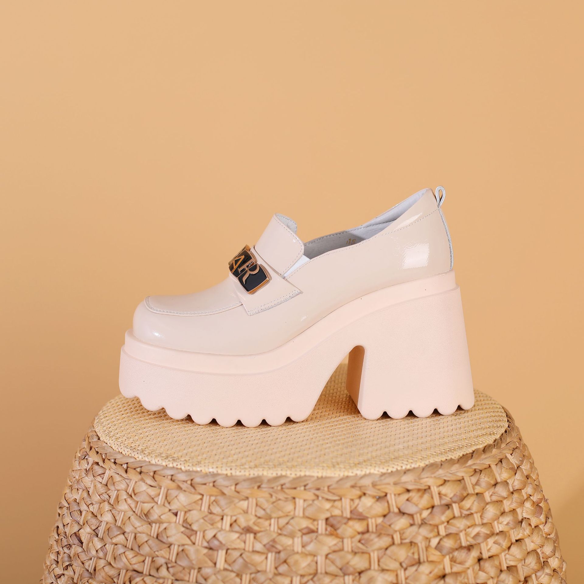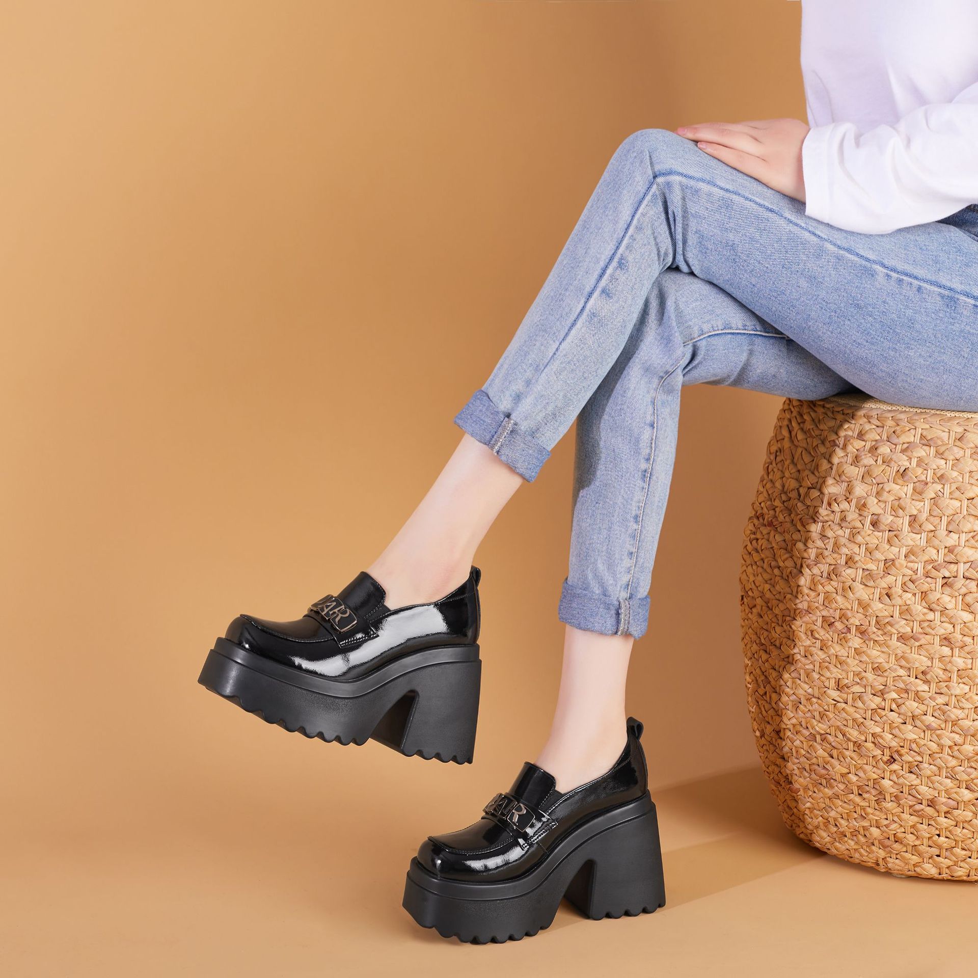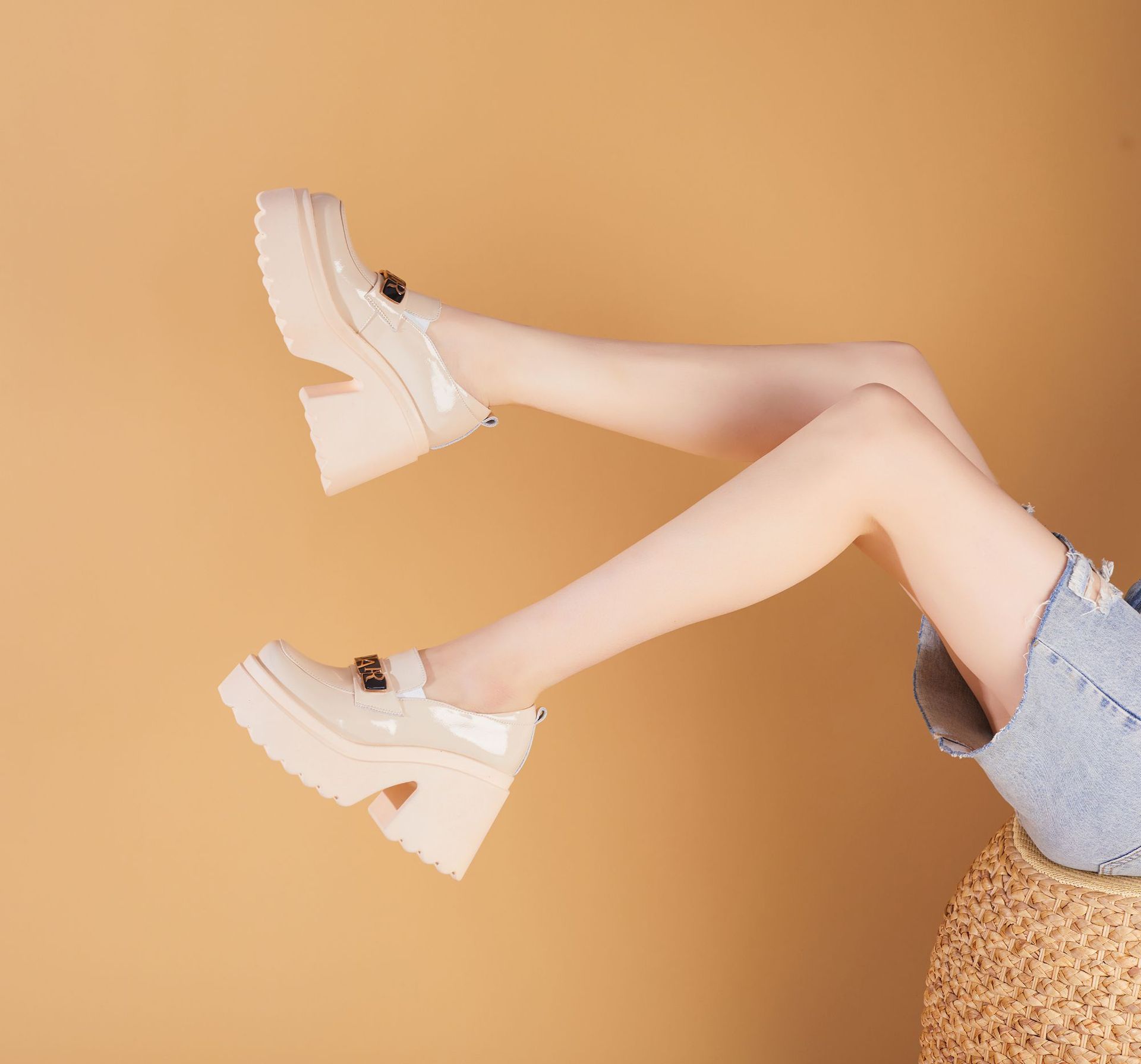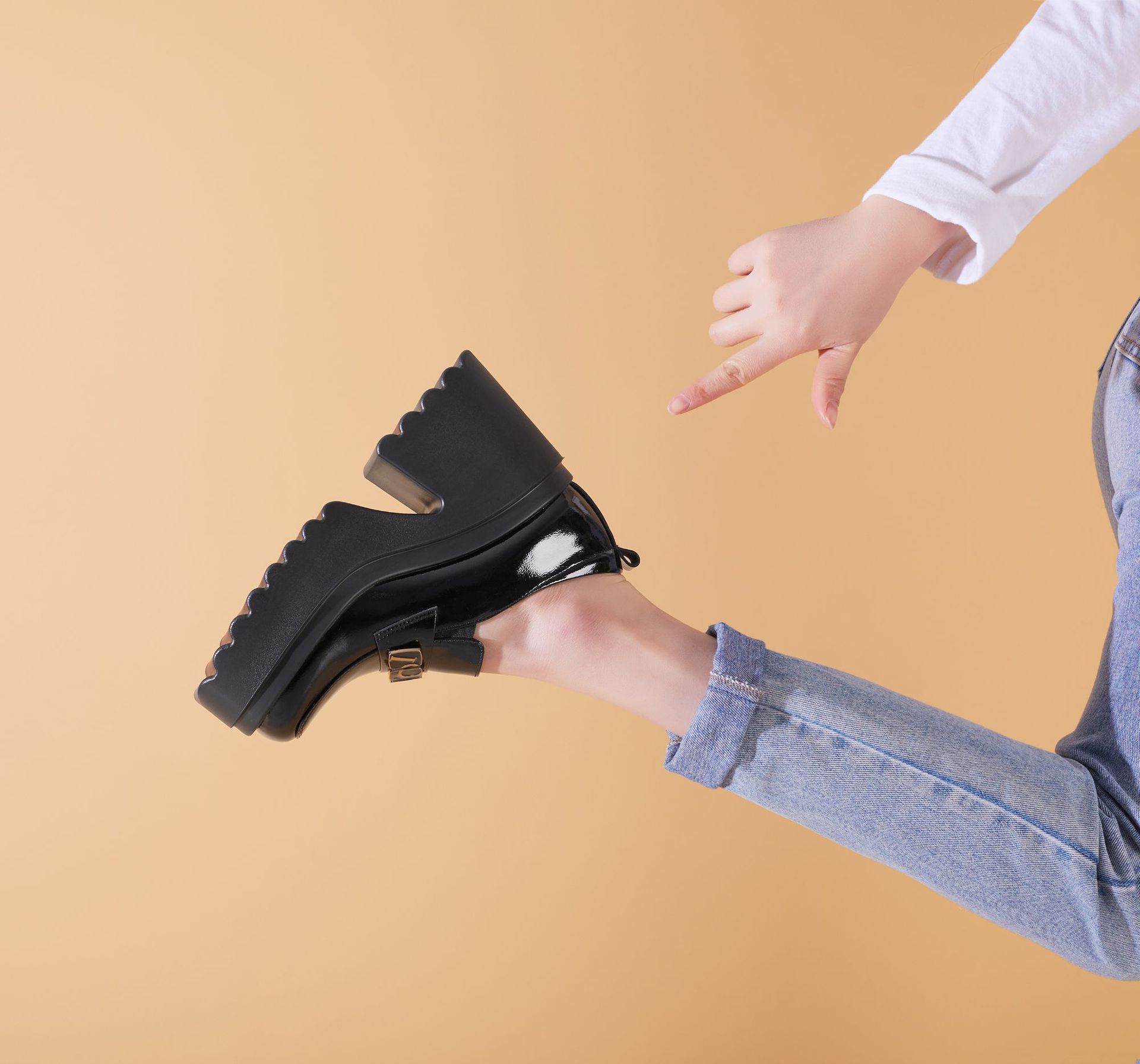 Giày da nữ thiết kế theo phong cách Anh Quốc, phù hợp cho mùa xuân. Sản phẩm có phần đế dày và gót thô cao 10cm, giúp tăng chiều cao một cách thoải mái và vững chãi. Kiểu dáng cổ điển, dễ dàng kết hợp với nhiều trang phục khác nhau như quần jeans, váy hay quần tây. Chỉ cần lau chùi nhẹ nhàng bằng vải mềm sau khi sử dụng để giữ giày luôn sạch đẹp. | Tên sản phẩm: Giày Cao Gót Nữ Cao 10cm Gót Vuông Đế Cao Hàng Mùa Xuân Thu Đông - Giày Dép Nữ | Mã sản phẩm: B4066 - Giá: 1.730.000đ | Mã nhà sản xuất: QIDNG-G05Hình ảnh sản phẩm