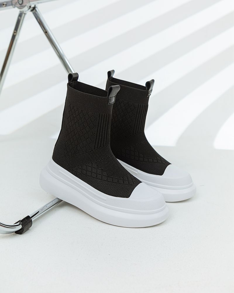 Đôi bốt vải dệt kim dành cho nữ, thiết kế cho thời tiết mùa xuân và mùa thu. Sản phẩm có phần đế bên trong giúp tăng chiều cao một cách tự nhiên. Chất liệu vải dệt co giãn cao, ôm chân thoải mái, tạo cảm giác như đang mang một đôi tất mềm mại. kiểu dáng linh hoạt giữa bốt thể thao và bốt cổ điển, phù hợp cho việc đi lại, dạo phố hay các hoạt động thường ngày. Dễ dàng phối với nhiều loại trang phục khác nhau. | Tên sản phẩm: Giày Boot Martin Nữ Tăng Chiều Cao Hàng Mùa Xuân Thu Đông - Giày Dép Nữ | Mã sản phẩm: B4067 - Giá: 890.000đ | Mã nhà sản xuất: WEDS-G03Hình ảnh sản phẩm