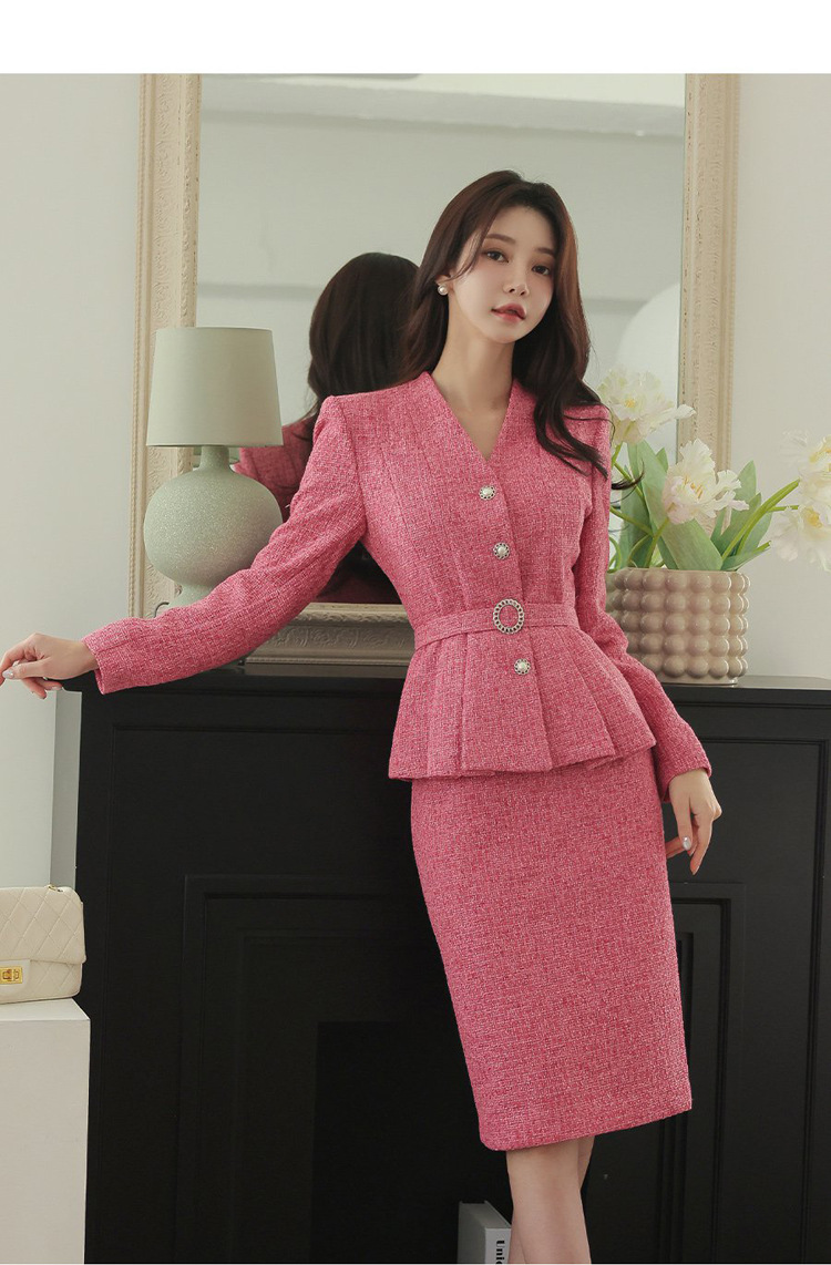 Bộ trang phục này gồm áo khoác mỏng và chân váy ôm, được thiết kế dành riêng cho môi trường công sở. Áo có phần eo được may khéo léo giúp tôn dáng, kết hợp cùng chân váy dáng dài ôm nhẹ nhàng. Chất vải mềm mại, phù hợp mặc trong tiết trời thu đông. Bạn có thể mặc nguyên bộ để tạo vẻ chỉn chu, hoặc phối áo với quần âu khác. Kiểu dáng lịch sự, dễ dàng phối đồ cho những ngày làm việc bận rộn. | Tên sản phẩm: Áo Khoác Nữ Dáng Ôm Cả Bộ 2 Món Hàng Mùa Xuân Thu Đông Phong Cách Hàn Quốc Đồ Công Sở - Thời Trang Nữ | Mã sản phẩm: B4069 - Giá: 1.530.000đ | Mã nhà sản xuất: ZHOUT-G04Hình ảnh sản phẩm