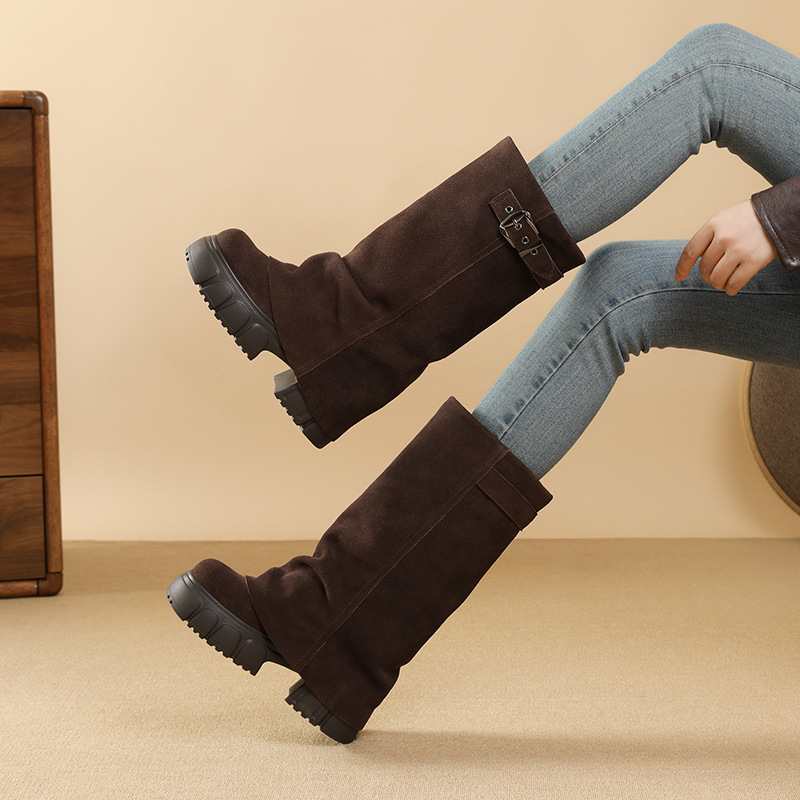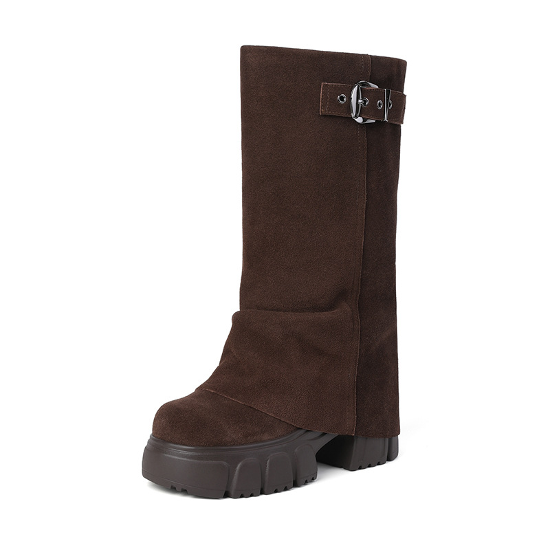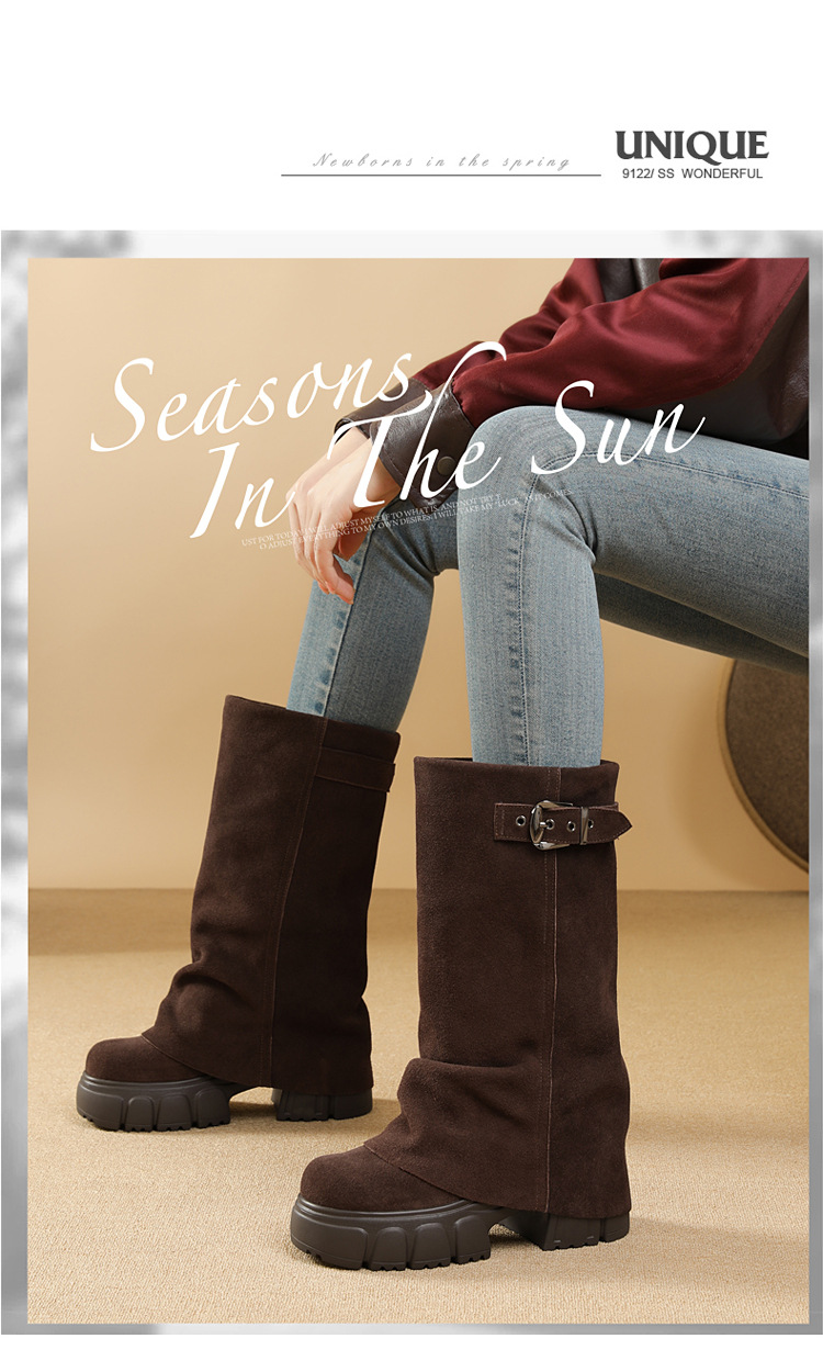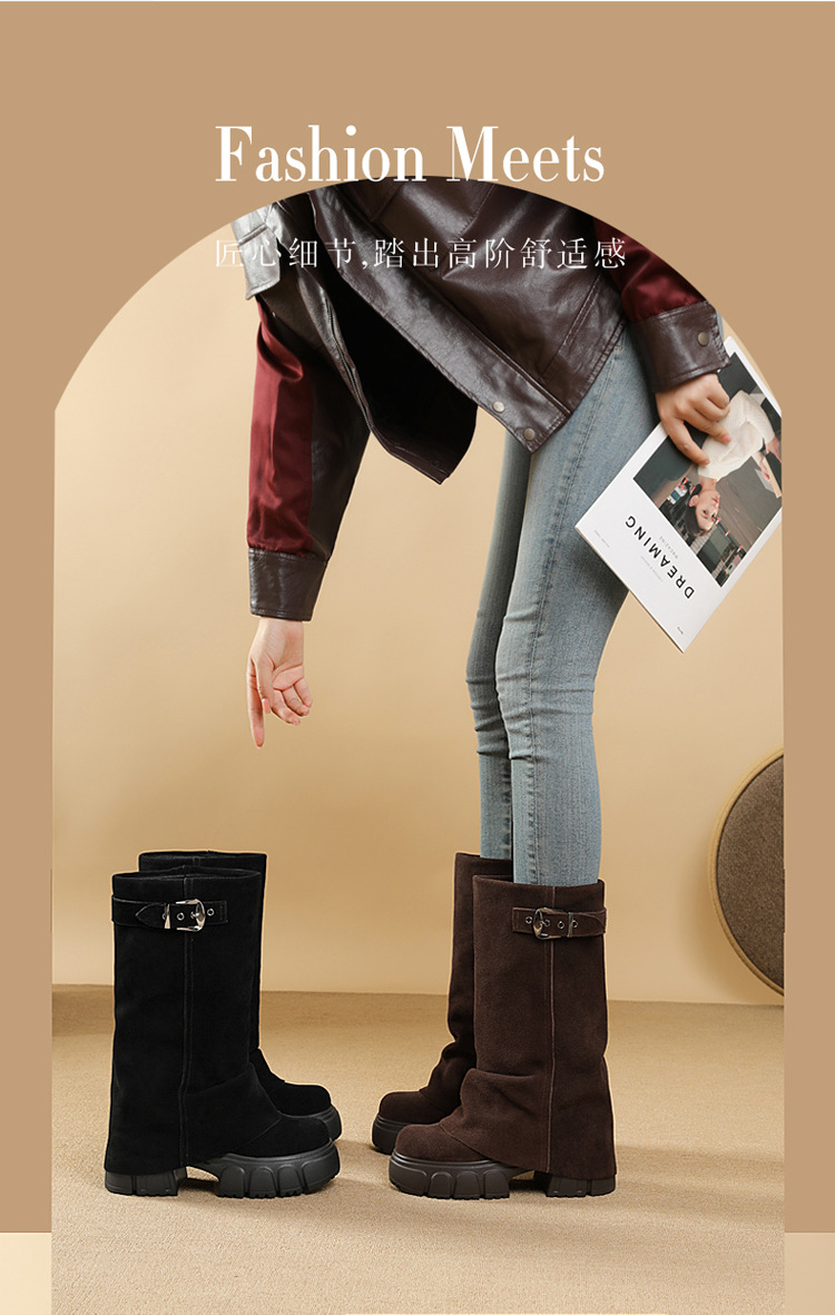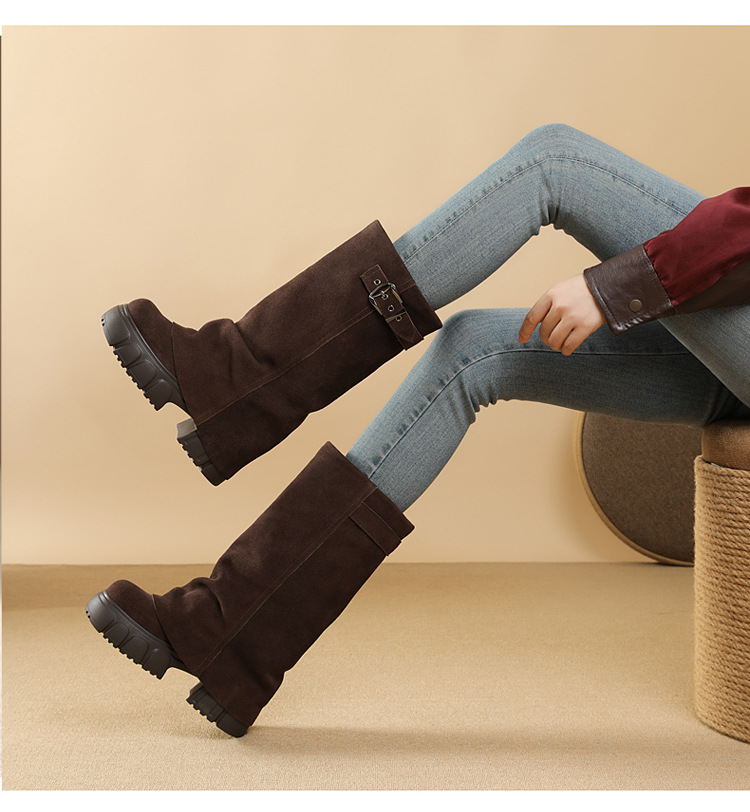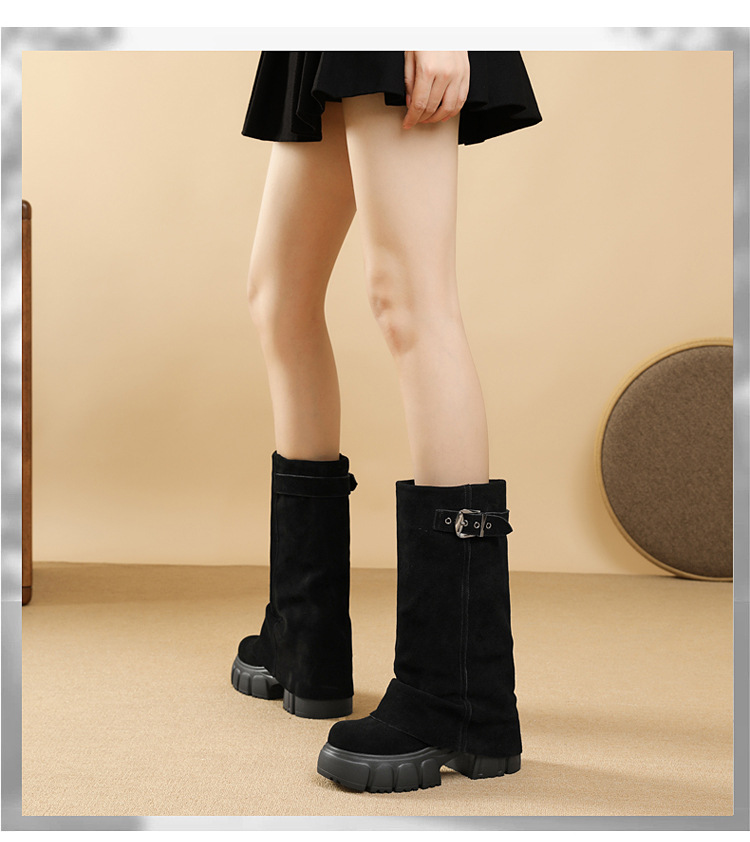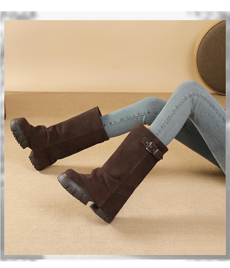 Đôi bốt cổ cao này có phần ống rộng ôm vừa vặn, giúp tạo dáng thanh thoát hơn. Kiểu dáng cổ điển với đế dày tăng chiều cao nhẹ nhàng, điểm nhấn là khóa cài bằng kim loại ở phía trước. Chất liệu giả da bền đẹp, màu nâu dễ phối đồ. Sản phẩm thích hợp mặc trong mùa thu đông, kết hợp cùng quần legging, áo len hay jacket để có vẻ ngoài ấm áp và thời trang. | Tên sản phẩm: Boot Cổ Cao Nữ Cao 10cm Tăng Chiều Cao Đế Cao Hàng Mùa Xuân Thu Đông - Giày Dép Nữ | Mã sản phẩm: B4090 - Giá: 2.600.000đ | Mã nhà sản xuất: QIDNG-G06Hình ảnh sản phẩm