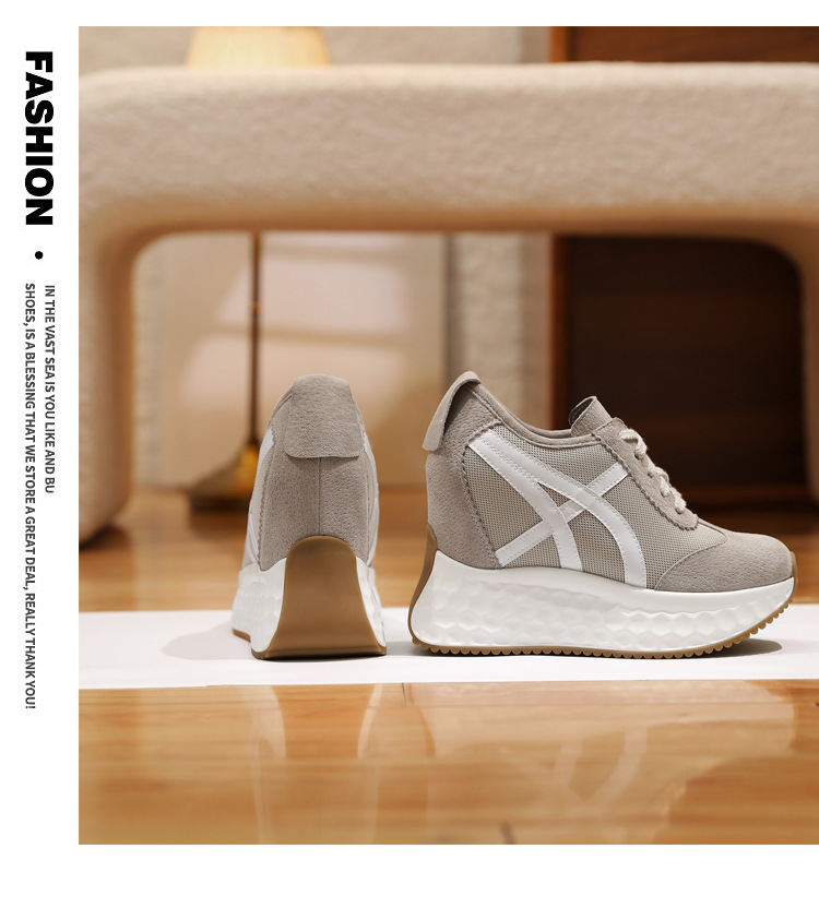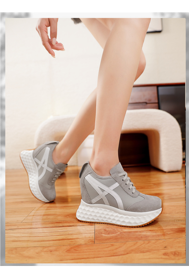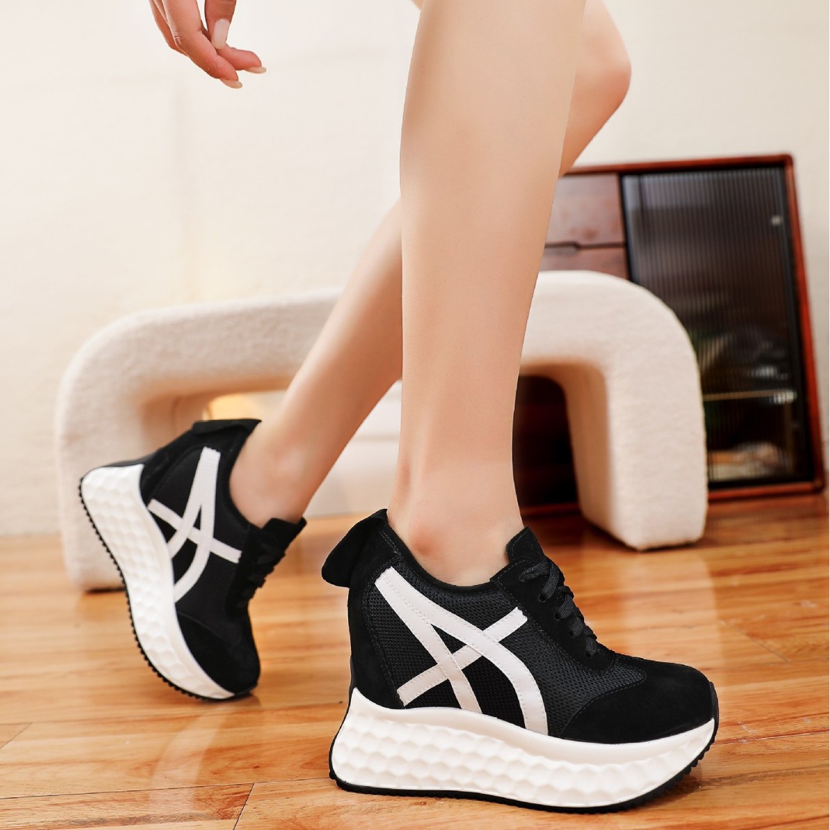 Giày thể thao nữ với phần đế dày 12cm, giúp tôn dáng hiệu quả. Thiết kế mặt trên bằng vải lưới thoáng khí, mang lại cảm giác dễ chịu khi mang cả ngày. Kiểu dáng cổ điển và dễ phối đồ, phù hợp cho các hoạt động hằng ngày hoặc lúc vận động nhẹ. Sản phẩm là lựa chọn thiết thực cho mùa thu. Chỉ cần xỏ chân vào và cột dây giày là bạn đã sẵn sàng để bước đi thoải mái. | Tên sản phẩm: Giày Thể Thao Nữ Cao 12cm Thoáng Khí Đế Cao Hàng Mùa Xuân Thu Đông - Giày Dép Nữ | Mã sản phẩm: B4102 - Giá: 1.830.000đ | Mã nhà sản xuất: QIDNG-G05Hình ảnh sản phẩm