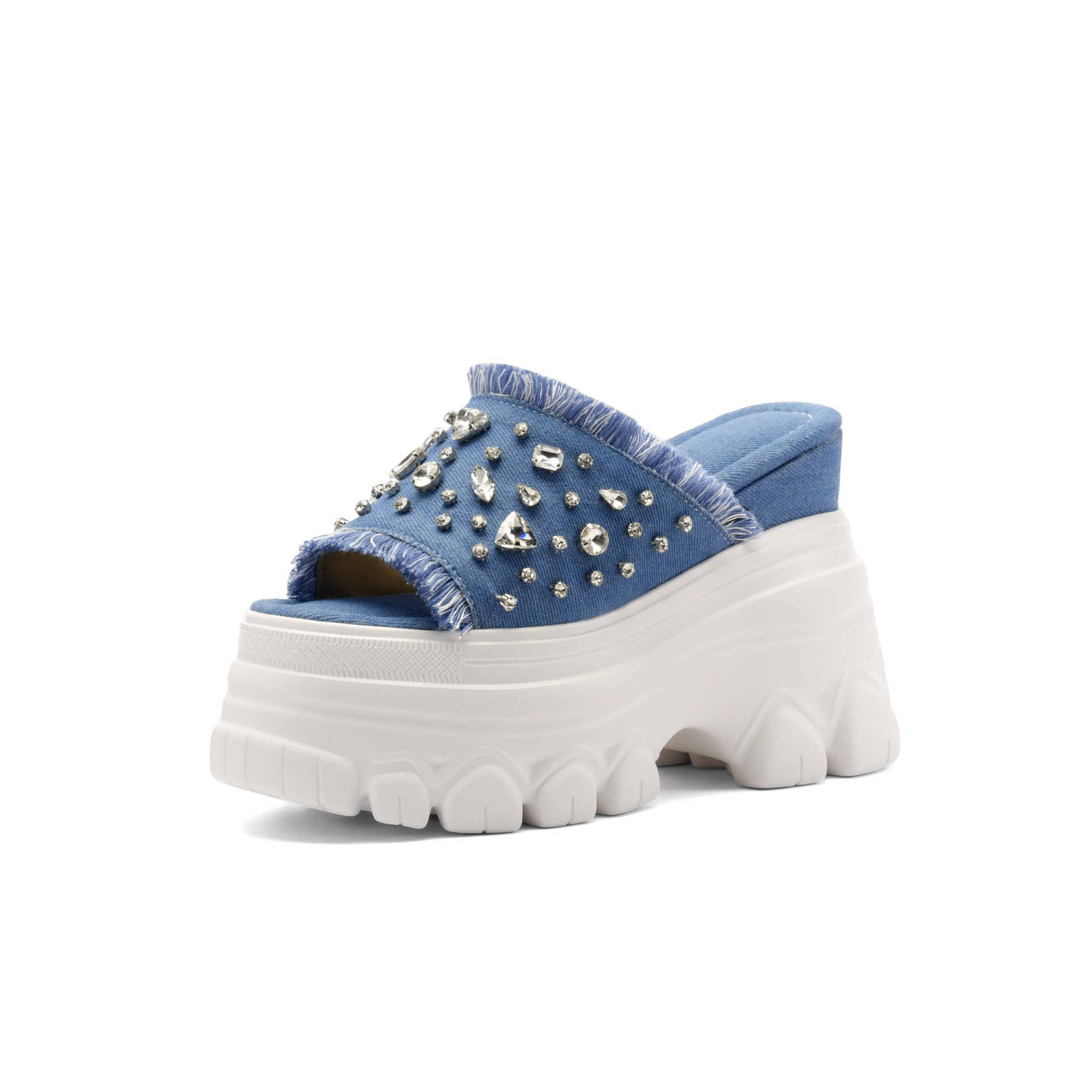 Giày dép mùa hè mới với phần đế cao mười hai phân, tạo dáng điệu đà cho người sử dụng. Kiểu dáng hài hòa giữa dép xỏ ngón và giày thể thao, mang đến sự thoải mái khi dùng. Chất liệu chính từ vải bố bền chắc, kết hợp điểm nhấn là các viên đá lấp lánh. Sản phẩm thích hợp để diện trong nhiều dịp, từ dạo phố đến gặp gỡ bạn bè. Cách dùng đơn giản, xỏ chân vào và điều chỉnh qu cho vừa vặn. | Tên sản phẩm: Cao Gót Nữ Chất Liệu Vải Thô Cao 12cm Gắn Đá Đế Xuồng Đế Cao Hàng Mùa Hè - Giày Dép Nữ | Mã sản phẩm: B4105 - Giá: 2.120.000đ | Mã nhà sản xuất: QIDNG-G05Hình ảnh sản phẩm