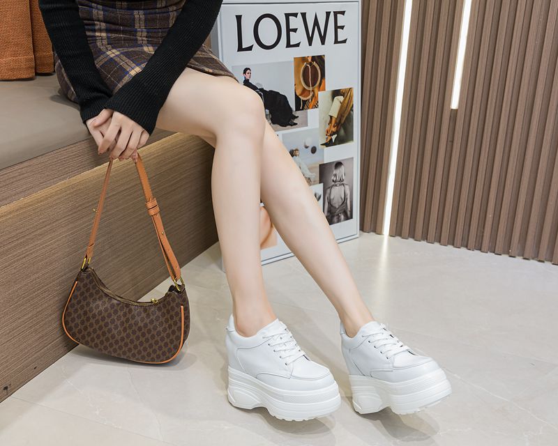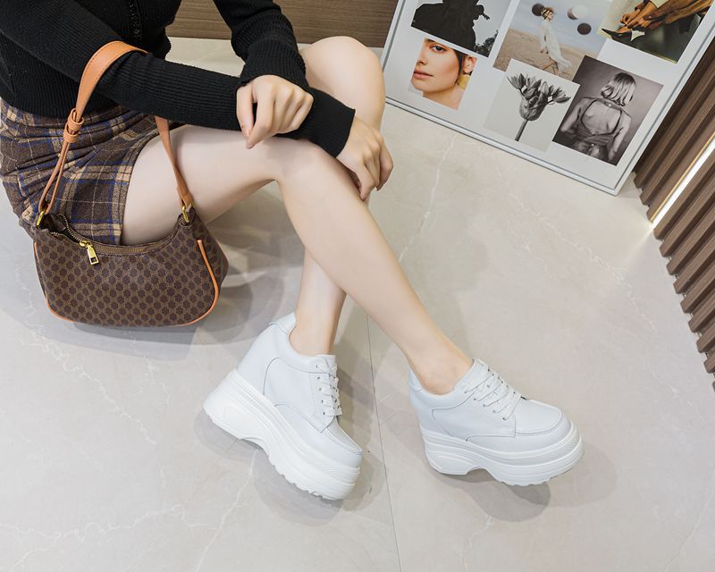 Đôi giày này có phần đế được thiết kế tăng thêm chiều cao một cách khéo léo, giúp bạn thêm tự tin mỗi bước chân. Kiểu dáng giày vải trắng cổ thấp dễ dàng phối hợp với nhiều loại trang phục khác nhau như quần jeans hay váy ngắn. Chất liệu từ da thật mang lại cảm giác thoải mái và bền lâu khi sử dụng. Bạn chỉ cần xỏ chân vào và kéo khóa nhẹ nhàng là đã có ngay một vẻ ngoài năng động và tươi tắn. | Tên sản phẩm: Giày Thể Thao Tăng Chiều Cao Nữ Chất Liệu Da Bò Tăng Chiều Cao Đế Cao Hàng Mùa Xuân Thu Đông - Giày Dép Nữ | Mã sản phẩm: B4125 - Giá: 1.000.000đ | Mã nhà sản xuất: WEDS-G03Hình ảnh sản phẩm