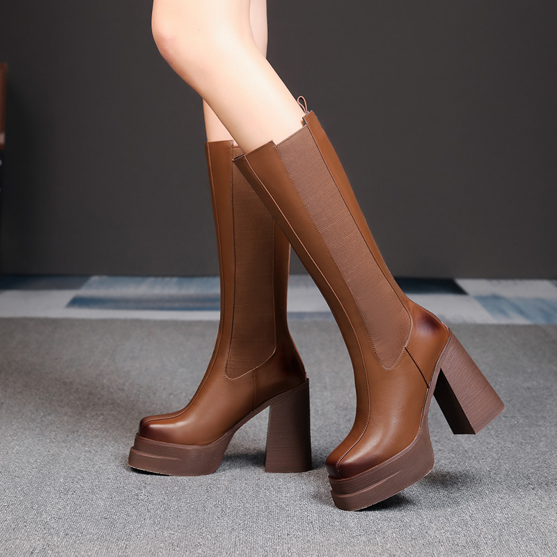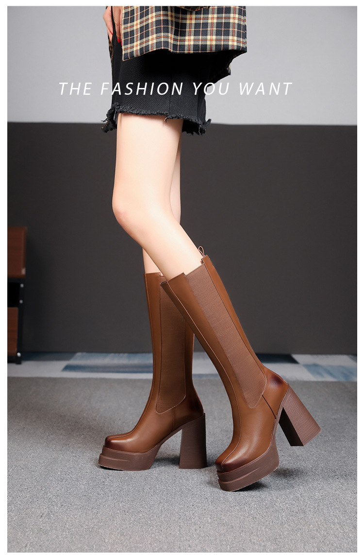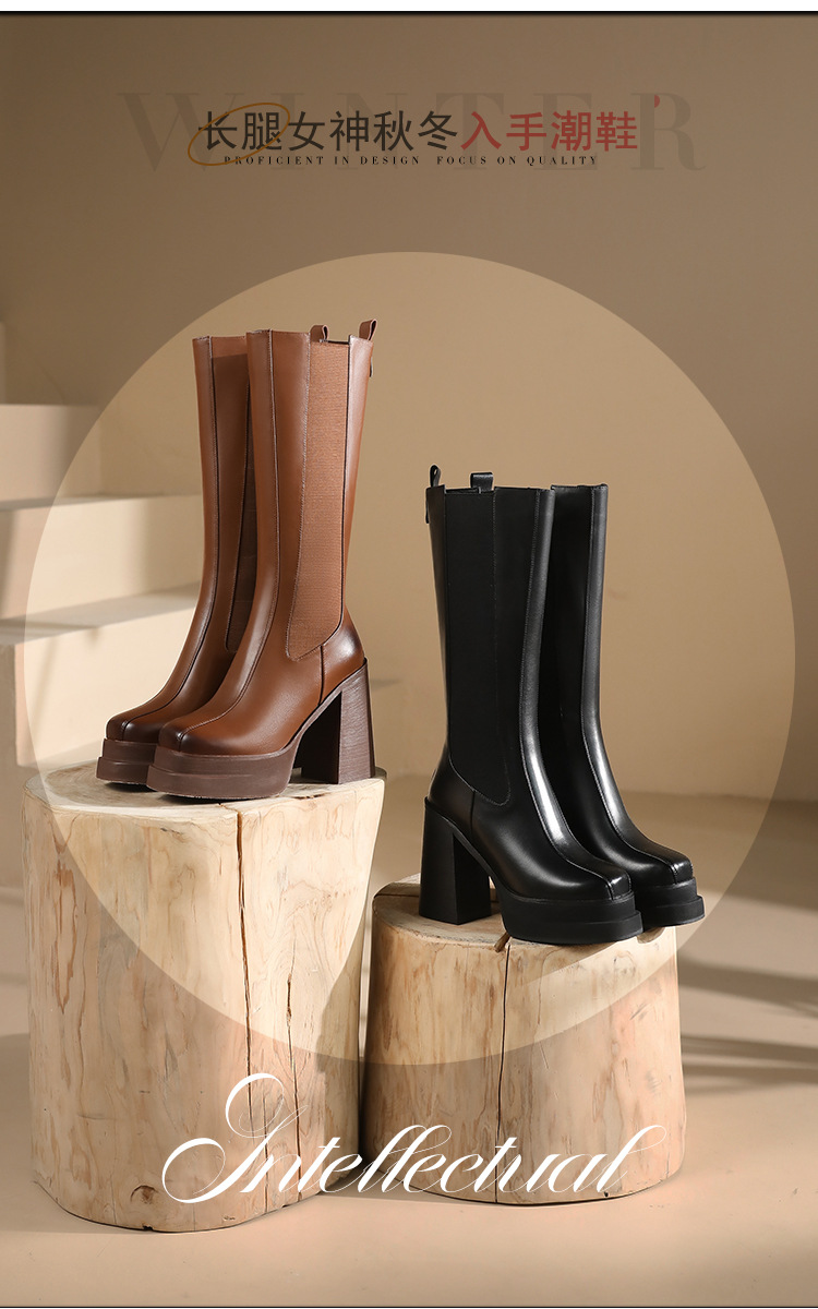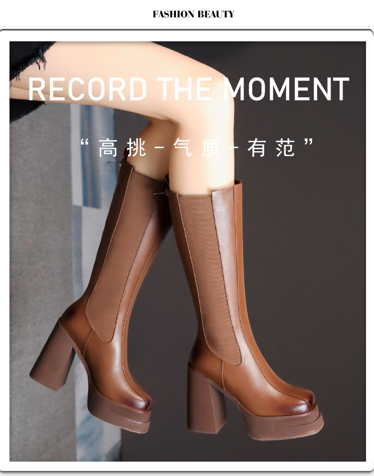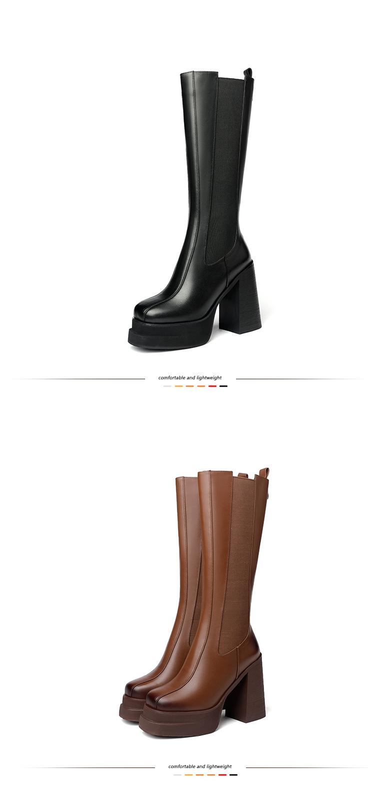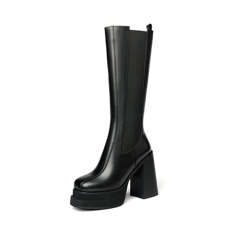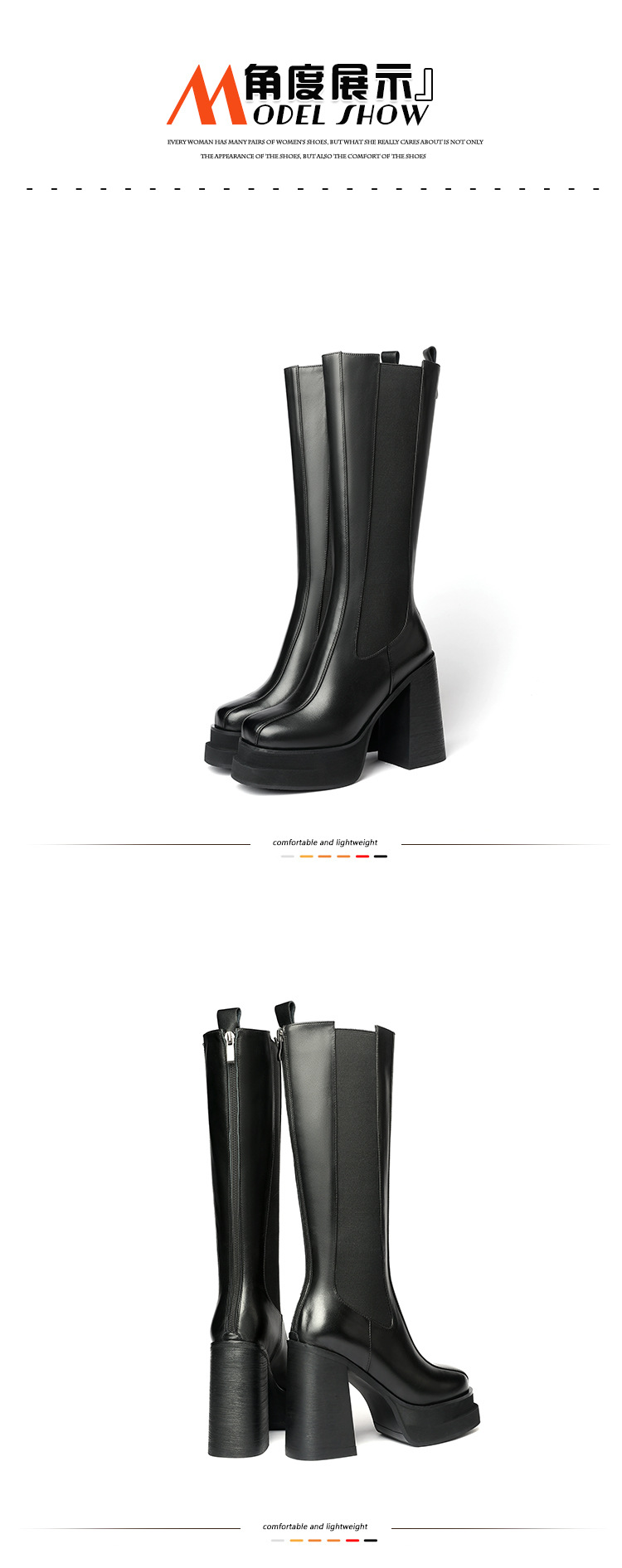 Đôi bốt dáng cao mới ra, với phần đế dày vững chắc và gót thô thời trang, giúp tăng chiều cao lên đến mười hai phân. Kiểu dáng ôm chân, chiều dài thiết kế vừa phải không vượt quá đầu gối, dễ dàng phối cùng nhiều loại trang phục khác nhau. Chất liệu hỗ trợ chống nước nhẹ, thuận tiện sử dụng trong nhiều dịp. Khi mang, bạn nên kéo khóa kỹ để bốt ôm sát và thoải mái hơn. | Tên sản phẩm: Giày Cao Gót Nữ Cao 12cm Cổ Cao Qua Gối Gót Vuông Hàng Mùa Xuân Thu Đông - Giày Dép Nữ | Mã sản phẩm: B4131 - Giá: 2.690.000đ | Mã nhà sản xuất: QIDNG-G06Hình ảnh sản phẩm