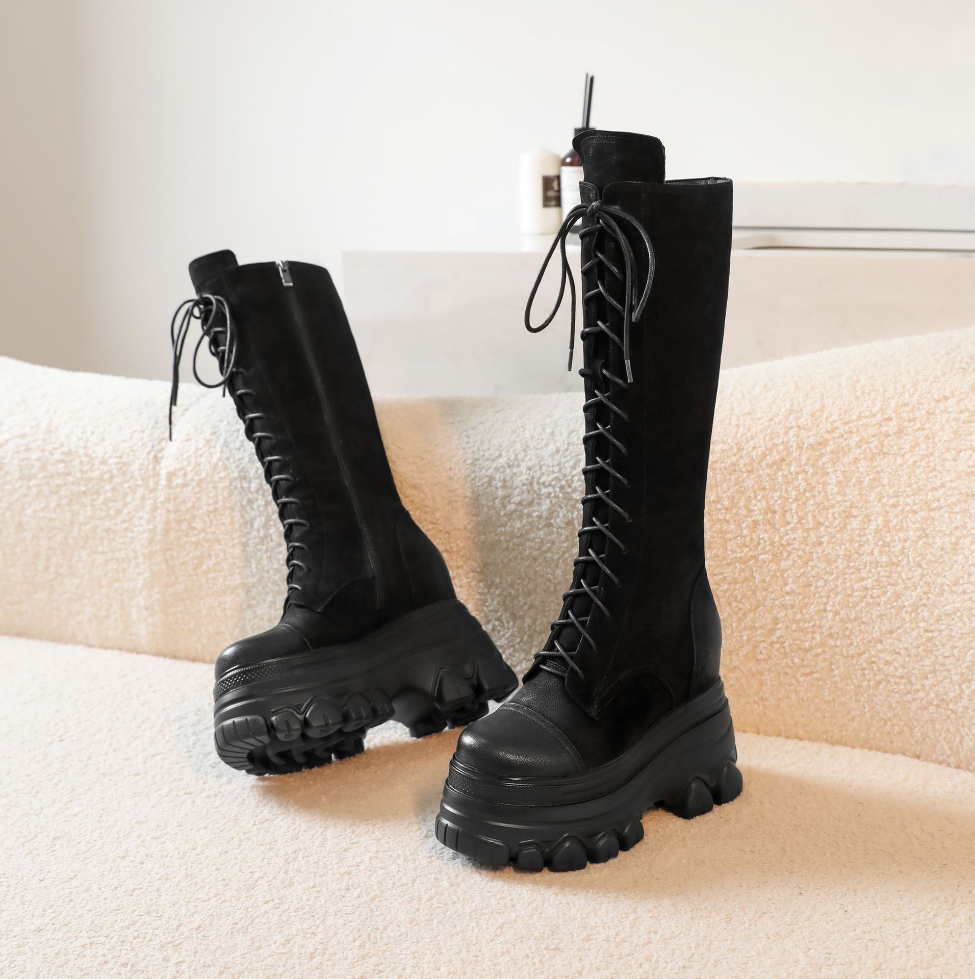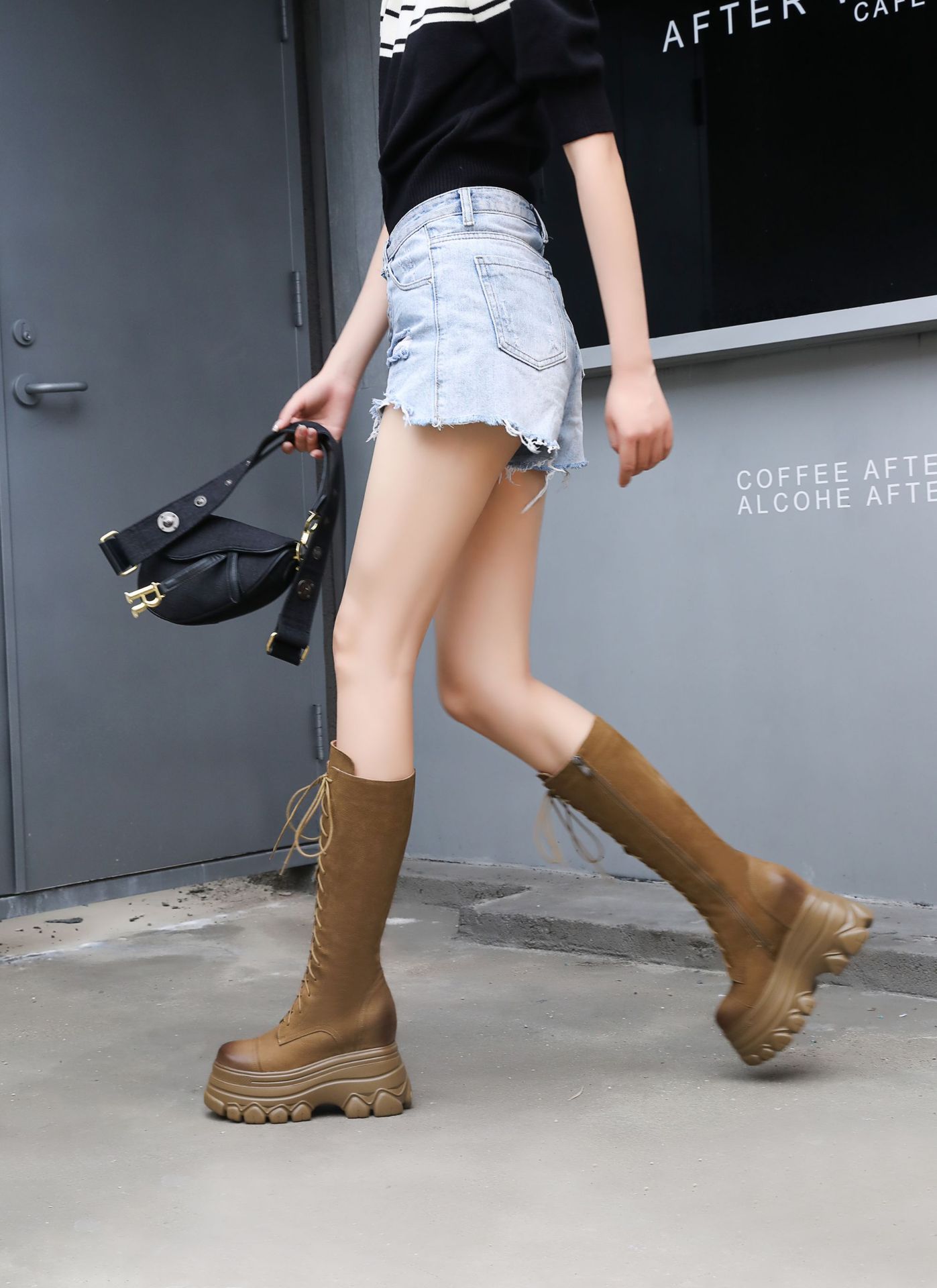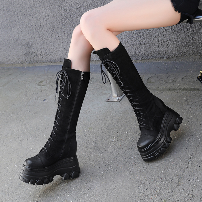Đôi bốt cổ cao này có phần đế bên trong giúp tăng chiều cao lên đến mười hai xăng-ti-mét, rất phù hợp cho những người có vóc dáng nhỏ. Kiểu dáng thiết kế theo phong cách Anh, cổ bốt dài vừa phải không vượt quá đầu gối. Đế ngoài dày dặn giúp bước đi vững chãi và thoải mái. Bạn có thể dễ dàng phối hợp với nhiều trang phục khác nhau để tạo nên vẻ ngoài cá tính cho mùa thu đông. | Tên sản phẩm: Cao Gót Nữ Cao 12cm Cổ Cao Qua Gối Tăng Chiều Cao Đế Cao Hàng Mùa Xuân Thu Đông - Giày Dép Nữ | Mã sản phẩm: B4133 - Giá: 4.260.000đ | Mã nhà sản xuất: QIDNG-G06Hình ảnh sản phẩm