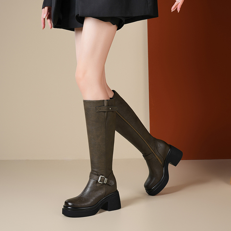 Đôi bốt cổ trung dành cho các bạn nữ, được làm từ chất liệu da thật, mang đến cảm giác mềm mại và bền đẹp. Thiết kế phần đế dày kết hợp gót chắc chắn, tăng thêm chiều cao một cách tinh tế. Kiểu dáng bốt kỵ sĩ ôm ống chân, tôn lên vẻ năng động và khỏe khoắn. Rất phù hợp để diện cùng quần jeans hay váy trong tiết trời thu đông. Dễ dàng phối đồ và tạo điểm nhấn cá tính cho người mặc. | Tên sản phẩm: Boot Cổ Cao Nữ Chất Liệu Da Bò Cao 10cm Cổ Cao Qua Gối Tăng Chiều Cao Đế Cao Hàng Mùa Xuân Thu Đông - Giày Dép Nữ | Mã sản phẩm: B4136 - Giá: 2.020.000đ | Mã nhà sản xuất: QIDNG-G05Hình ảnh sản phẩm
