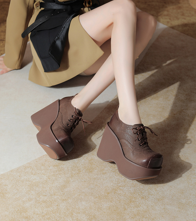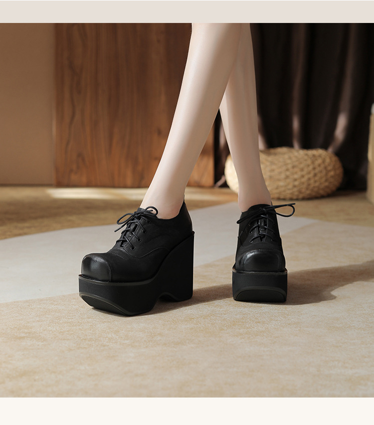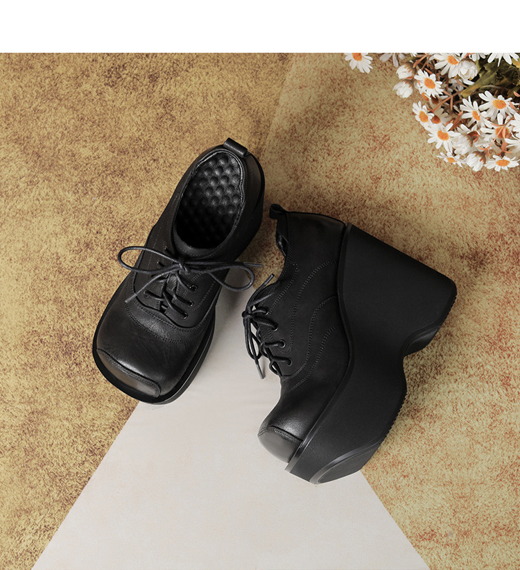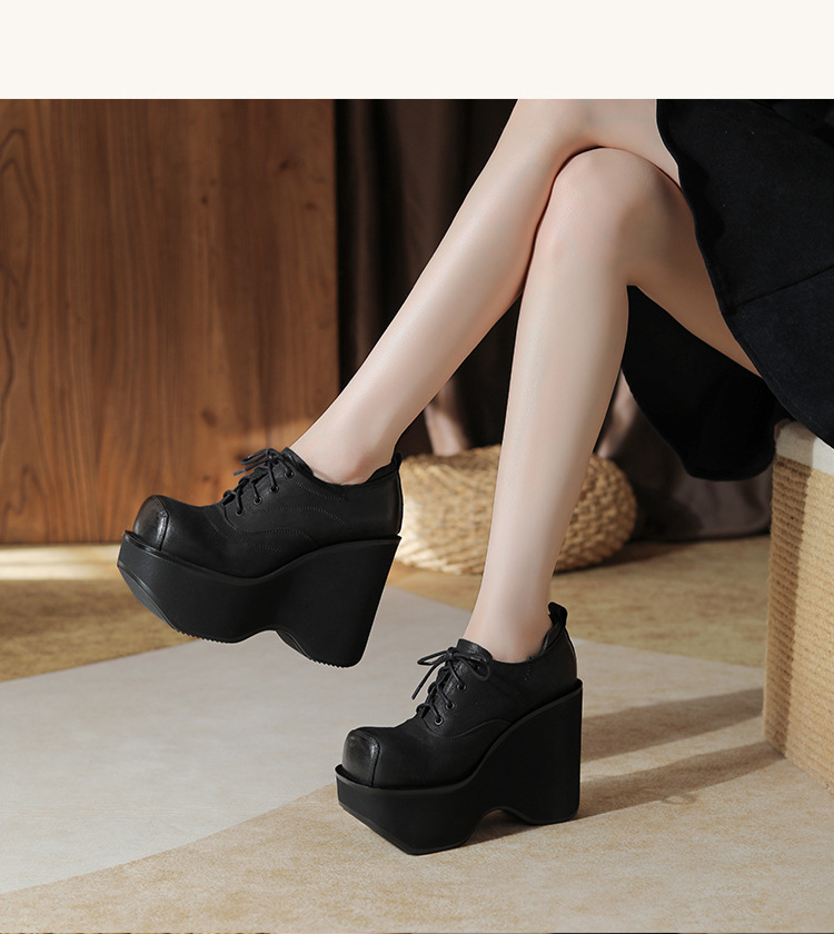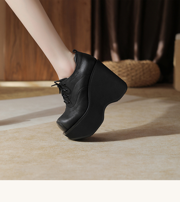 Đôi giày này có phần đế dày và bền vững, giúp tăng chiều cao một cách thoải mái. Kiểu dáng mang phong cách cổ điển với dây cột duyên dáng ở mu bàn chân, tạo điểm nhấn nữ tính. Sản phẩm được làm từ chất liệu da mềm mại, ôm chân nhưng không gây khó chịu. Bạn có thể dễ dàng phối hợp với nhiều loại trang phục như váy, quần jeans để tạo nên vẻ ngoài cá tính và trẻ trung cho mỗi bước đi. | Tên sản phẩm: Giày Cao Gót Nữ Chất Liệu Da Bò Cao 12cm Đế Cao Phục Cổ Cổ Điển - Giày Dép Nữ | Mã sản phẩm: B4141 - Giá: 2.680.000đ | Mã nhà sản xuất: QIDNG-G06Hình ảnh sản phẩm