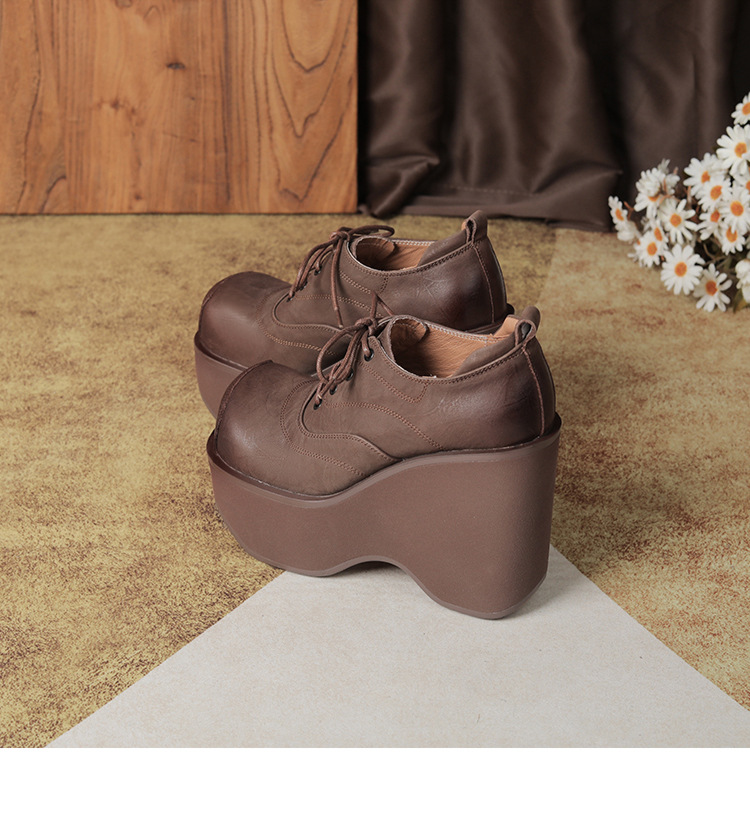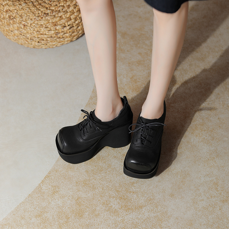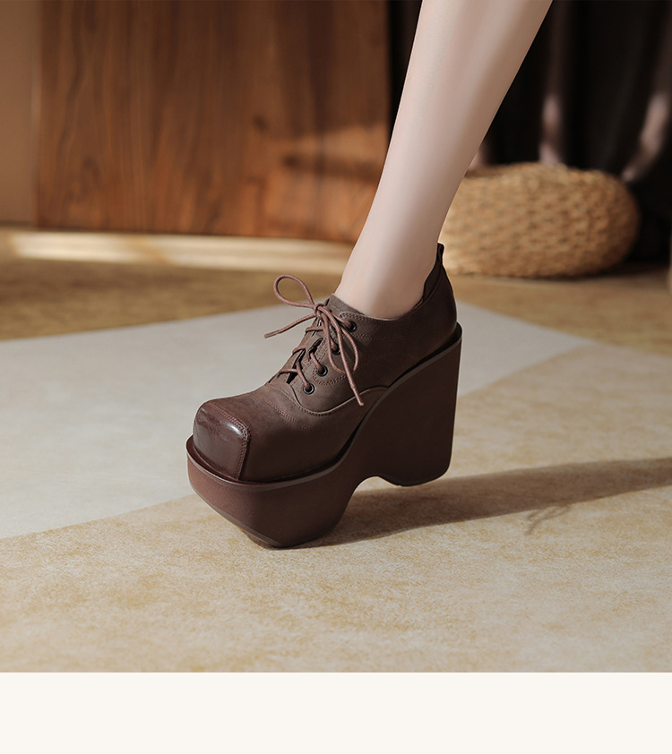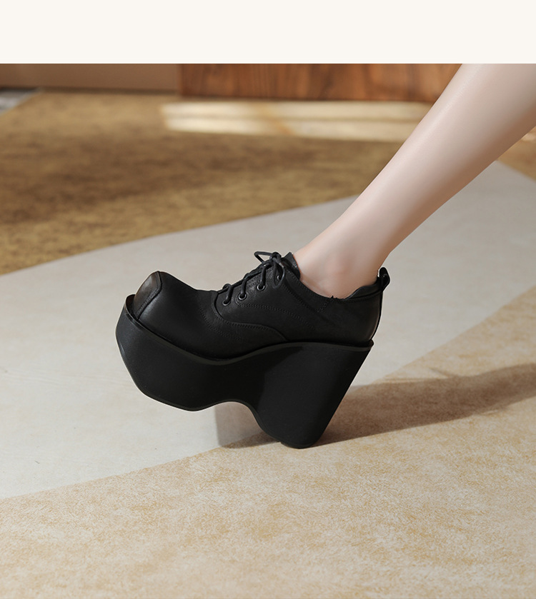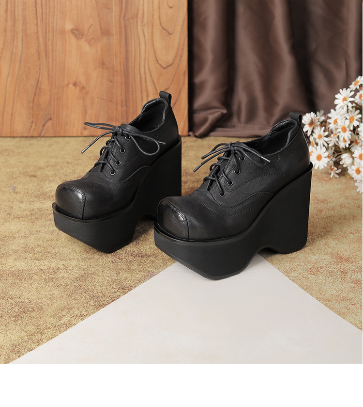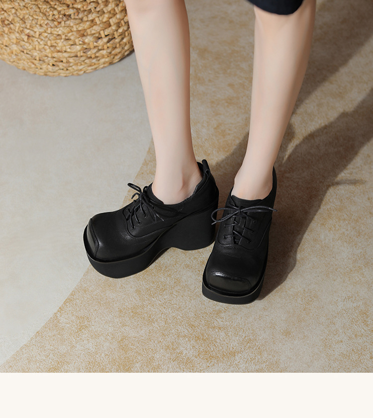 Đôi giày này có phần đế dày và bền vững, giúp tăng chiều cao một cách thoải mái. Kiểu dáng mang phong cách cổ điển với dây cột duyên dáng ở mu bàn chân, tạo điểm nhấn nữ tính. Sản phẩm được làm từ chất liệu da mềm mại, ôm chân nhưng không gây khó chịu. Bạn có thể dễ dàng phối hợp với nhiều loại trang phục như váy, quần jeans để tạo nên vẻ ngoài cá tính và trẻ trung cho mỗi bước đi. | Tên sản phẩm: Giày Cao Gót Nữ Chất Liệu Da Bò Cao 12cm Đế Cao Phục Cổ Cổ Điển - Giày Dép Nữ | Mã sản phẩm: B4141 - Giá: 2.680.000đ | Mã nhà sản xuất: QIDNG-G06Hình ảnh sản phẩm
