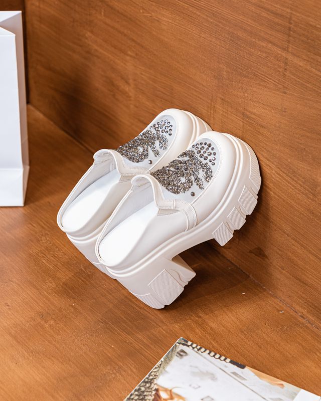 Đôi giày này được làm từ chất liệu da mềm mại, phần mũi bọc kín nhưng thân giày có thiết kế dạng lưới thoáng khí, tạo cảm giác mát mẻ. Kiểu dáng giày lười dễ mang, không cần buộc dây. Đế giày dạng platform cao, kết hợp gót thô chắc chắn giúp tăng chiều cao một cách nhẹ nhàng. Đây là mẫu giày l giữa dép xăng-đan và giày nguyên khối, phù hợp cho những ngày cần sự thoải mái mà vẫn gọn gàng. | Tên sản phẩm: Giày Cao Gót Nữ Chất Liệu Da Bò Lưới Mỏng Gót Vuông Tăng Chiều Cao Thoáng Khí Đế Cao - Giày Dép Nữ | Mã sản phẩm: B4142 - Giá: 1.020.000đ | Mã nhà sản xuất: WEDS-G03Hình ảnh sản phẩm
