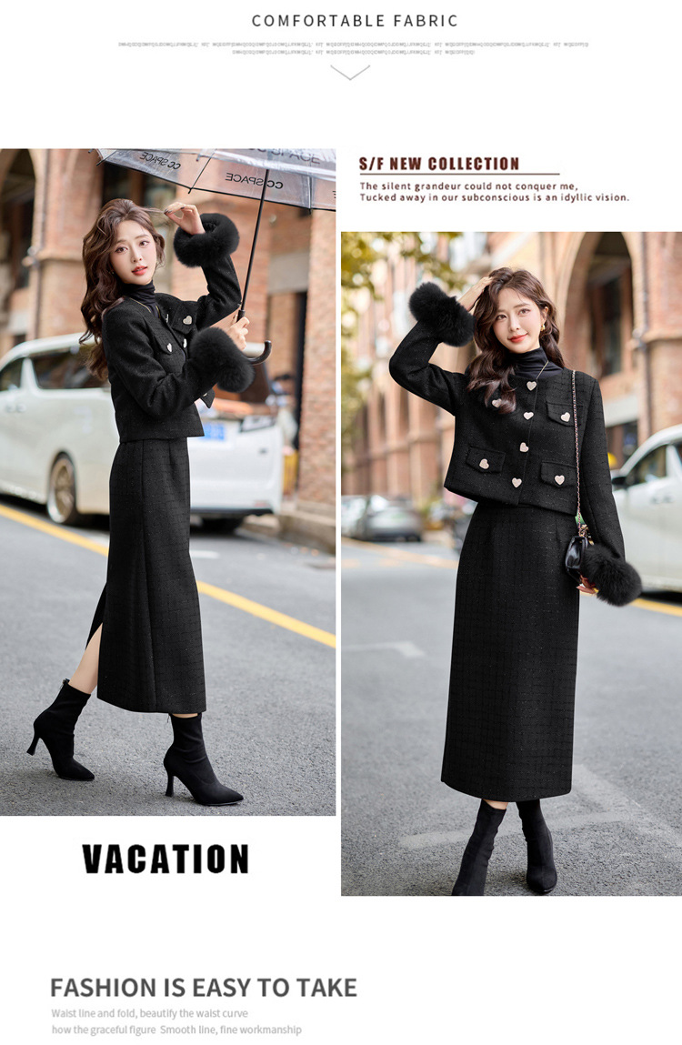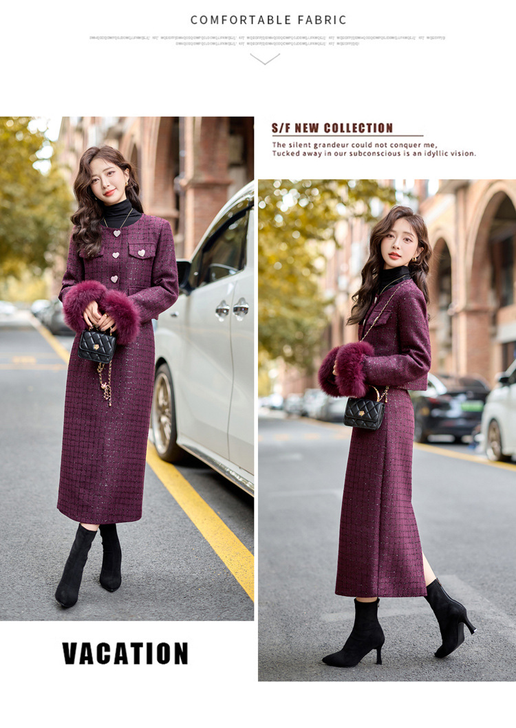 Bộ trang phục mùa đông này gồm áo khoác dáng dài và chân váy ngắn, tạo vẻ thanh thoát. Áo được lót lớp lông vũ giữ ấm tốt, điểm nhấn là phần viền cổ tay làm từ lông thú mềm mại, mang lại cảm giác ấm áp và quyến rũ. Chân váy xòe nhẹ ôm sát eo, kết hợp cùng áo giúp tôn dáng. Có thể mặc nguyên bộ hoặc phối với các trang phục khác, phù hợp cho nhiều dịp trong mùa lạnh. | Tên sản phẩm: Áo Khoác Nữ Cả Bộ 2 Món Hàng Mùa Xuân Thu Đông - Thời Trang Nữ | Mã sản phẩm: B4148 - Giá: 3.580.000đ | Mã nhà sản xuất: HADG-G06Hình ảnh sản phẩm