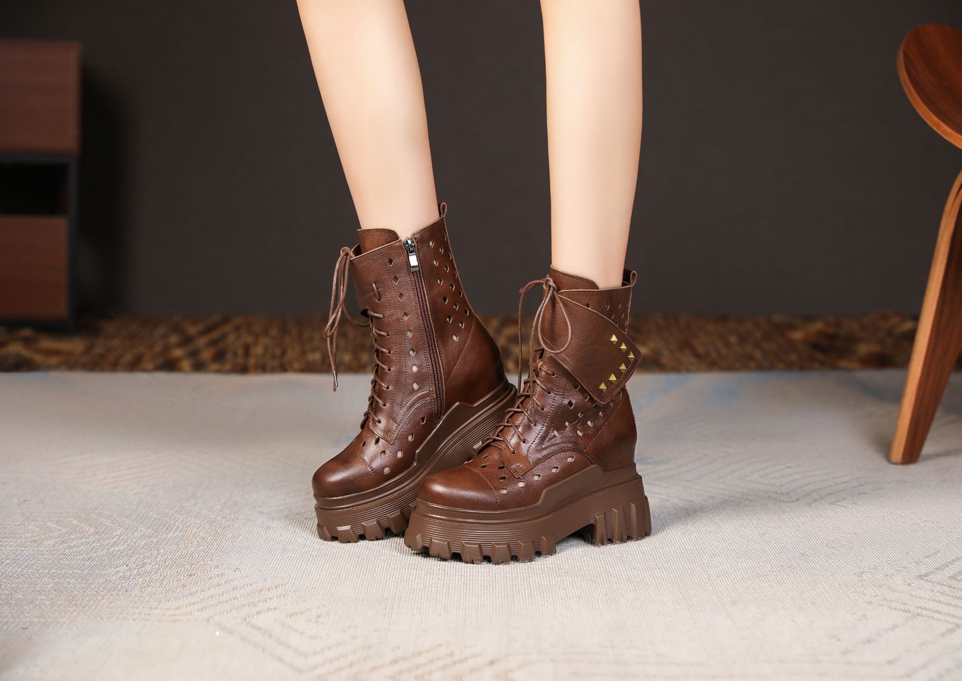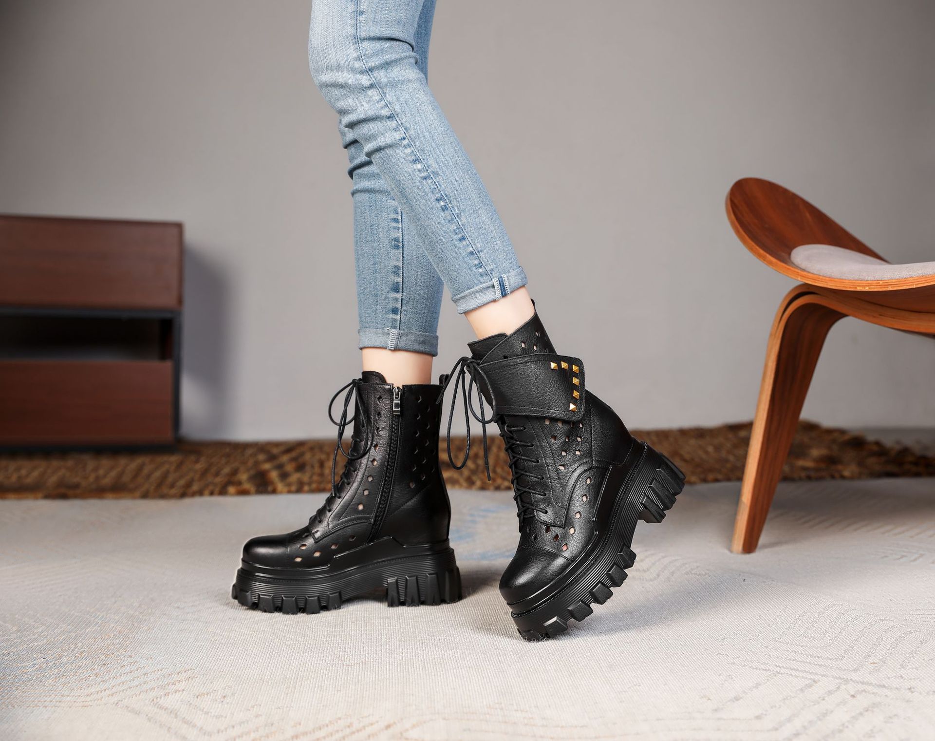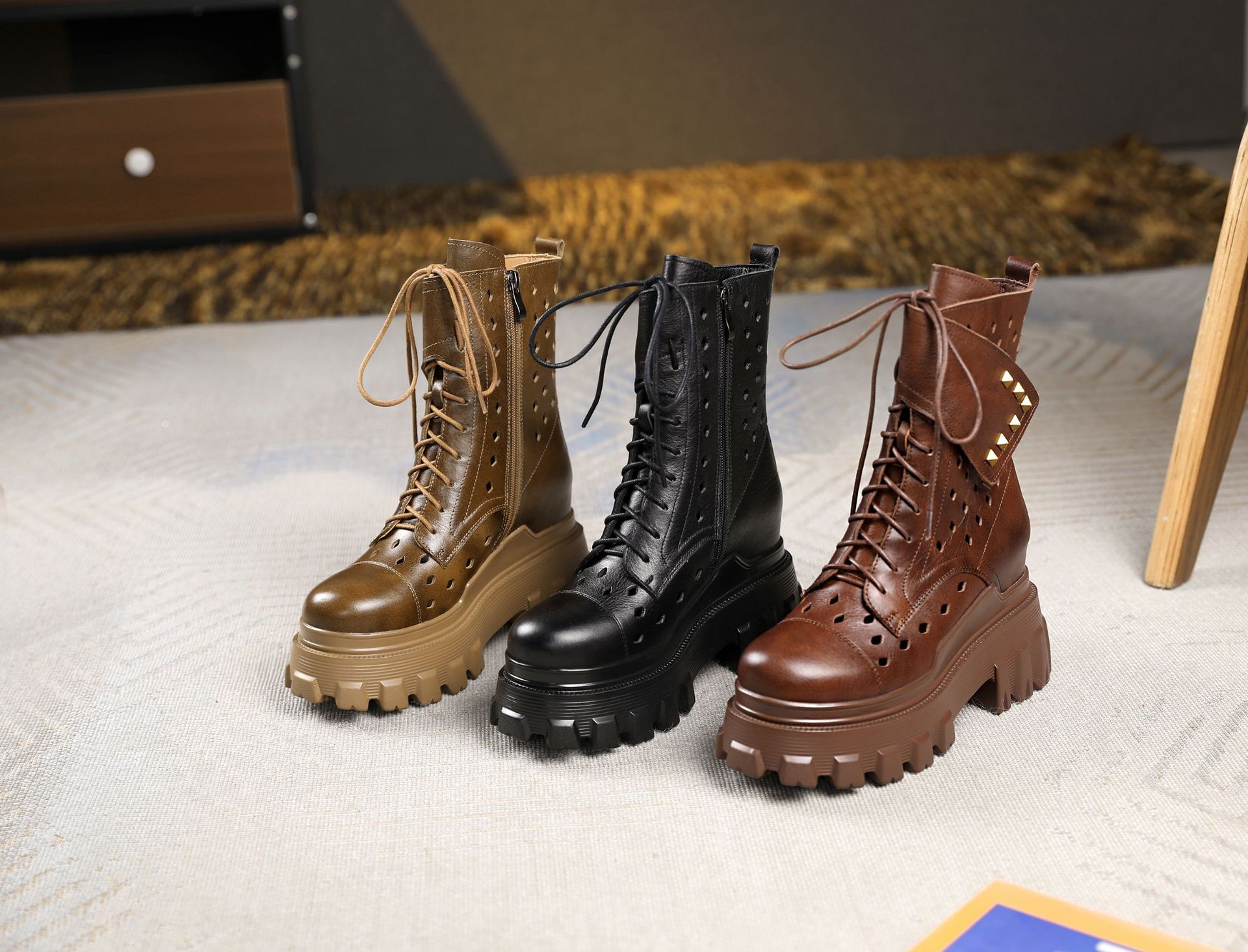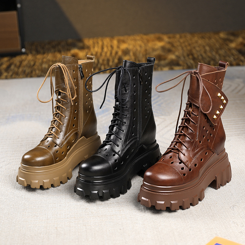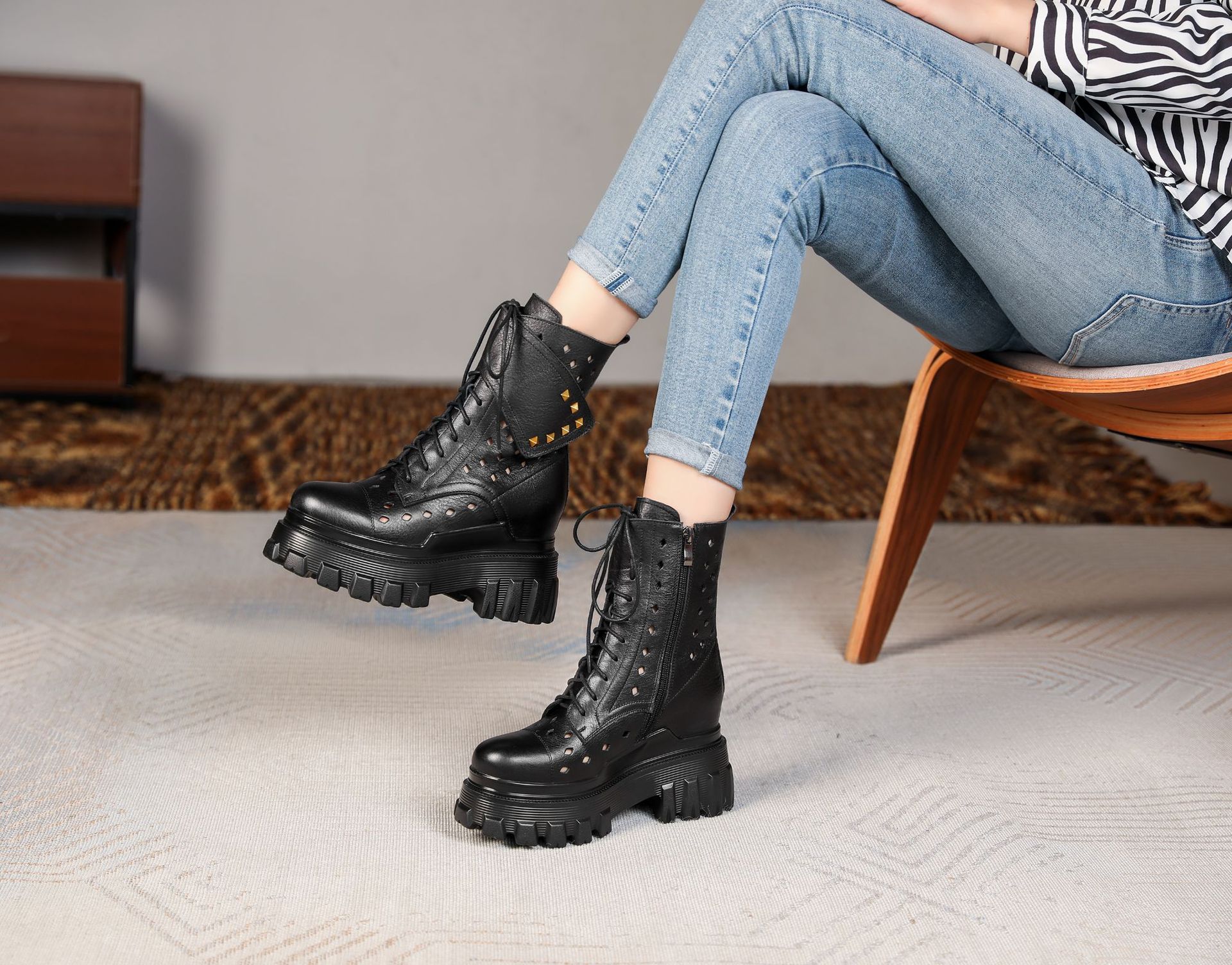 Đôi bốt kiểu dáng cổ điển này được thiết kế đế rất dày bên trong, giúp tăng chiều cao lên đến mười phân một cách tinh tế. Mẫu mã phù hợp cho mùa xuân, mang phong cách mát mẻ với phần cổ thấp. Sản phẩm thích hợp cho nhiều dịp mặc thường ngày. Bạn có thể dễ dàng phối cùng quần jeans hay váy để tạo điểm nhấn nổi bật cho tổng thể. | Tên sản phẩm: Cao Gót Nữ Cao 10cm Tăng Chiều Cao Đế Cao Hàng Mùa Xuân Thu Đông Phục Cổ Cổ Điển - Giày Dép Nữ | Mã sản phẩm: B4161 - Giá: 2.680.000đ | Mã nhà sản xuất: QIDNG-G06Hình ảnh sản phẩm