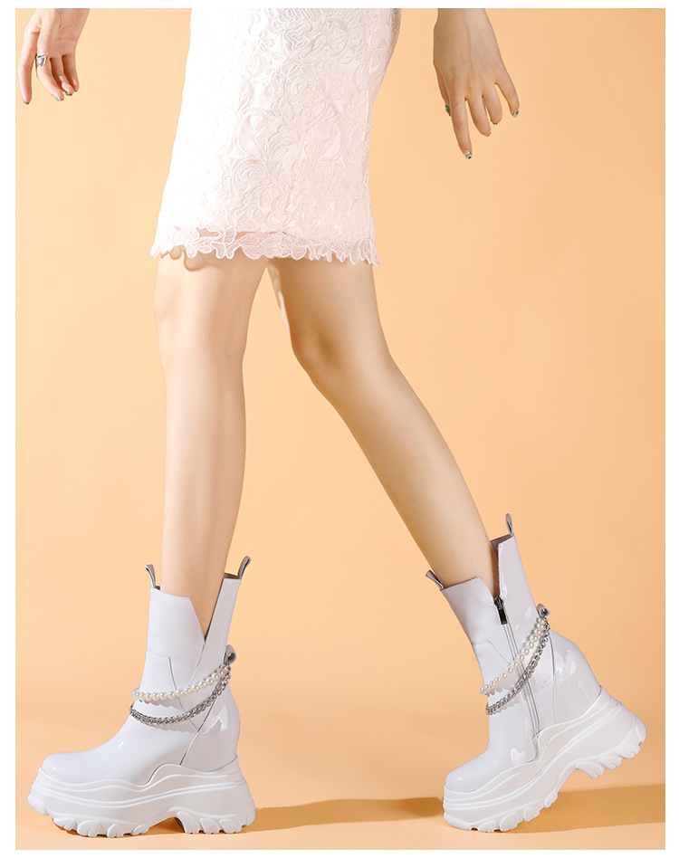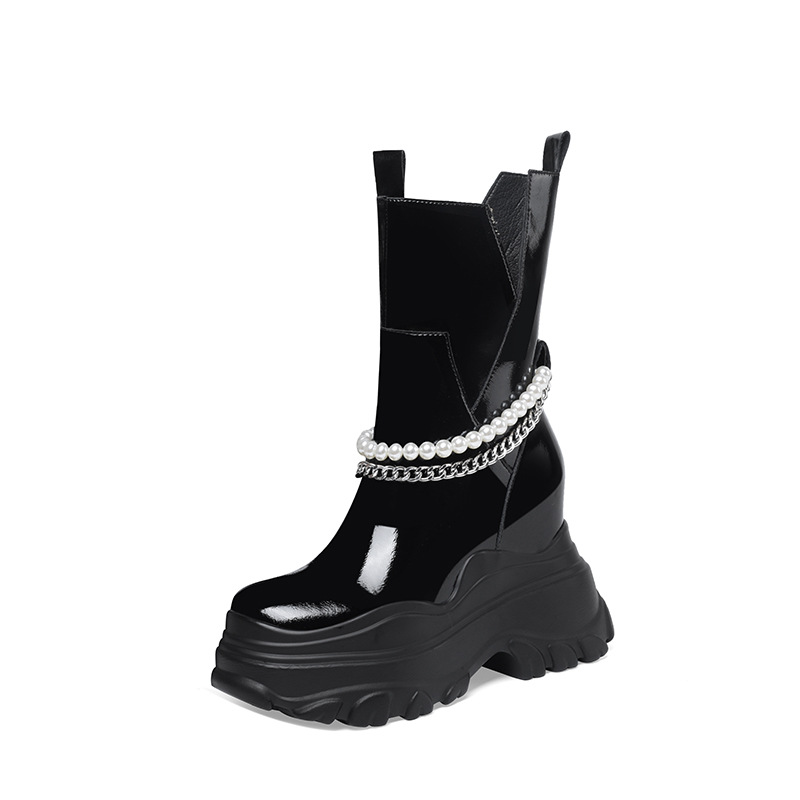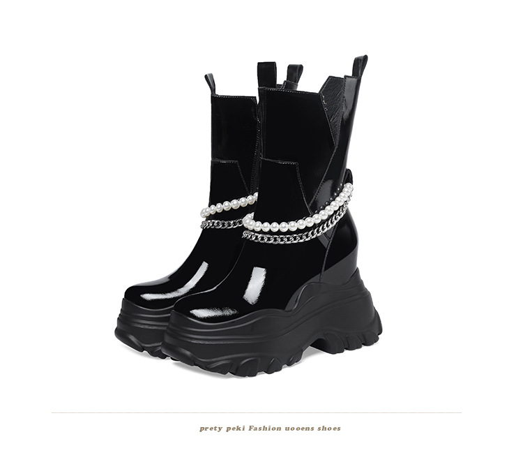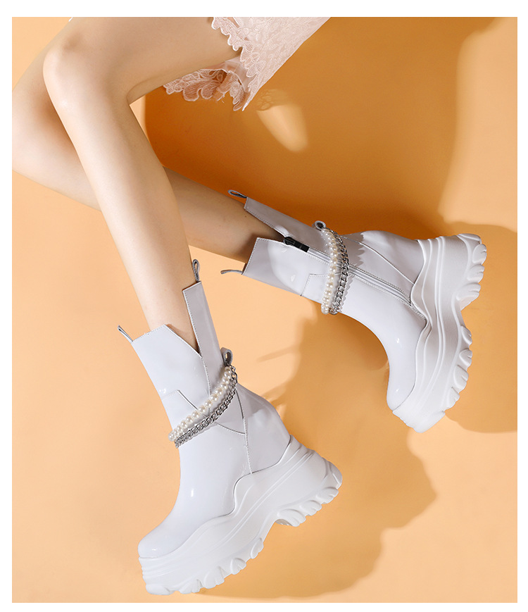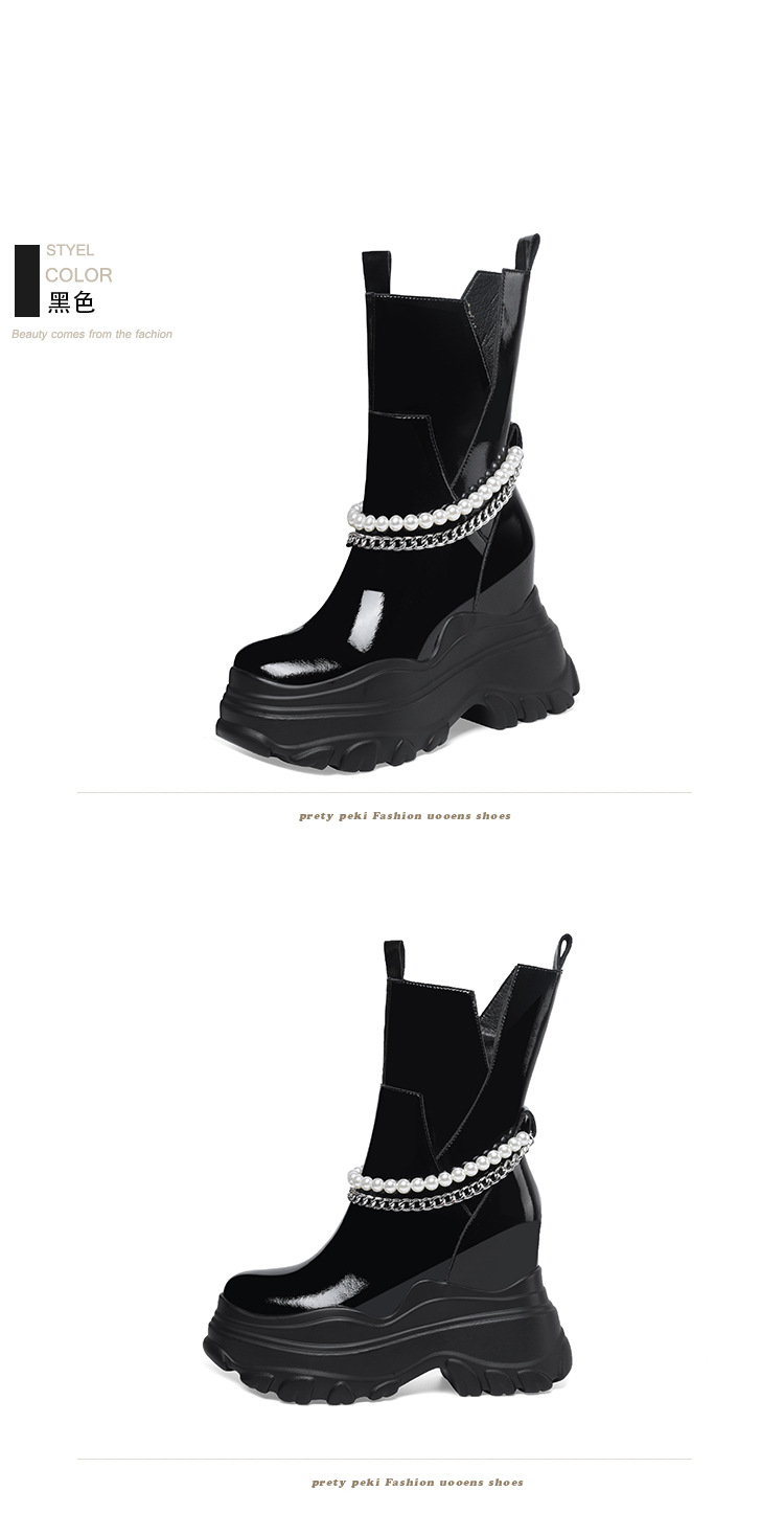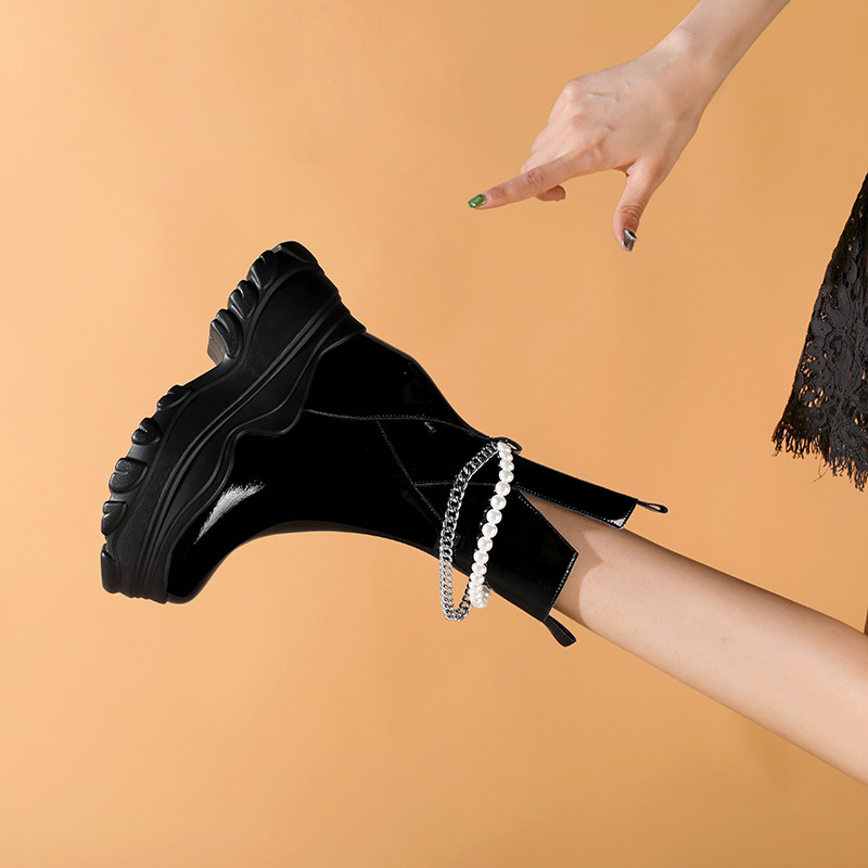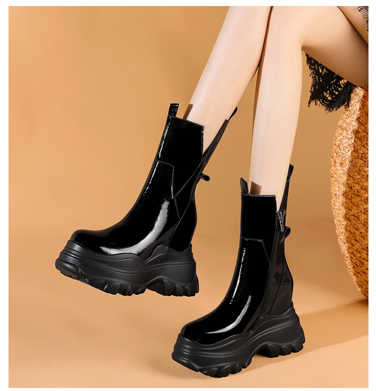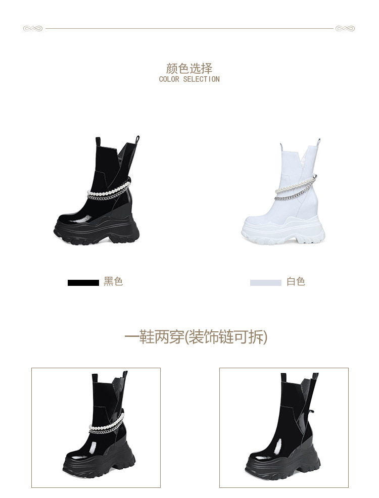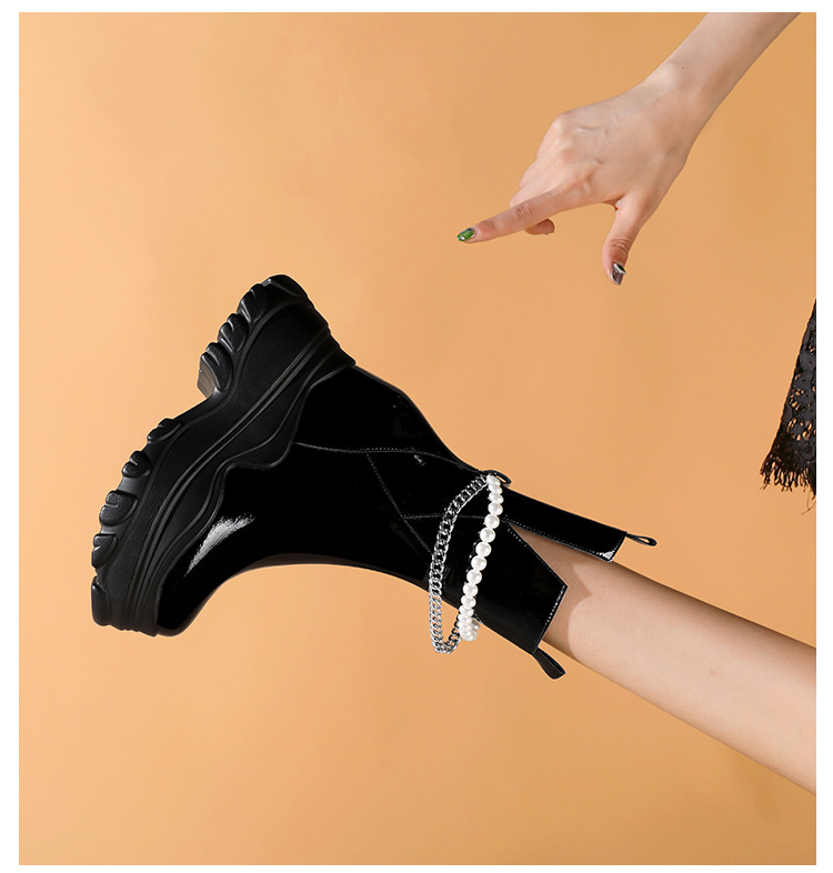 Giày bốt cổ trung nữ tính với phần đế hầm hố cao 12cm, tạo dáng thanh thoát và giúp tăng chiều cao đáng kể. Kiểu dáng Chelsea ôm vừa chân, kết hợp cùng phần cổ thấp vừa phải, dễ dàng phối cùng nhiều loại trang phục khác nhau như quần jeans, váy hay quần tây. Chất liệu có độ co giãn nhẹ ở phần cổ giày, giúp người mang vào ra một cách thuận tiện. Sản phẩm phù hợp để diện trong nhiều hoàn cảnh sinh hoạt hằng ngày. | Tên sản phẩm: Giày Cao Gót Nữ Cao 12cm Đế Cao Hàng Mùa Xuân Thu Đông - Giày Dép Nữ | Mã sản phẩm: B4163 - Giá: 2.020.000đ | Mã nhà sản xuất: QIDNG-G05Hình ảnh sản phẩm