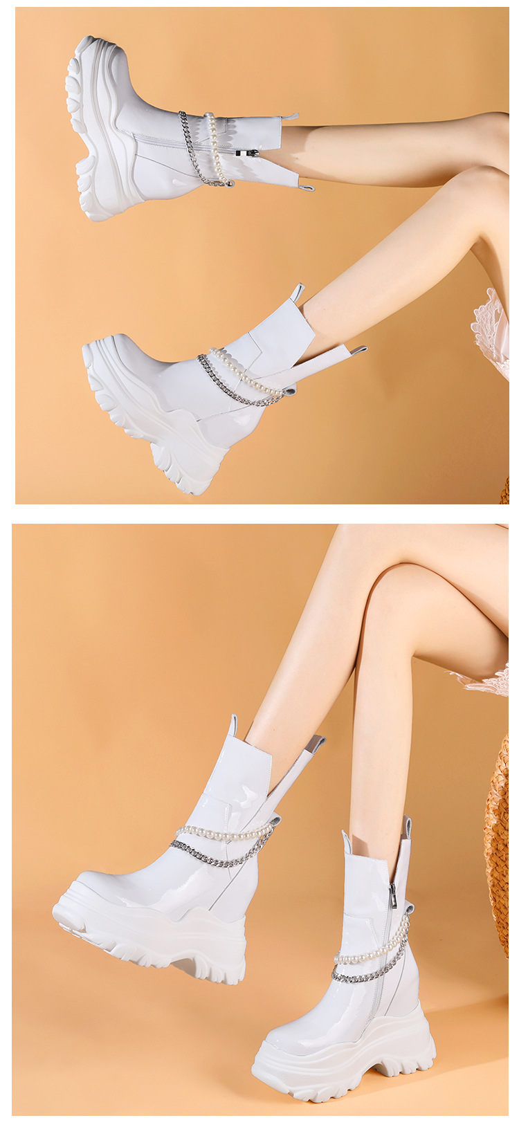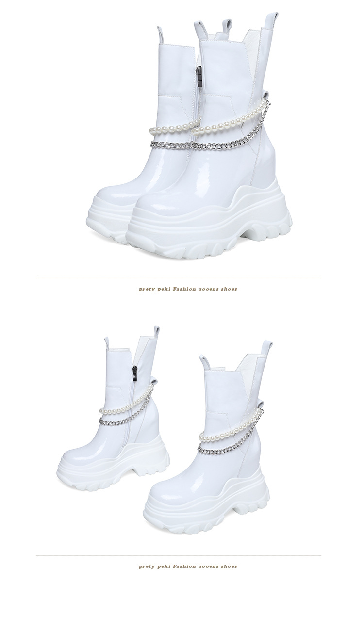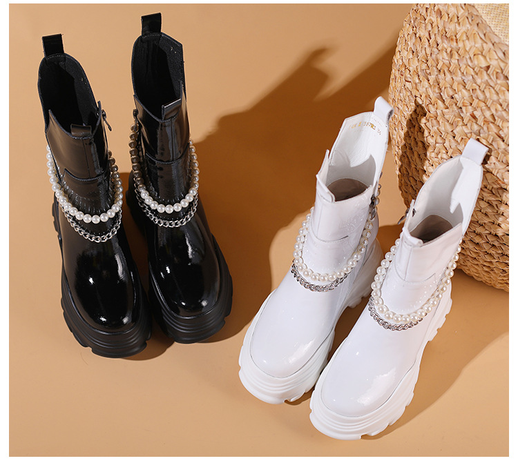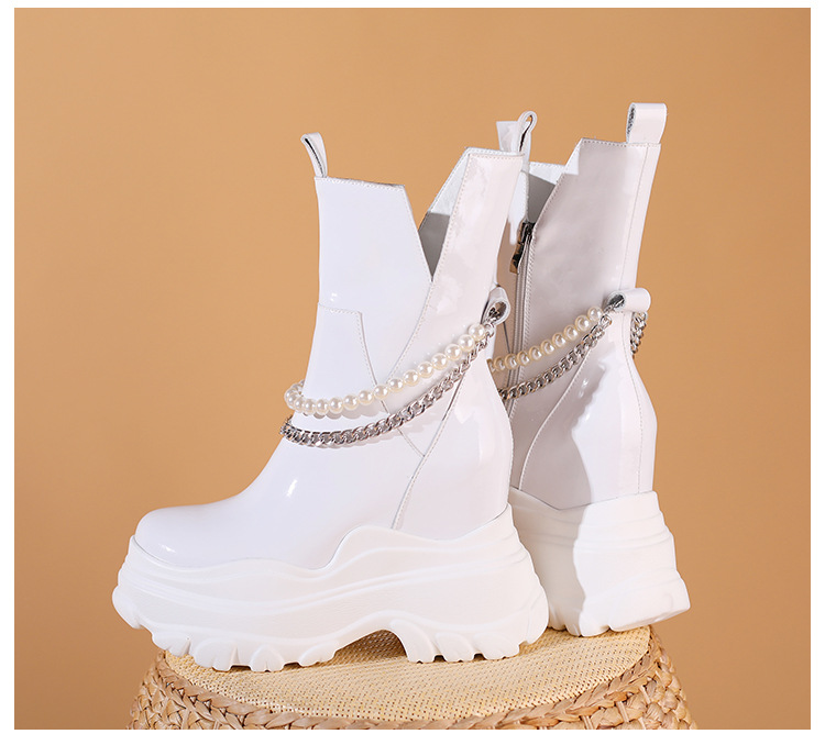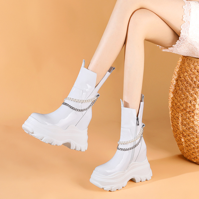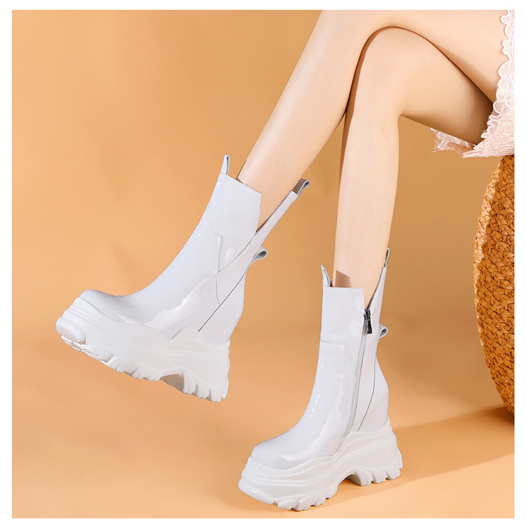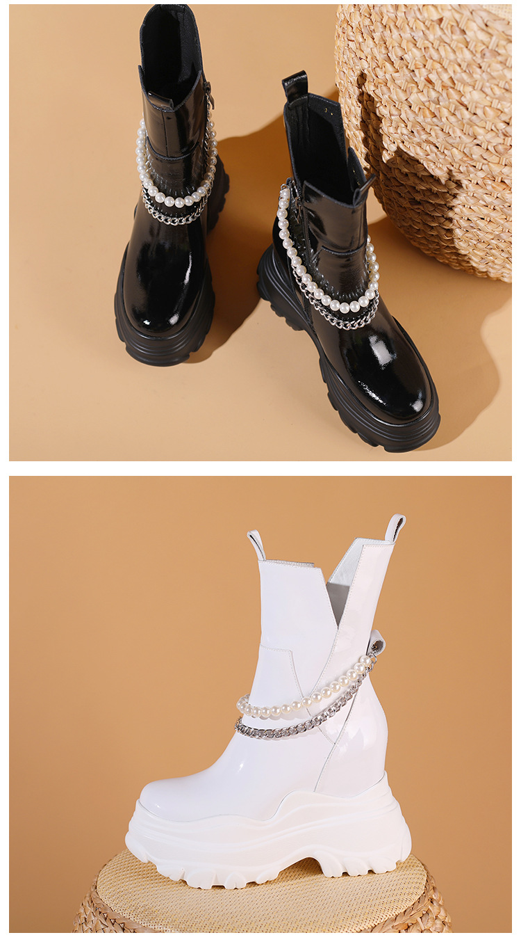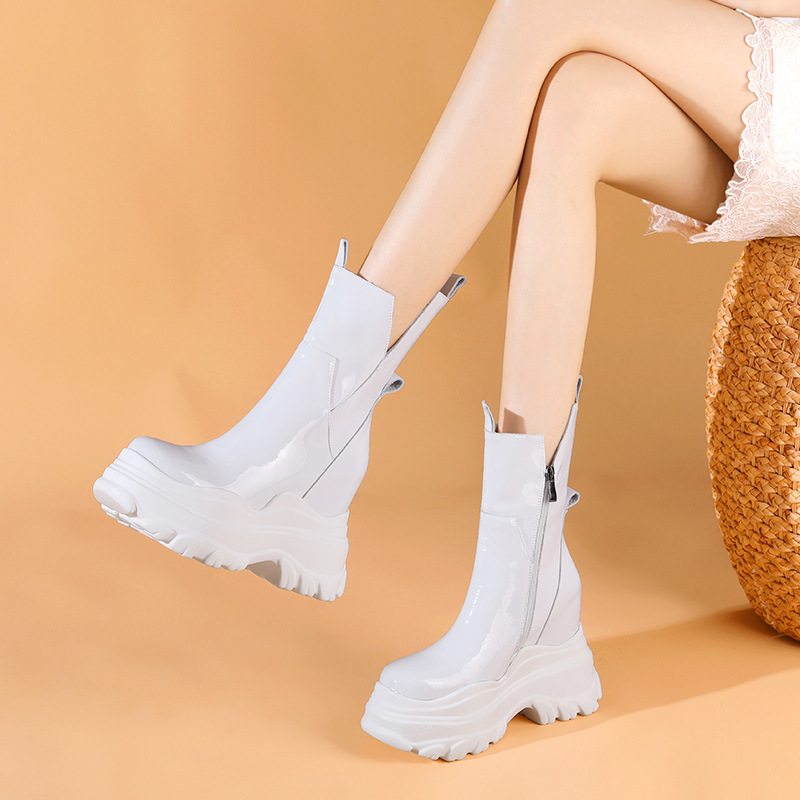 Giày bốt cổ trung nữ tính với phần đế hầm hố cao 12cm, tạo dáng thanh thoát và giúp tăng chiều cao đáng kể. Kiểu dáng Chelsea ôm vừa chân, kết hợp cùng phần cổ thấp vừa phải, dễ dàng phối cùng nhiều loại trang phục khác nhau như quần jeans, váy hay quần tây. Chất liệu có độ co giãn nhẹ ở phần cổ giày, giúp người mang vào ra một cách thuận tiện. Sản phẩm phù hợp để diện trong nhiều hoàn cảnh sinh hoạt hằng ngày. | Tên sản phẩm: Giày Cao Gót Nữ Cao 12cm Đế Cao Hàng Mùa Xuân Thu Đông - Giày Dép Nữ | Mã sản phẩm: B4163 - Giá: 2.020.000đ | Mã nhà sản xuất: QIDNG-G05Hình ảnh sản phẩm