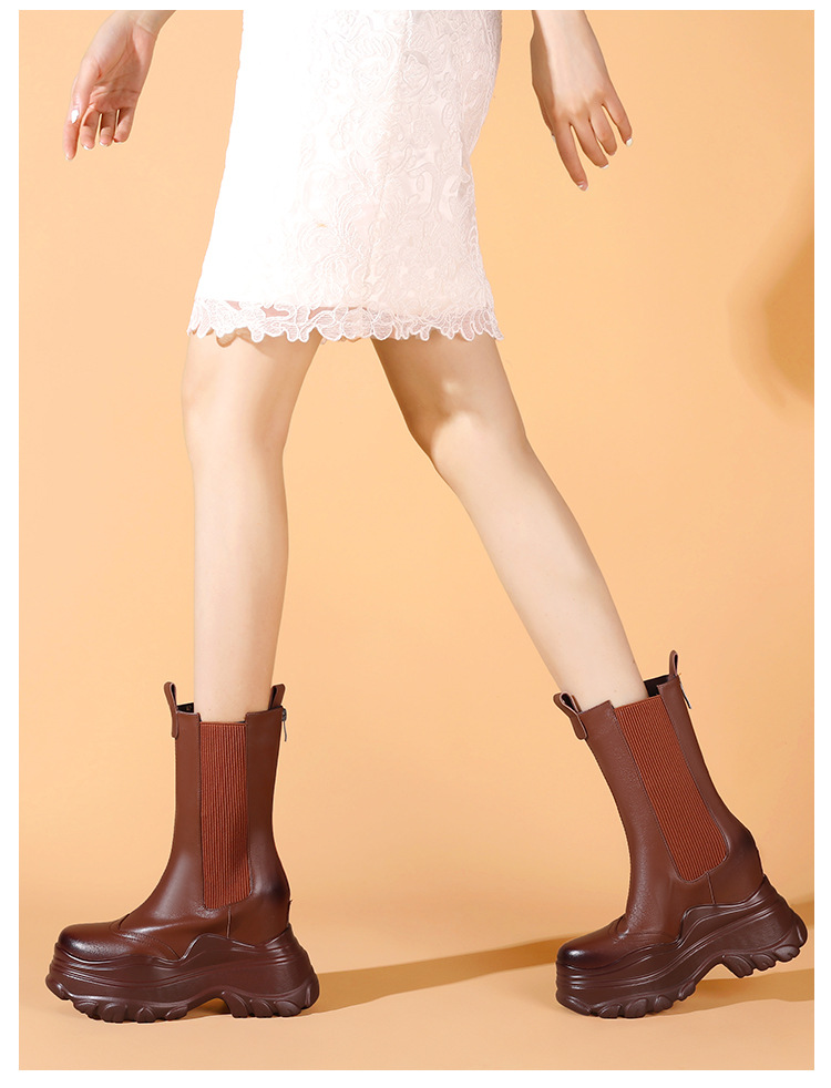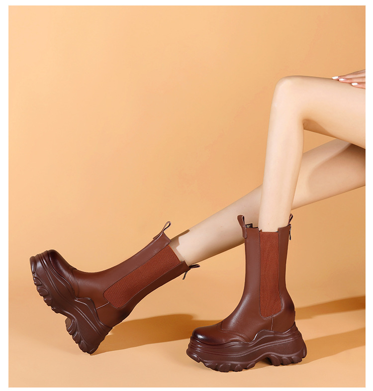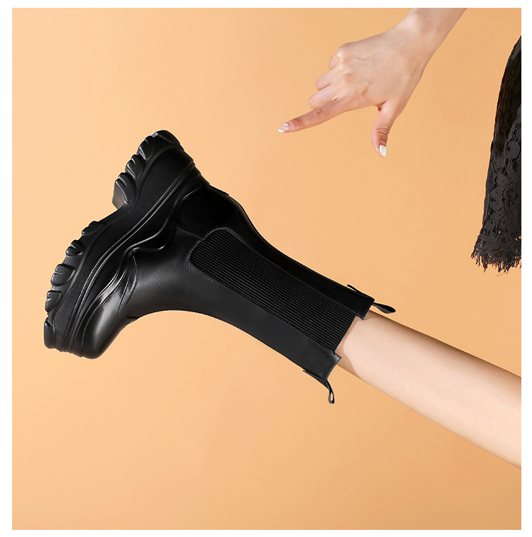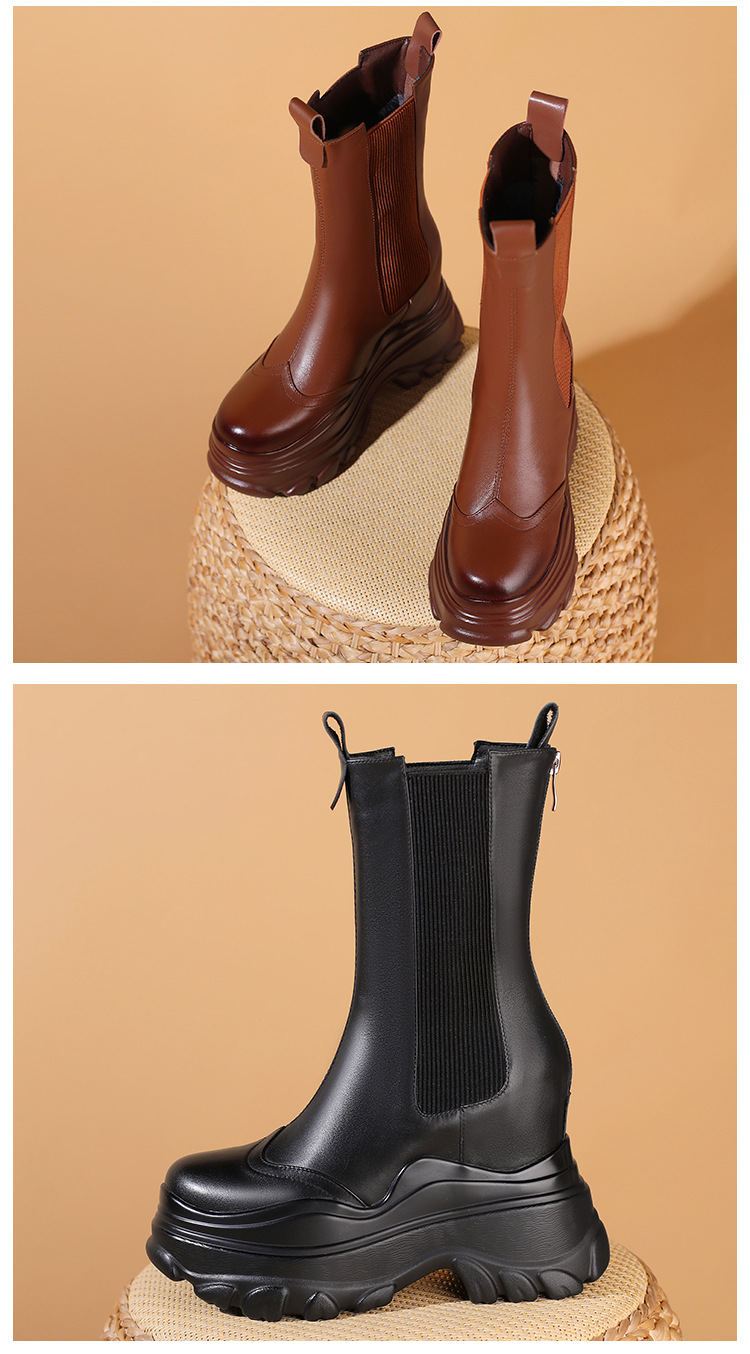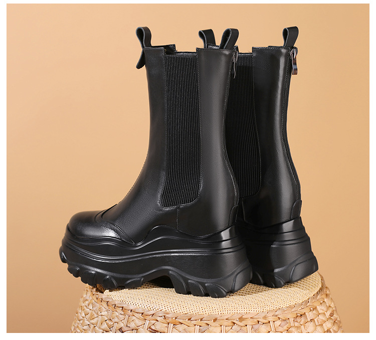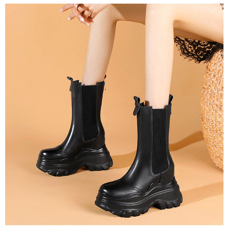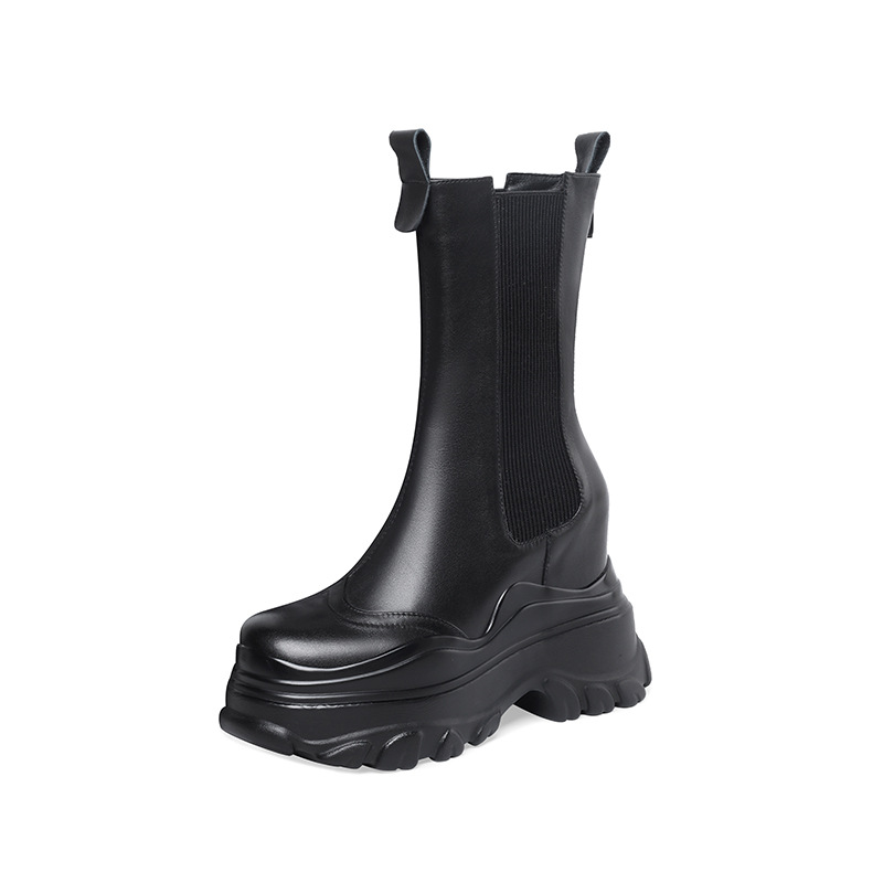 Đôi bốt cổ trung này có phần đế dày bên trong giúp tăng chiều cao lên đến mười hai centimet một cách nhẹ nhàng. Kiểu dáng mang phong cách cổ điển, kết hợp cùng lớp lót mềm mại giữ ấm đôi chân cho những ngày trời lạnh. Bạn có thể dễ dàng phối với nhiều loại trang phục như quần jeans hay váy để tạo nên vẻ ngoại hình năng động, cá tính. Sản phẩm thích hợp để mang hằng ngày, cho bạn cảm giác thoải mái và vững chãi trong từng bước đi. | Tên sản phẩm: Boot Martin Nữ Cao 12cm Tăng Chiều Cao Đế Cao Hàng Mùa Xuân Thu Đông - Giày Dép Nữ | Mã sản phẩm: B4170 - Giá: 2.020.000đ | Mã nhà sản xuất: QIDNG-G05Hình ảnh sản phẩm