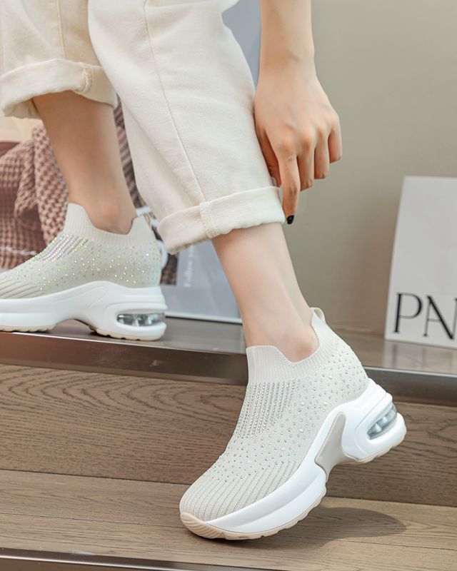 Đôi giày nữ này có phần đế dày giúp tăng chiều cao một cách tự nhiên. Chất liệu dệt kim mềm mại, ôm chân nhưng vẫn tạo cảm giác thoải mái, dễ chịu. Kiểu dáng năng động, phù hợp cho nhiều dịp như đi chơi, đi học hay vận động nhẹ. Đặc biệt, giày rất nhẹ và thoáng khí, mang cả ngày vẫn thấy dễ chịu. Bạn có thể dùng để phối cùng nhiều loại trang phục khác nhau trong cuộc sống thường ngày. | Tên sản phẩm: Giày Thể Thao Tăng Chiều Cao Nữ Tăng Chiều Cao Thoáng Khí Đế Cao - Giày Dép Nữ | Mã sản phẩm: B4180 - Giá: 920.000đ | Mã nhà sản xuất: WEDS-G03Hình ảnh sản phẩm