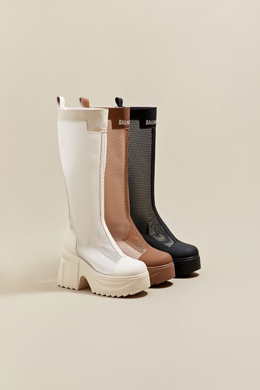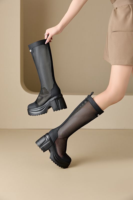 Đôi bốt mới kiểu dáng hiện đại, phù hợp cho nhiều dịp sử dụng. Sản phẩm có phần đế dày và chắc chắn, giúp tăng chiều cao một cách tinh tế. Thiết kế cổ bốt dài vừa phải, ôm lấy bắp chân nhưng không vượt quá đầu gối, tạo cảm giác thoải mái. Trên thân bốt có các lỗ thông hơi dạng lưới, giúp đôi chân luôn khô ráo. Kiểu dáng mạnh mẽ phối cùng phần gót to vững chãi, dễ dàng phối hợp với quần jeans hoặc váy. Mang vào và cài khóa kéo là bạn đã có một set đồ thời thượng. | Tên sản phẩm: Boot Cổ Cao Nữ Cổ Cao Qua Gối Tăng Chiều Cao Đế Cao - Giày Dép Nữ | Mã sản phẩm: B4187 - Giá: 1.070.000đ | Mã nhà sản xuất: WEDS-G03Hình ảnh sản phẩm