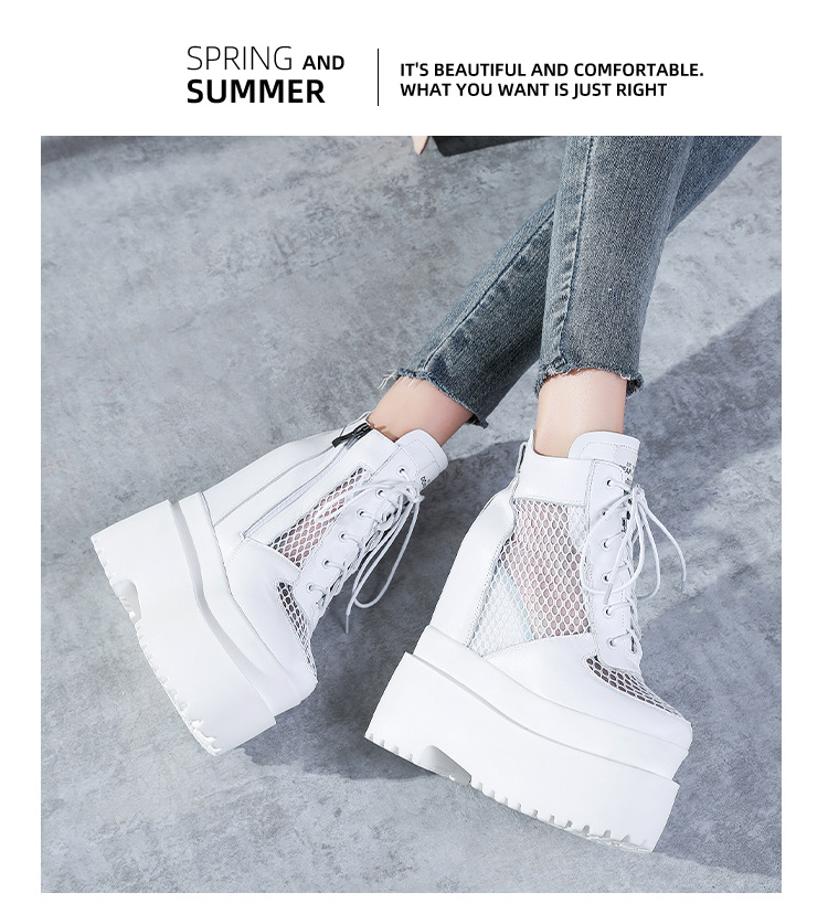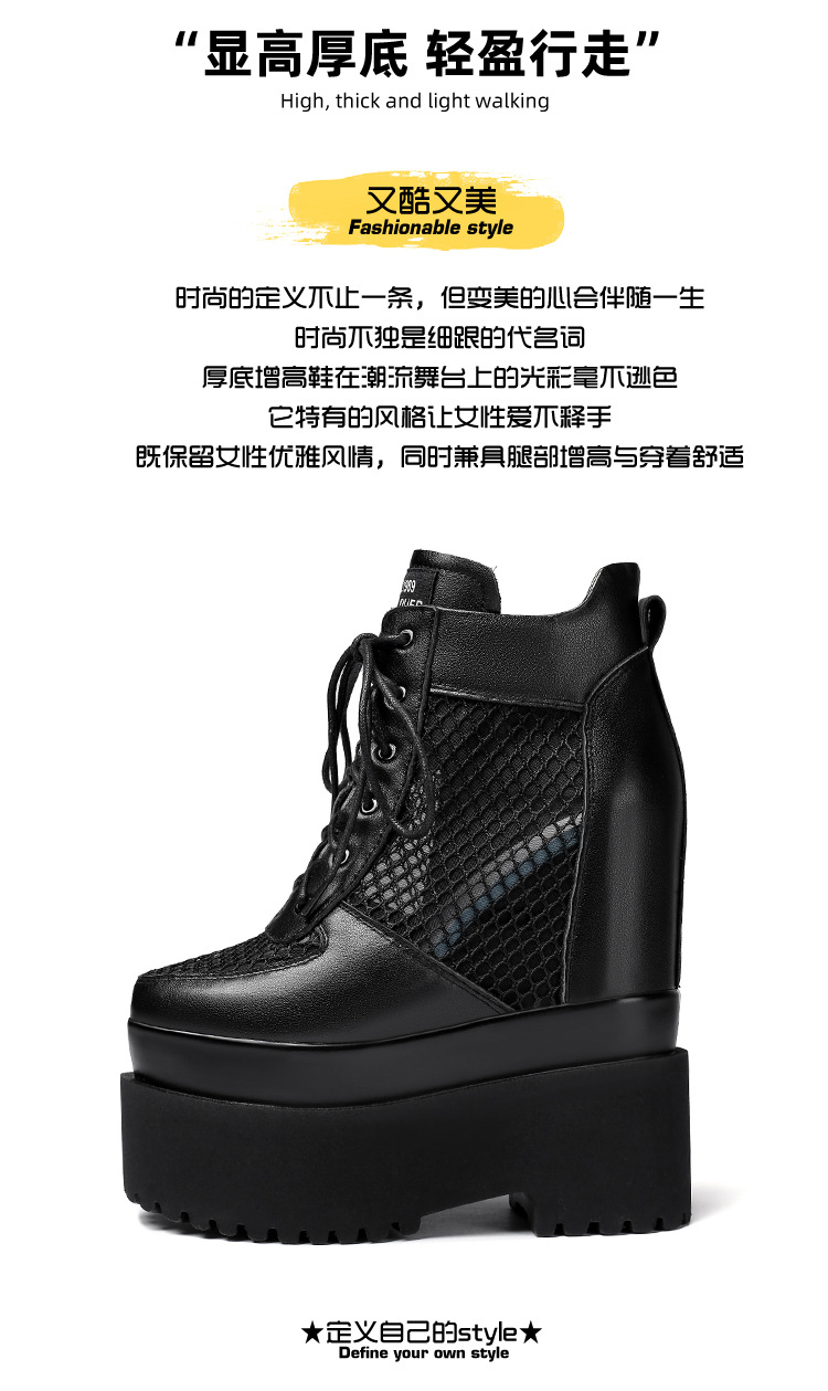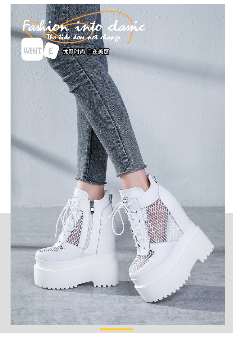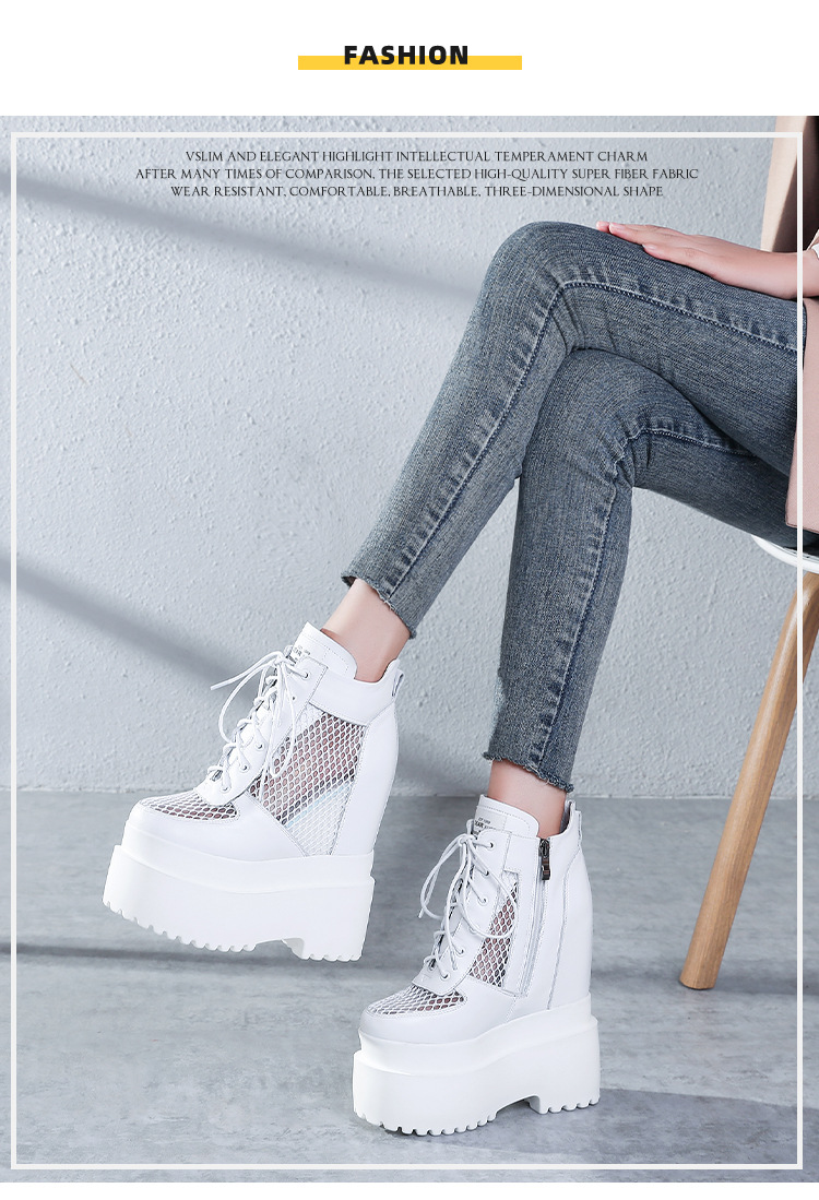 Đôi giày này có phần đế dày giúp tăng chiều cao một cách nhẹ nhàng. Được làm từ chất liệu da mềm mại cùng phần mu bàn chân kết hợp vải lưới thoáng khí, mang lại sự dễ chịu khi mang. Kiểu dáng có dây rút điều chỉnh ôm chân vừa vặn. Phong cách đơn giản, dễ phối hợp với nhiều loại trang phục khác nhau như quần jeans hay váy ngắn. Bạn có thể sử dụng hằng ngày cho các sinh hoạt thong thả. | Tên sản phẩm: Giày Thể Thao Tăng Chiều Cao Nữ Chất Liệu Da Bò Cao 16cm Lưới Mỏng Tăng Chiều Cao Đế Cao Hàng Mùa Xuân Thu Đông - Giày Dép Nữ | Mã sản phẩm: B4188 - Giá: 2.500.000đ | Mã nhà sản xuất: QIDNG-G05Hình ảnh sản phẩm
