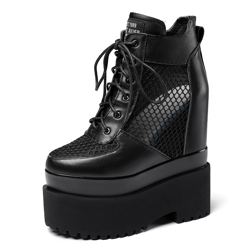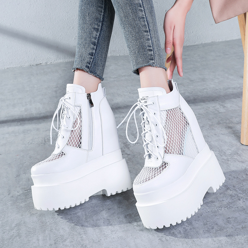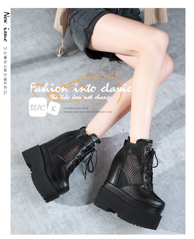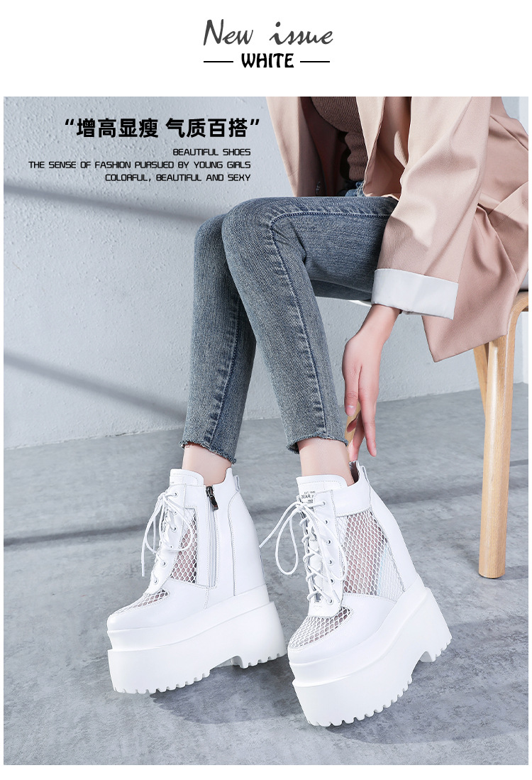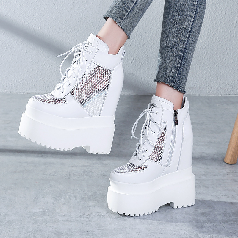 Đôi giày này có phần đế dày giúp tăng chiều cao một cách nhẹ nhàng. Được làm từ chất liệu da mềm mại cùng phần mu bàn chân kết hợp vải lưới thoáng khí, mang lại sự dễ chịu khi mang. Kiểu dáng có dây rút điều chỉnh ôm chân vừa vặn. Phong cách đơn giản, dễ phối hợp với nhiều loại trang phục khác nhau như quần jeans hay váy ngắn. Bạn có thể sử dụng hằng ngày cho các sinh hoạt thong thả. | Tên sản phẩm: Giày Thể Thao Tăng Chiều Cao Nữ Chất Liệu Da Bò Cao 16cm Lưới Mỏng Tăng Chiều Cao Đế Cao Hàng Mùa Xuân Thu Đông - Giày Dép Nữ | Mã sản phẩm: B4188 - Giá: 2.500.000đ | Mã nhà sản xuất: QIDNG-G05Hình ảnh sản phẩm