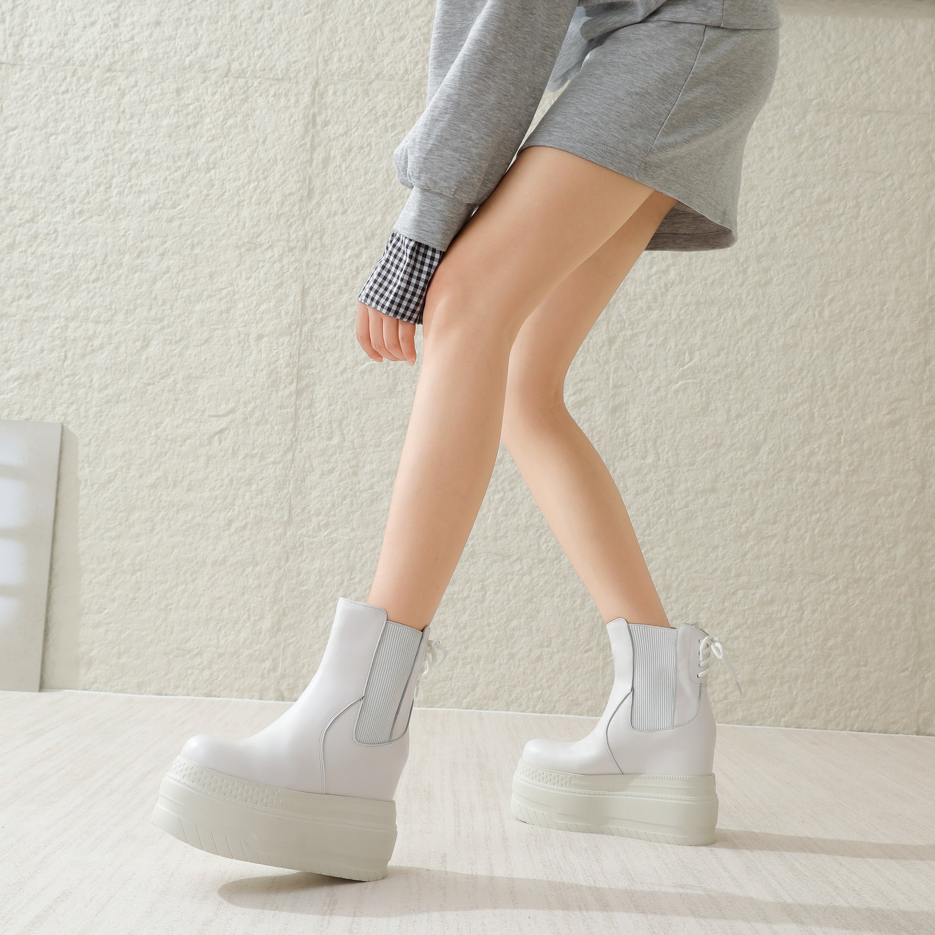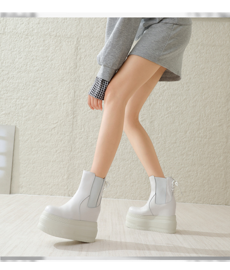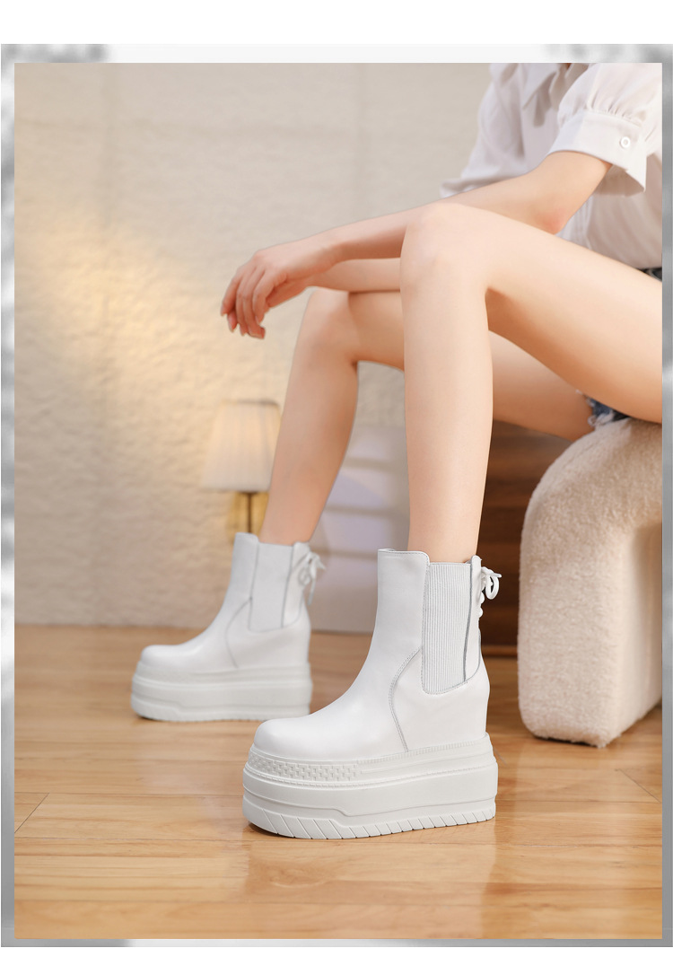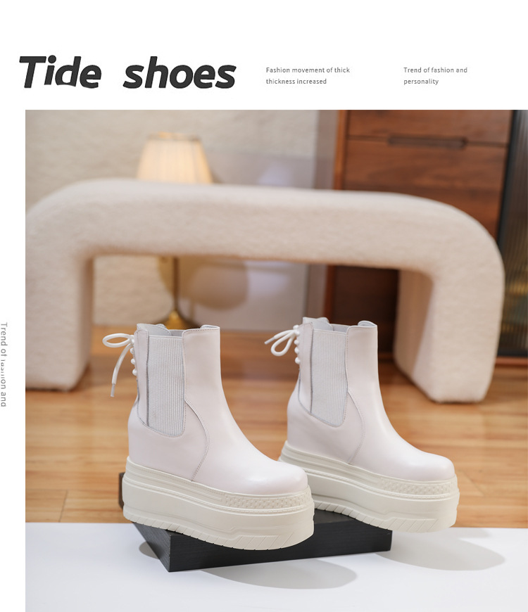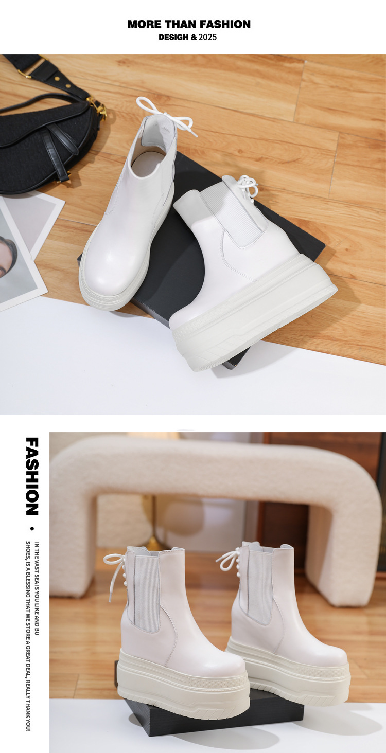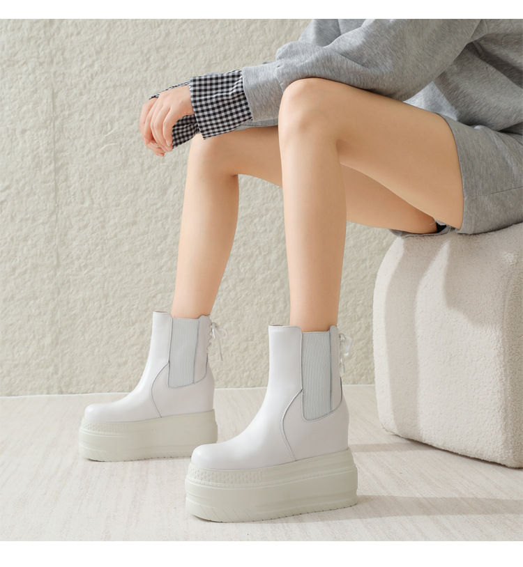 Đôi bốt cổ thấp này có phần đế ngoài dày và vững chãi, kết hợp cùng thiết kế tăng chiều cao bên trong một cách khéo léo, giúp nâng đỡ đôi chân thoải mái suốt ngày dài. Form giàu ôm chân vừa vặn với kiểu dáng cổ thấp tiện lợi, dễ dàng mang vào hay tháo ra. Sản phẩm thích hợp để phối cùng nhiều loại trang phục khác nhau trong mùa thu đông. Bạn chỉ cần xỏ chân vào và kéo phần miếng đệm ở hai bên là đã có ngay một vẻ ngoại thời trang và cá tính. | Tên sản phẩm: Giày Boot Cổ Thấp Nữ Chống Nước Tăng Chiều Cao Đế Xuồng Đế Cao Hàng Mùa Xuân Thu Đông - Giày Dép Nữ | Mã sản phẩm: B4195 - Giá: 2.120.000đ | Mã nhà sản xuất: QIDNG-G05Hình ảnh sản phẩm