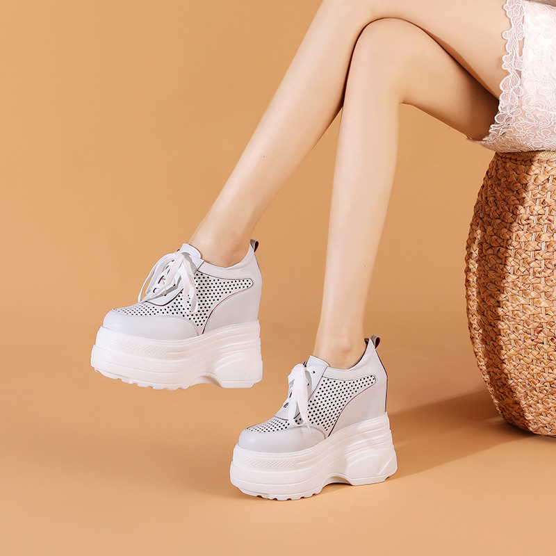 Giày cao gót nữ thiết kế có dây cột tạo điểm nhấn. Sản phẩm có phần gót cao bên trong giúp tăng chiều cao lên đến 14cm, phù hợp cho những người có vóc dáng nhỏ. Kiểu dáng khoét lỗ nhỏ tăng độ thông thoáng, mang lại cảm giác dễ chịu. Đôi giày ôm chân, tôn lên dáng người thon gọn và cân đối. Có thể dễ dàng kết hợp với nhiều loại trang phục khác nhau. Sử dụng tốt cho các dịp đi làm, dạo phố hoặc gặp gỡ bạn bè. | Tên sản phẩm: Giày Cao Gót Nữ Cao 14cm Tăng Chiều Cao Thoáng Khí Hàng Mùa Xuân Thu Đông - Giày Dép Nữ | Mã sản phẩm: B4196 - Giá: 1.830.000đ | Mã nhà sản xuất: QIDNG-G05Hình ảnh sản phẩm