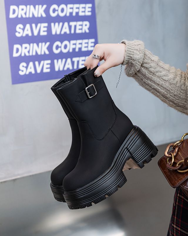 Đôi bốt cổ trung này có phần đế rất dày và nhẹ, giúp tăng chiều cao đáng kể một cách thoải mái. Kiểu dáng ống thẳng ôm vừa chân, tạo cảm giác chân thon dài hơn. Thiết kế theo phong cách cổ điển, dễ dàng phối hợp với nhiều loại trang phục khác nhau như quần jeans hay váy. Bạn có thể mang chúng để đi chơi, đi làm hay dạo phố đều phù hợp. | Tên sản phẩm: Cao Gót Nữ Đế Cao Hàng Mùa Xuân Thu Đông Phục Cổ Cổ Điển - Giày Dép Nữ | Mã sản phẩm: B4205 - Giá: 1.040.000đ | Mã nhà sản xuất: WEDS-G03Hình ảnh sản phẩm