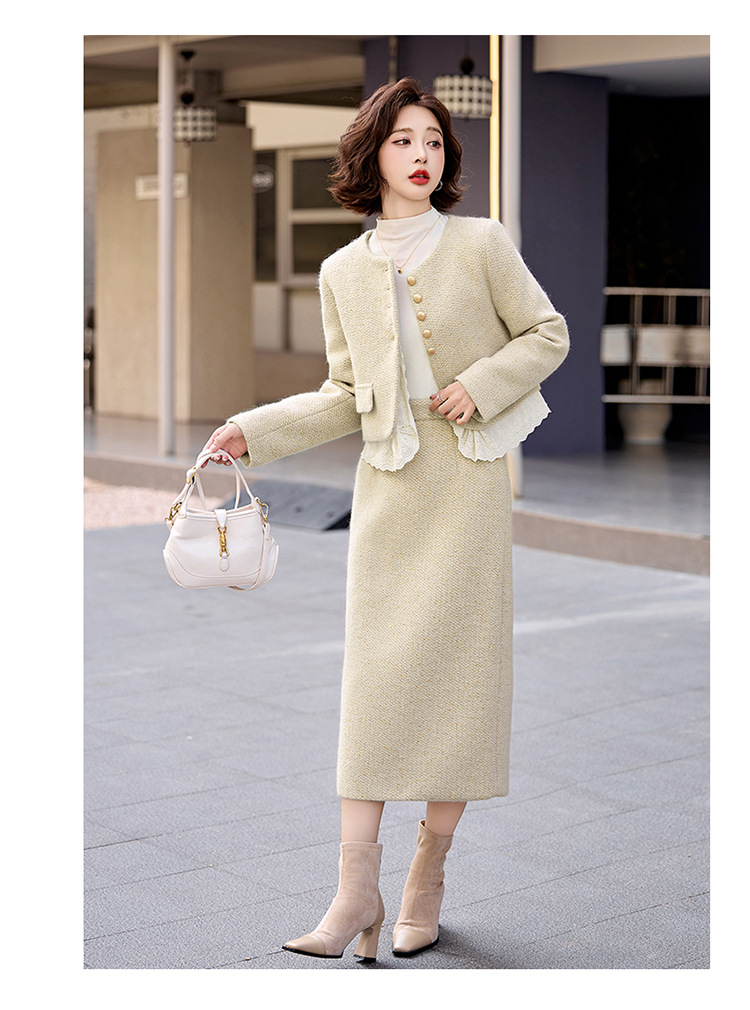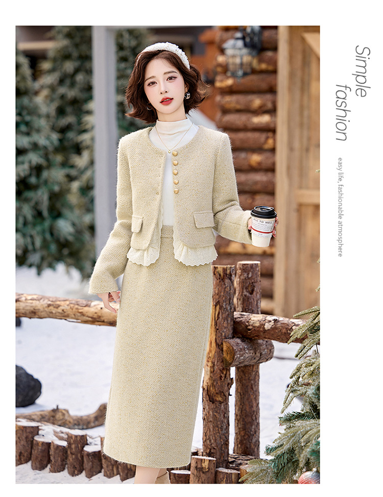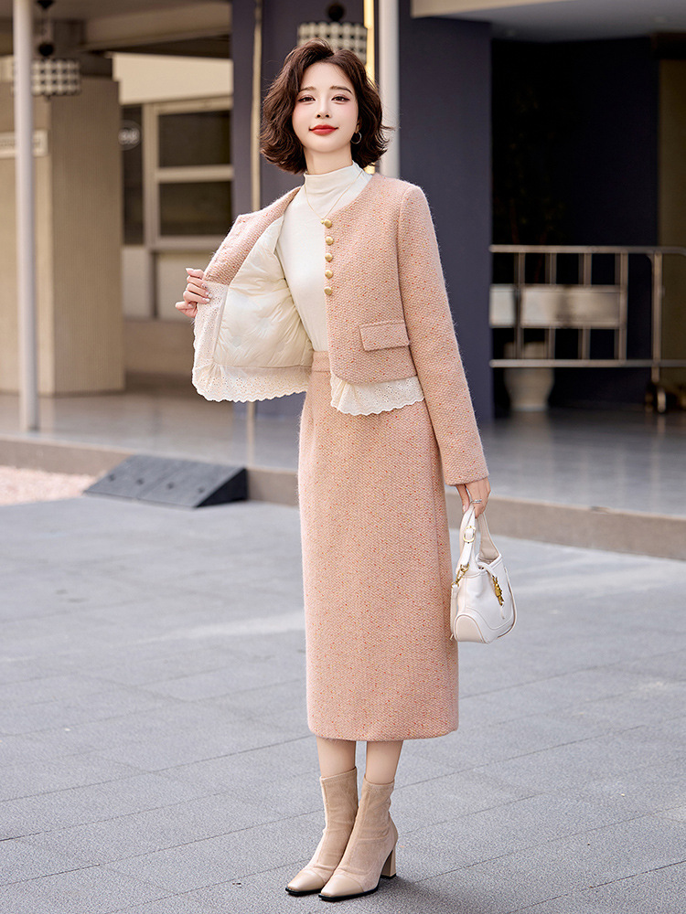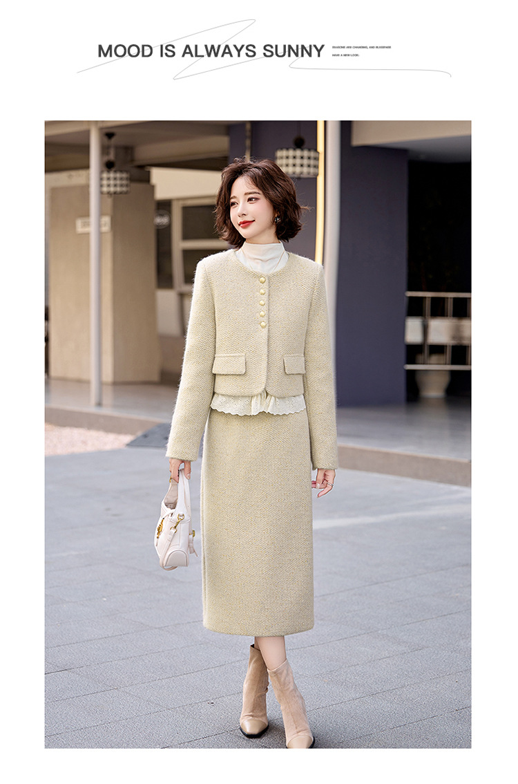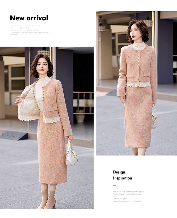 Bộ trang phục hai mảnh này gồm áo khoác dáng dài và chân váy ngắn, được thiết kế dành riêng cho mùa lạnh. Áo khoác được lót lớp bông mềm mại bên trong, giữ ấm tốt mà vẫn nhẹ nhàng. Kiểu dáng trẻ trung, phù hợp cho nhiều dịp đi chơi hay gặp mặt. Bạn có thể mặc nguyên bộ để đồng điệu, hoặc phối áo với quần khác để đa dạng phong cách. Chất liệu co giãn nhẹ, tạo cảm giác thoải mái khi vận động. | Tên sản phẩm: Áo Khoác Nữ Cả Bộ 2 Món Trông Trẻ Hơn Tuổi Hàng Mùa Xuân Thu Đông - Thời Trang Nữ | Mã sản phẩm: B4210 - Giá: 2.940.000đ | Mã nhà sản xuất: HADG-G06Hình ảnh sản phẩm