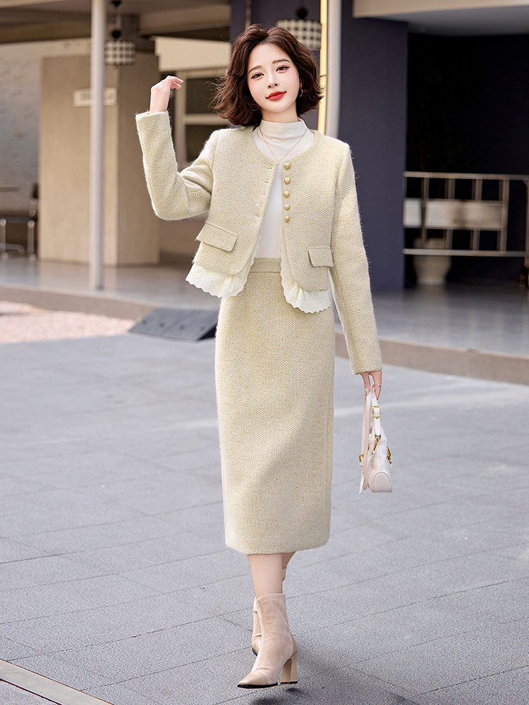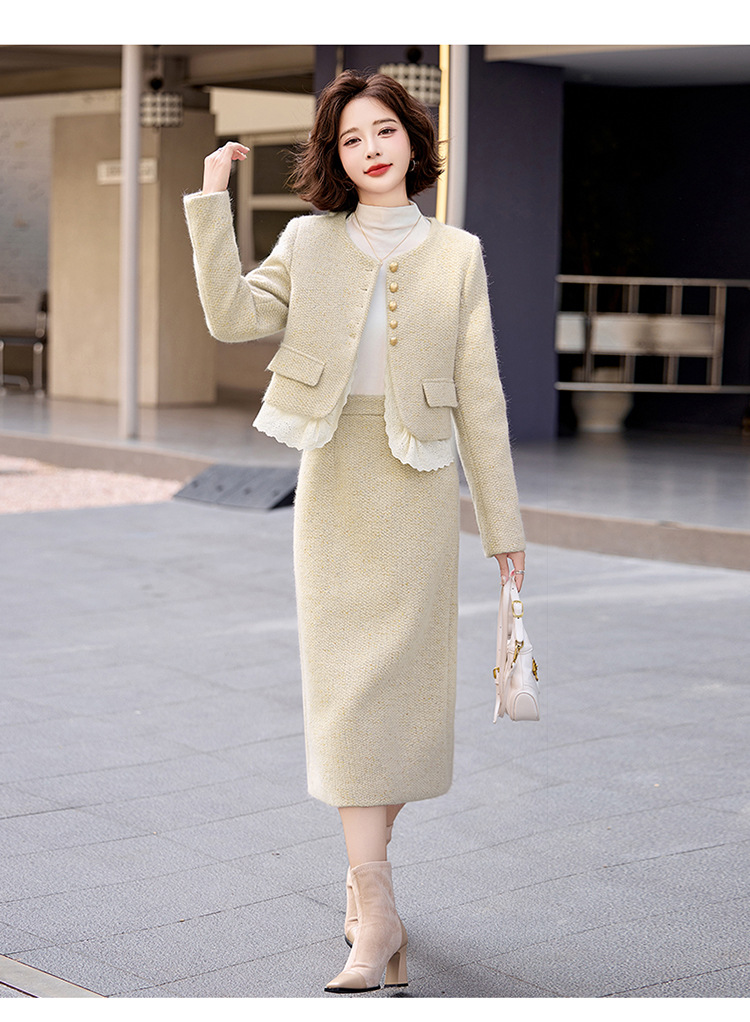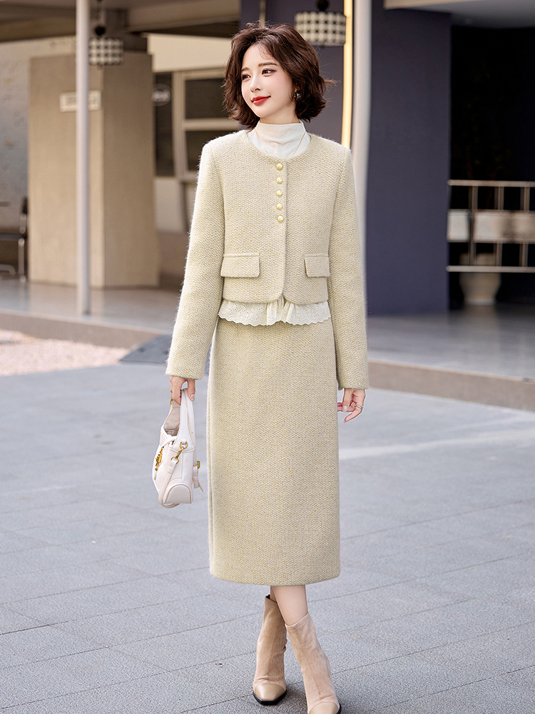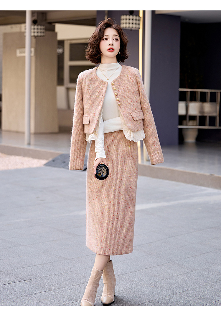 Bộ trang phục hai mảnh này gồm áo khoác dáng dài và chân váy ngắn, được thiết kế dành riêng cho mùa lạnh. Áo khoác được lót lớp bông mềm mại bên trong, giữ ấm tốt mà vẫn nhẹ nhàng. Kiểu dáng trẻ trung, phù hợp cho nhiều dịp đi chơi hay gặp mặt. Bạn có thể mặc nguyên bộ để đồng điệu, hoặc phối áo với quần khác để đa dạng phong cách. Chất liệu co giãn nhẹ, tạo cảm giác thoải mái khi vận động. | Tên sản phẩm: Áo Khoác Nữ Cả Bộ 2 Món Trông Trẻ Hơn Tuổi Hàng Mùa Xuân Thu Đông - Thời Trang Nữ | Mã sản phẩm: B4210 - Giá: 2.940.000đ | Mã nhà sản xuất: HADG-G06Hình ảnh sản phẩm