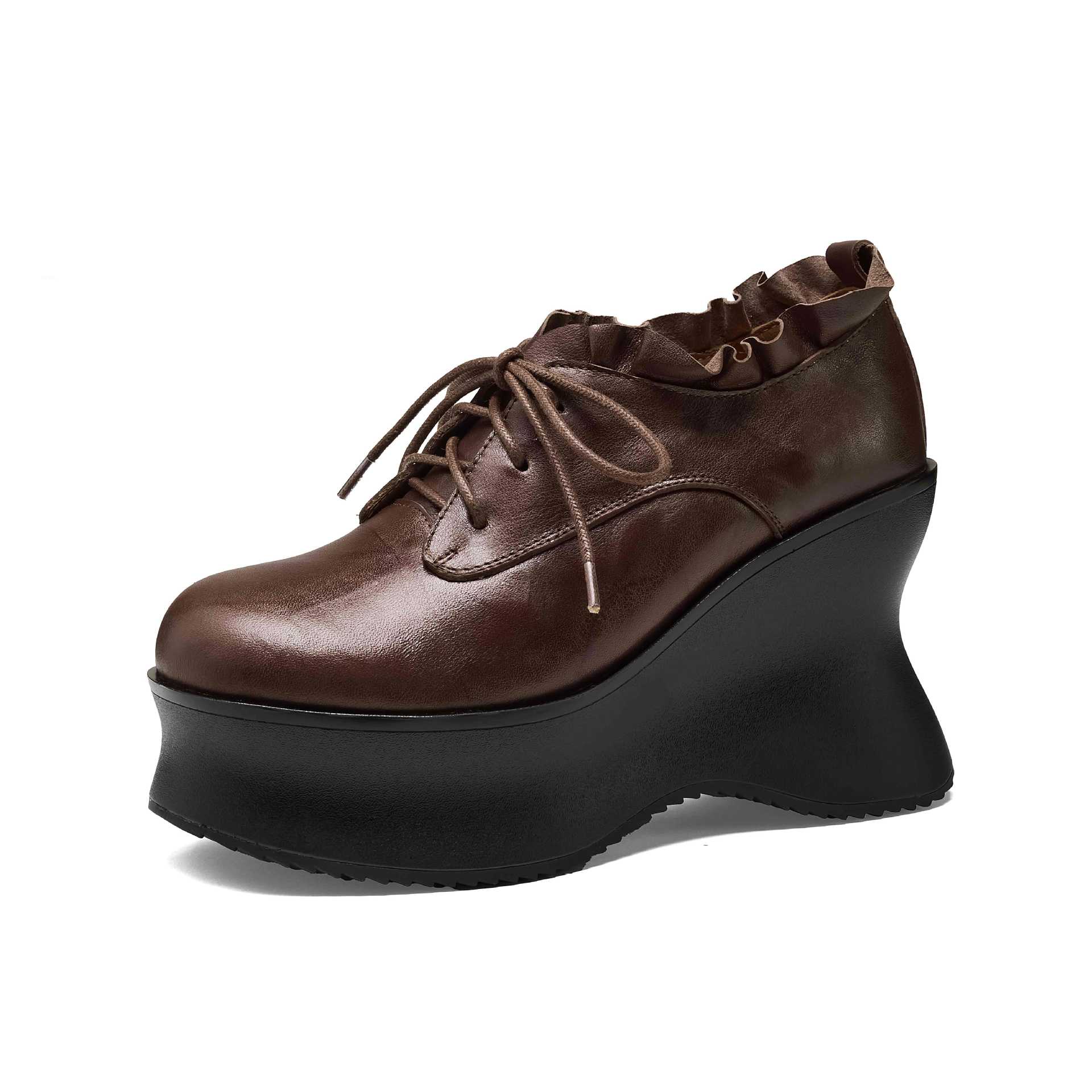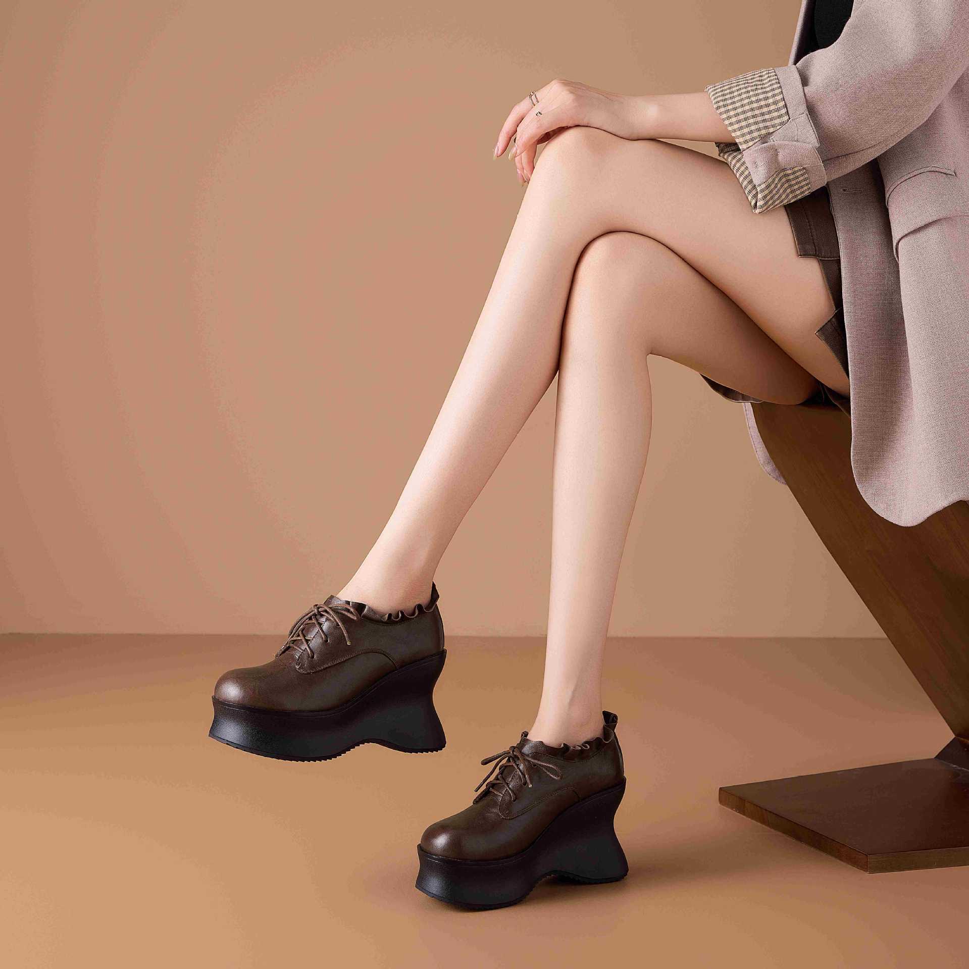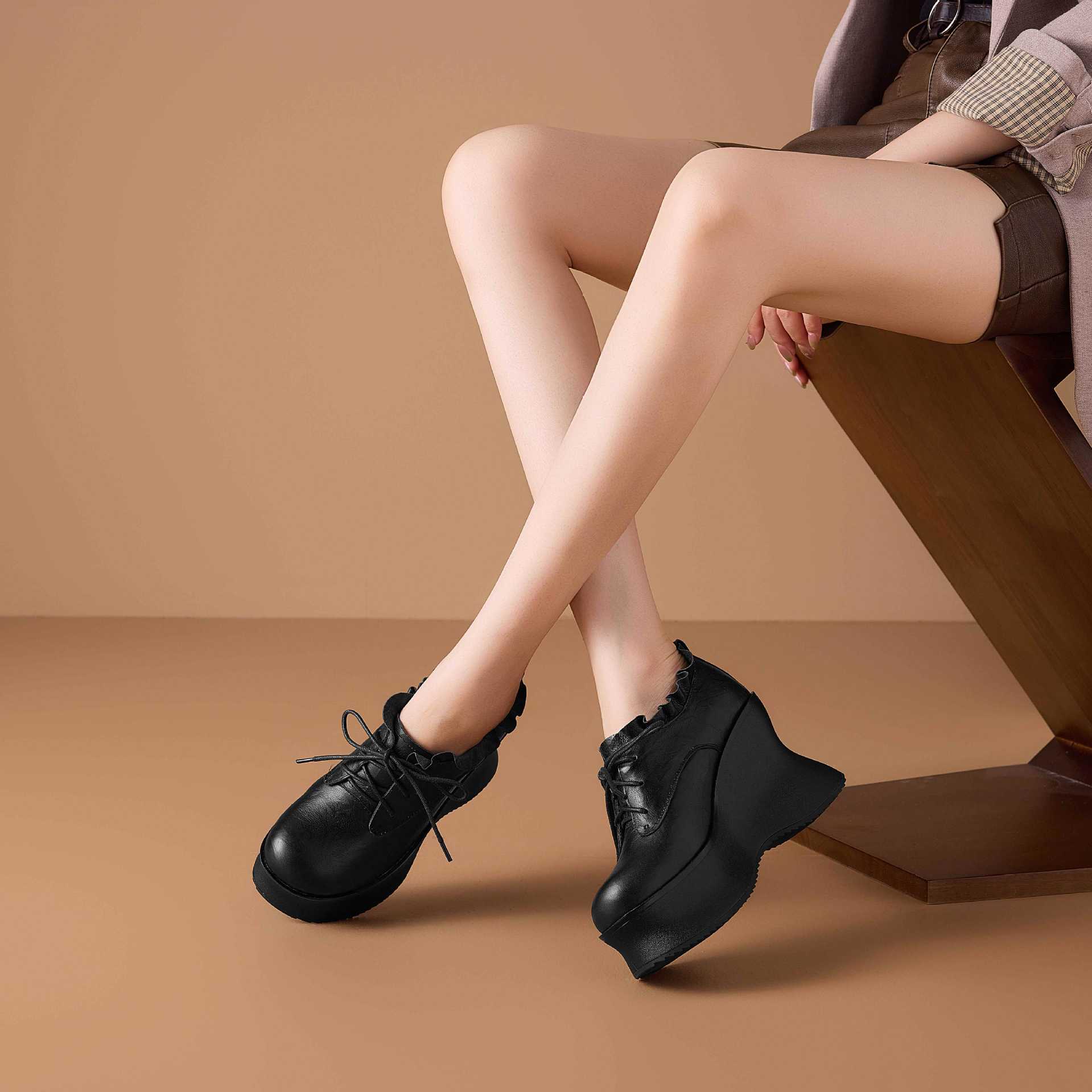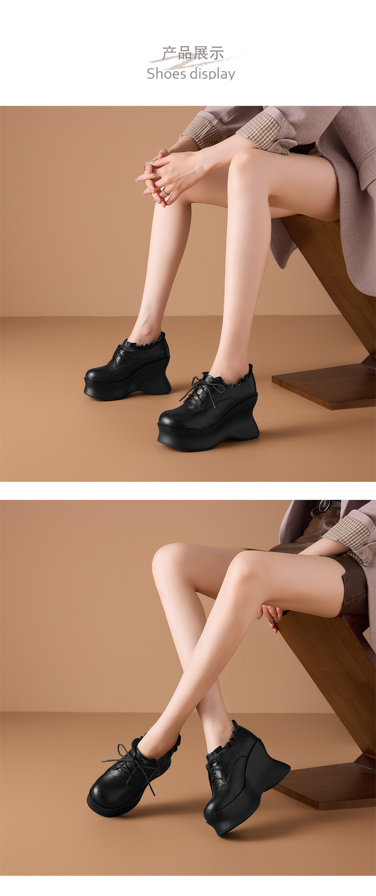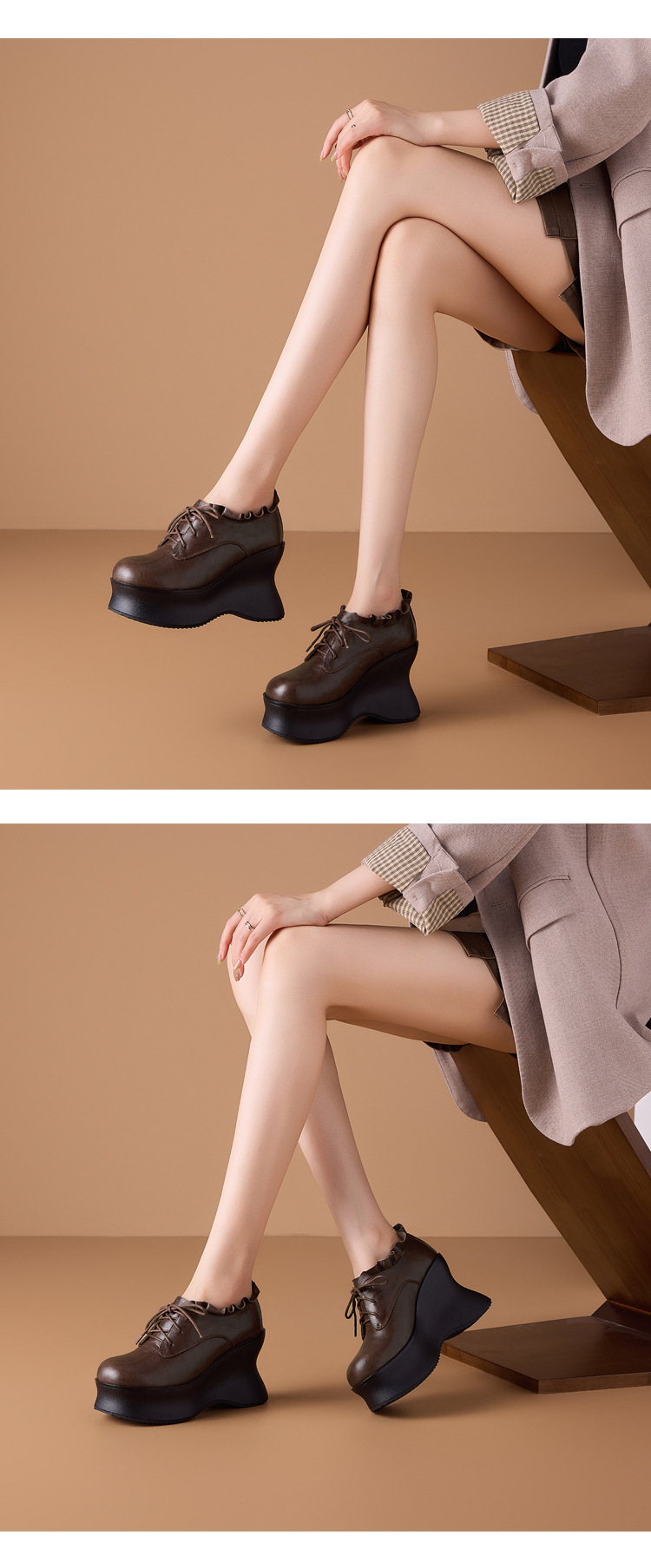 Đôi giày da thật này có phần đế dày và gót cao, giúp tăng chiều cao một cách tinh tế. Kiểu dáng buộc dây mang đến vẻ ngoài năng động, trẻ trung và dễ dàng điều chỉnh cho vừa vặn. Chất liệu da mềm mại ôm chân, mang lại cảm giác thoải mái khi di chuyển. Sản phẩm thích hợp để phối cùng nhiều loại trang phục khác nhau trong những ngày tiết trời mát mẻ. Bạn chỉ cần buộc dây vừa chân và sử dụng như những đôi giày bình thường. | Tên sản phẩm: Giày Cao Gót Nữ Chất Liệu Da Bò Cao 10cm Chống Nước Tăng Chiều Cao Đế Cao Hàng Mùa Xuân Thu Đông - Giày Dép Nữ | Mã sản phẩm: B4214 - Giá: 1.830.000đ | Mã nhà sản xuất: QIDNG-G05Hình ảnh sản phẩm
