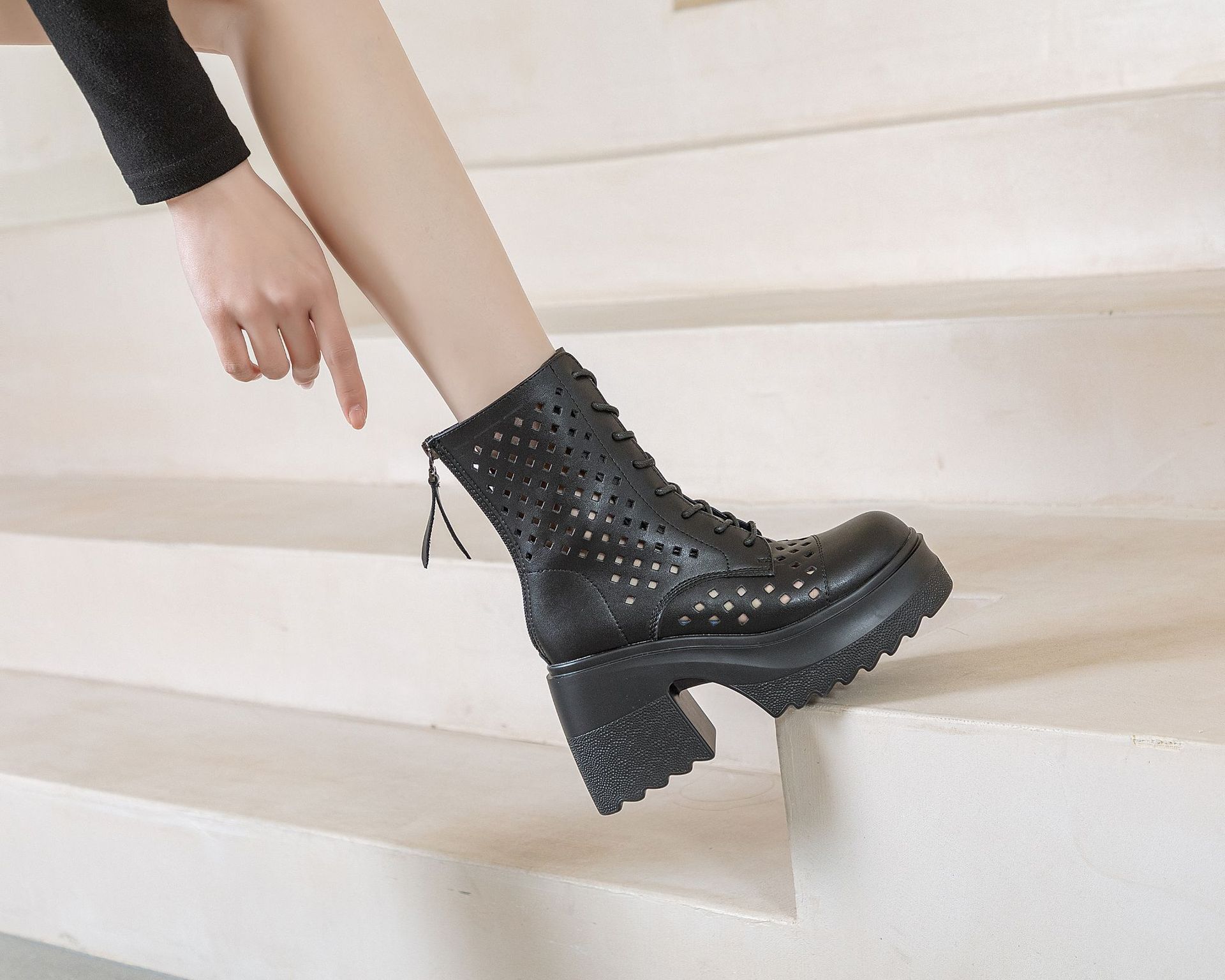 Đôi bốt cổ cao này mang đến cho các bạn nữ vẻ ngoại năng động và cá tính. Sản phẩm có phần đế được thiết kế dày hơn một chút, giúp tôn dáng một cách tự nhiên. Kiểu dáng bốt thể thao kết hợp với phong cách mũi tròn, tạo cảm giác thoải mái khi mang cả ngày. Chất liệu có những lỗ thông hơi nhỏ, phù hợp để sử dụng trong tiết trời ấm áp. Bạn có thể dễ dàng phối cùng quần jeans hay váy để tạo nên những phong cách thời trang khác nhau. | Tên sản phẩm: Boot Cổ Cao Nữ Tăng Chiều Cao Thoáng Khí Đế Cao Hàng Mùa Xuân Thu Đông - Giày Dép Nữ | Mã sản phẩm: B4217 - Giá: 1.120.000đ | Mã nhà sản xuất: WEDS-G04Hình ảnh sản phẩm