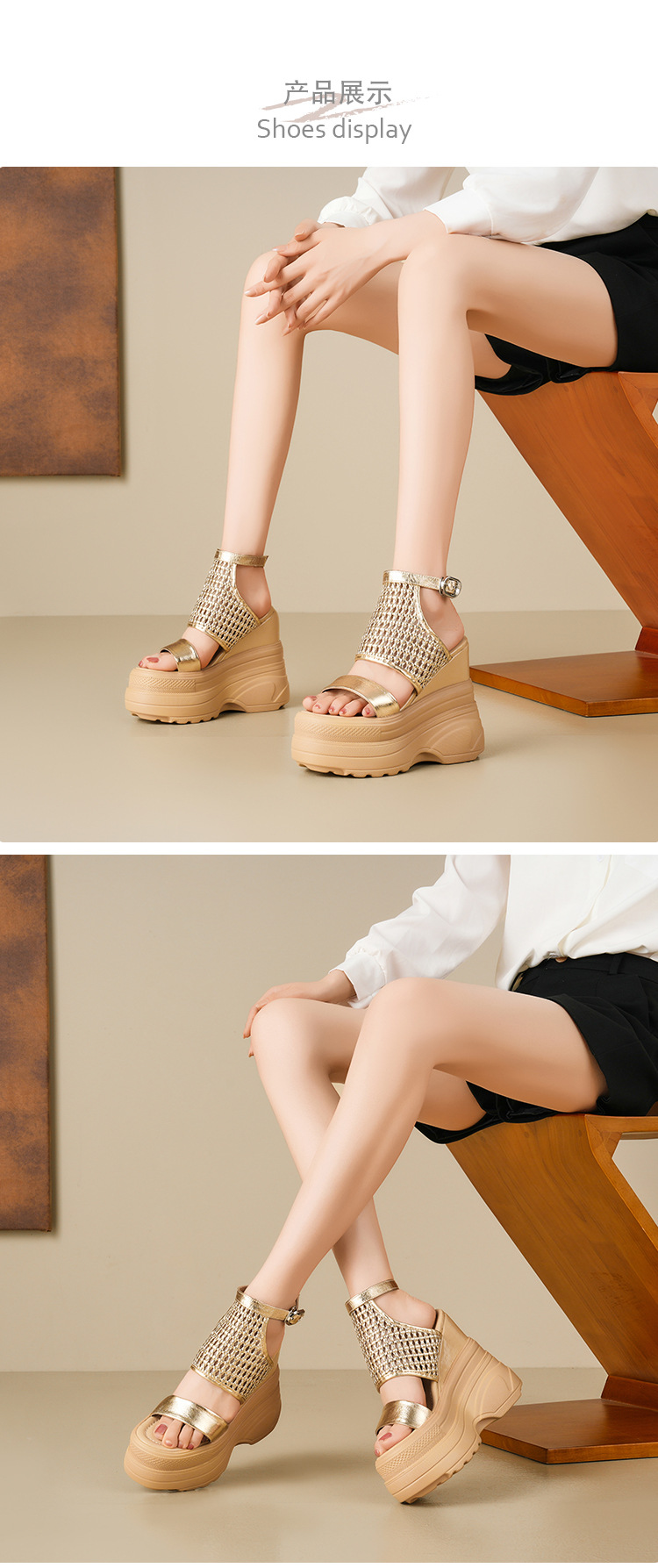 Đôi giày bệt nữ với phần đế dày 14cm, giúp tăng chiều cao một cách tự nhiên. Kiểu dáng sandal La Mã với các dây đan chéo tinh tế, tạo điểm nhấn bằng phần thiết kế khoét lỗ thoáng mát. Sản phẩm kết hợp giữa qu dệt mềm mại và đế chắc chắn, phù hợp cho nhiều dịp sử dụng. Chỉ cần xỏ chân vào, điều chỉnh các dây qu cho vừa vặn là có thể thoải mái di chuyển cả ngày. | Tên sản phẩm: Giày Cao Gót Nữ Cao 14cm Tăng Chiều Cao Đế Cao - Giày Dép Nữ | Mã sản phẩm: B4222 - Giá: 2.020.000đ | Mã nhà sản xuất: QIDNG-G05Hình ảnh sản phẩm