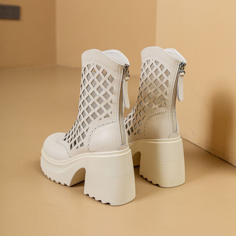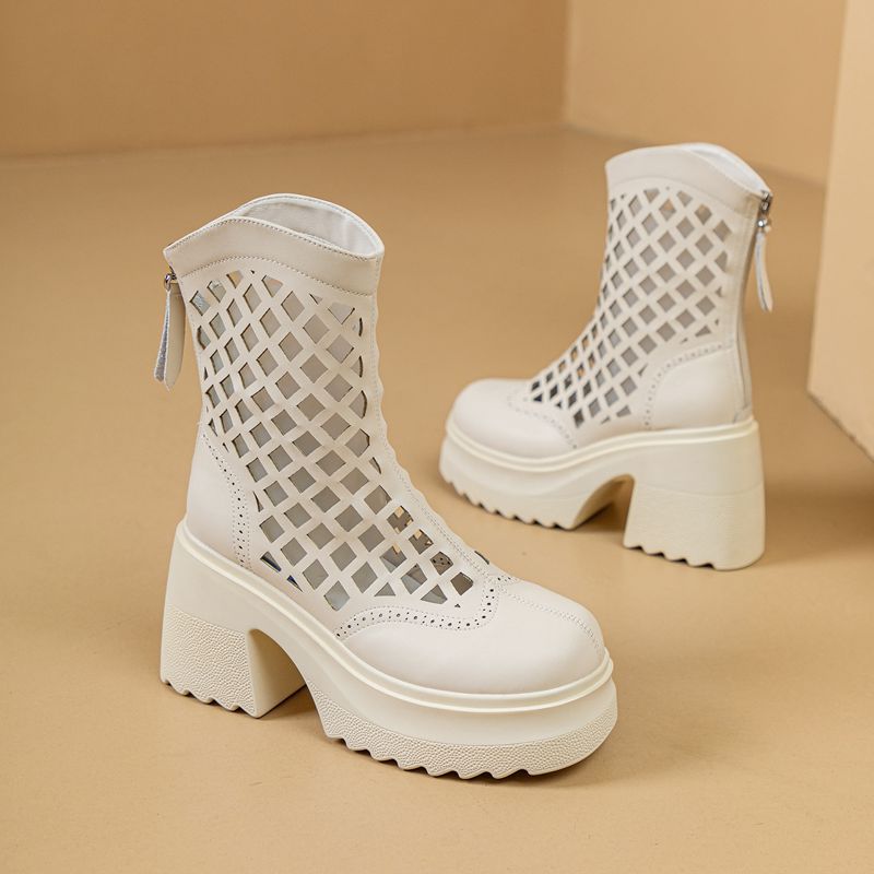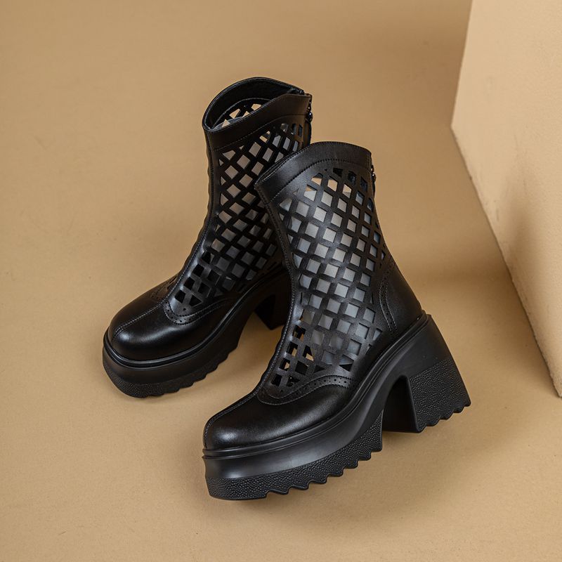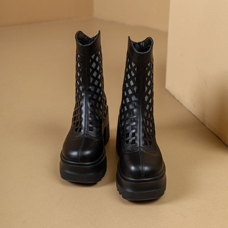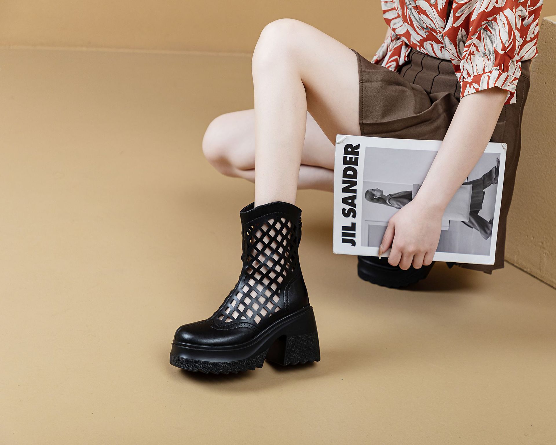 Bốt mát điều hòa kiểu dáng mới, được làm từ chất liệu da thật có đục lỗ nhỏ giúp đôi chân luôn thông thoáng. Thiết kế bốt cao cổ phong cách mạnh mẽ, kết hợp cùng đế hầm hố vững chãi và phần gót cao vừa phải, giúp tôn dáng đôi chân thon gọn. Dễ dàng phối cùng nhiều trang phục như quần jeans, váy hay quần shorts. Mang giày và kéo khóa phía sau là bạn đã có một set đồ thời thượng. | Tên sản phẩm: Cao Gót Nữ Chất Liệu Da Bò Tăng Chiều Cao Đế Cao - Giày Dép Nữ | Mã sản phẩm: B4233 - Giá: 1.120.000đ | Mã nhà sản xuất: WEDS-G04Hình ảnh sản phẩm