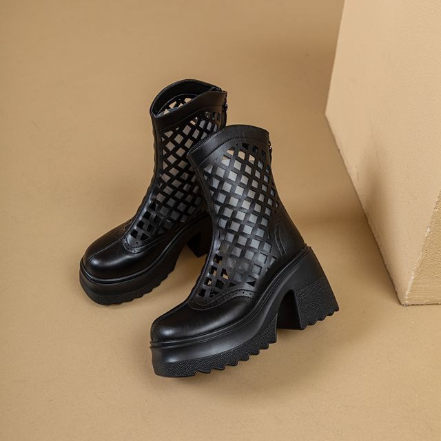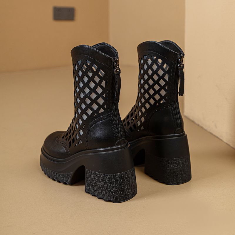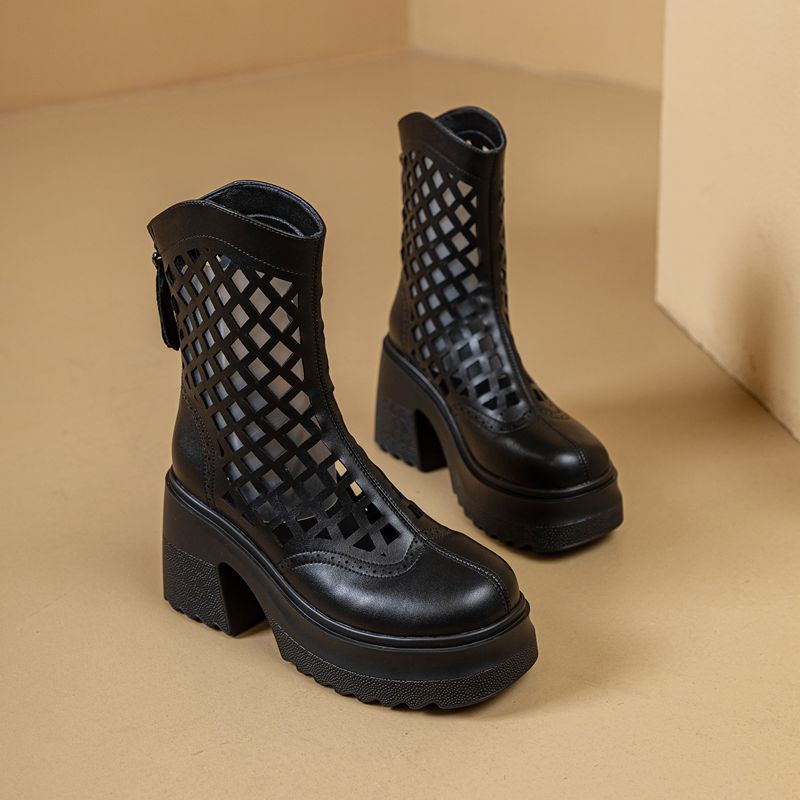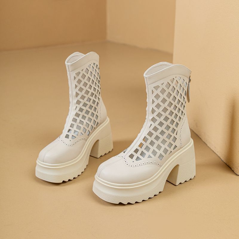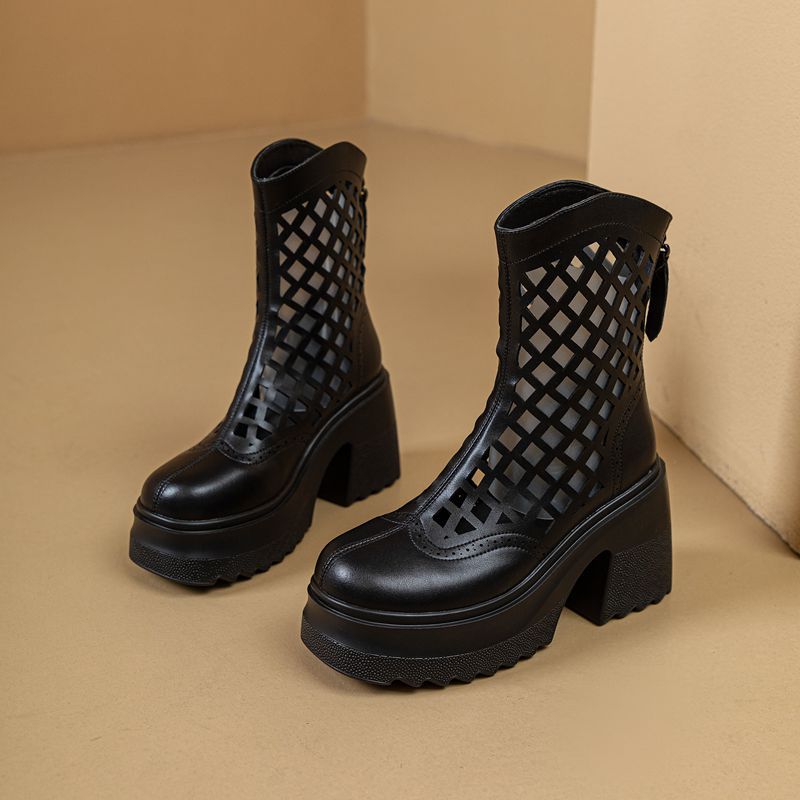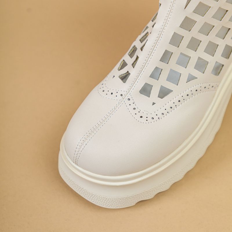 Bốt mát điều hòa kiểu dáng mới, được làm từ chất liệu da thật có đục lỗ nhỏ giúp đôi chân luôn thông thoáng. Thiết kế bốt cao cổ phong cách mạnh mẽ, kết hợp cùng đế hầm hố vững chãi và phần gót cao vừa phải, giúp tôn dáng đôi chân thon gọn. Dễ dàng phối cùng nhiều trang phục như quần jeans, váy hay quần shorts. Mang giày và kéo khóa phía sau là bạn đã có một set đồ thời thượng. | Tên sản phẩm: Cao Gót Nữ Chất Liệu Da Bò Tăng Chiều Cao Đế Cao - Giày Dép Nữ | Mã sản phẩm: B4233 - Giá: 1.120.000đ | Mã nhà sản xuất: WEDS-G04Hình ảnh sản phẩm
