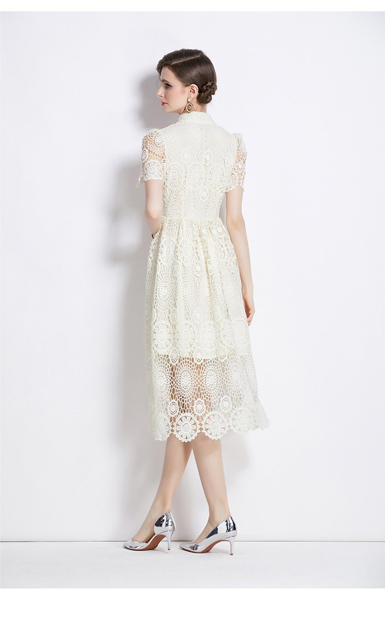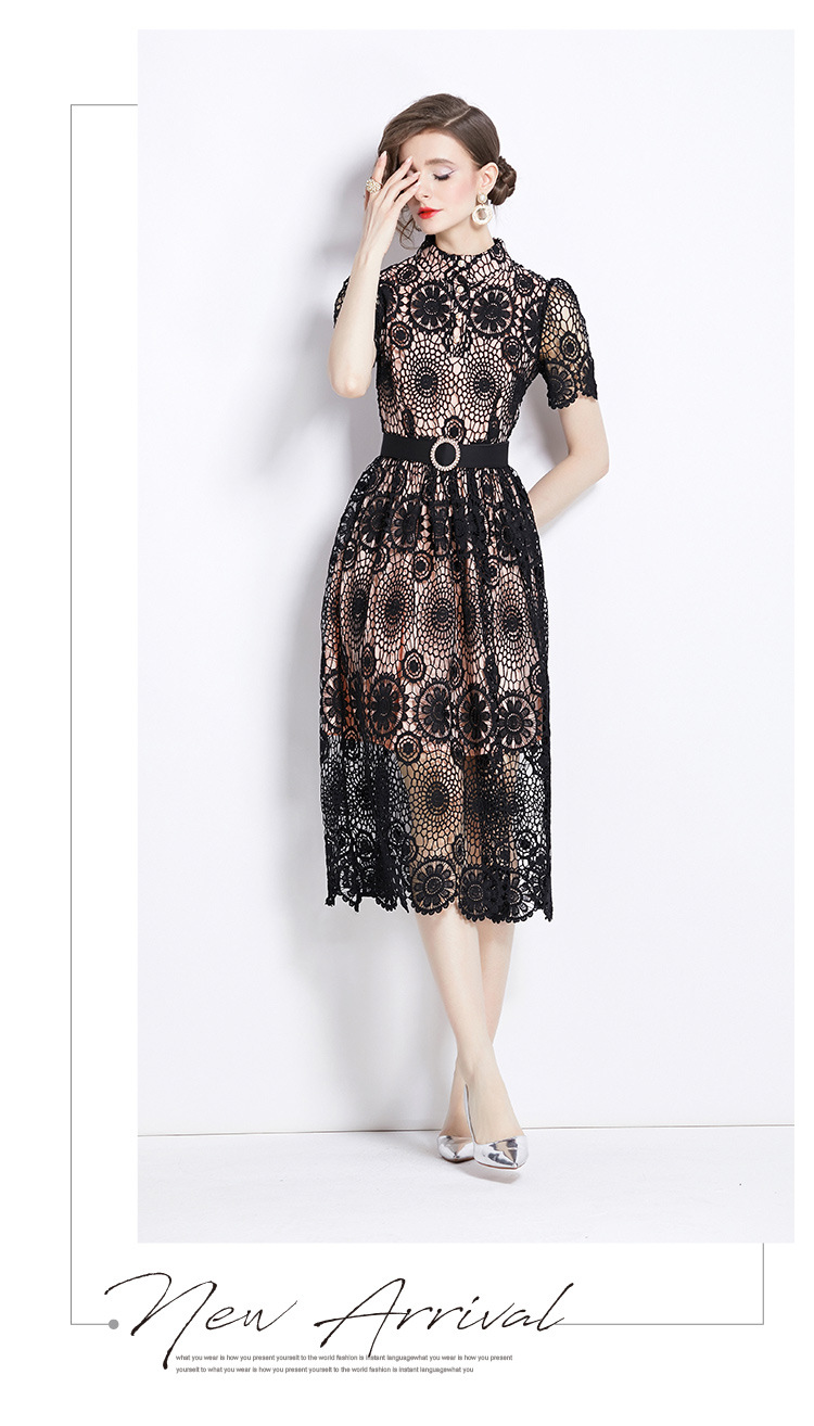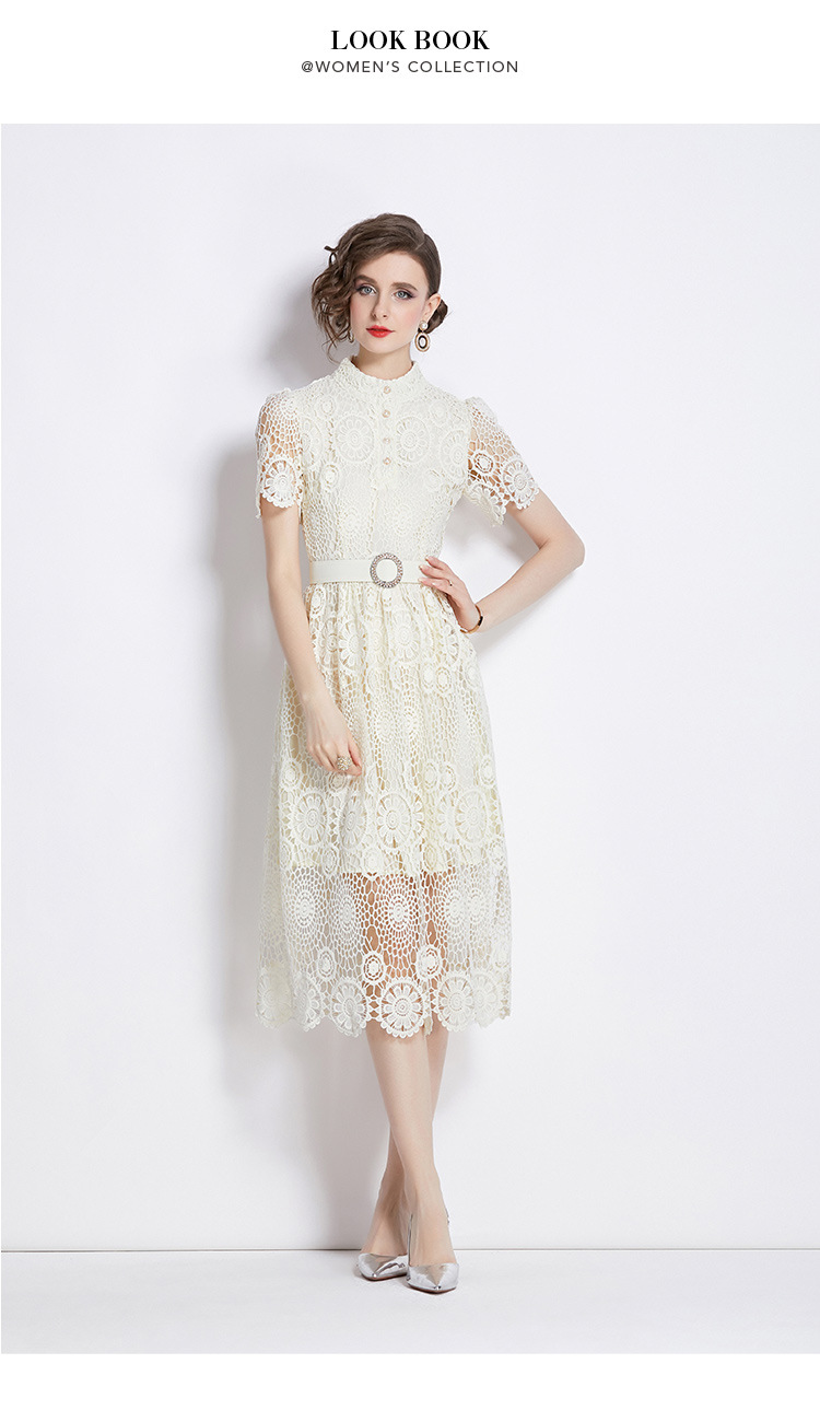 Chiếc đầm này mang phong cách cổ điển Pháp, được làm từ chất liệu ren mỏng nhẹ tạo nên vẻ đẹp dịu dàng. Thiết kế dáng dài ôn hờn cơ thể, tay ngắn và kiểu dáng kín đáo phù hợp cho nhiều dịp. Bạn có thể mặc khi đi làm, dự tiệc nhẹ hay những buổi gặp mặt thường ngày. Sản phẩm dễ dàng phối cùng giày sandal và túi xách để hoàn thiện bộ trang phục. | Tên sản phẩm: Váy Đầm Liền Thân Nữ Chất Liệu Ren Dáng Ôm Ngắn Tay Hàng Mùa Hè Phục Cổ Cổ Điển - Thời Trang Nữ | Mã sản phẩm: B4238 - Giá: 990.000đ | Mã nhà sản xuất: GUDG-G03Hình ảnh sản phẩm