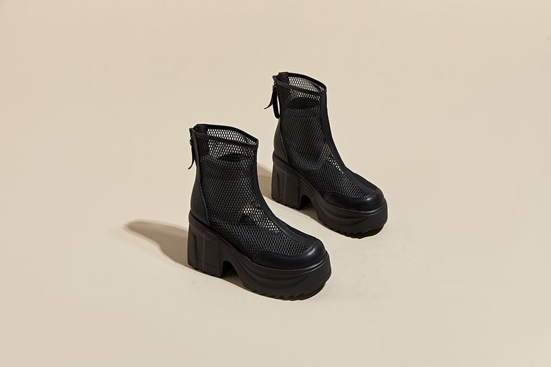 Đôi bốt cổ thấp này có phần đế dày mười phân giúp tăng chiều cao một cách nhẹ nhàng. Chất liệu lưới mềm mại cùng các chi tiết khoét hình tổ ong tạo nên sự thoáng mát, dễ chịu khi mang. Phong cách thiết kế kết hợp giữa nét mạnh mẽ và nữ tính, phù hợp để phối cùng nhiều kiểu trang phục khác nhau. Bạn chỉ cần xỏ chân vào và cài khóa khóa kéo là đã sẵn sàng để bước đi. | Tên sản phẩm: Giày Cao Gót Nữ Lưới Mỏng Gót Vuông Tăng Chiều Cao Thoáng Khí Đế Cao - Giày Dép Nữ | Mã sản phẩm: B4239 - Giá: 1.000.000đ | Mã nhà sản xuất: WEDS-G03Hình ảnh sản phẩm