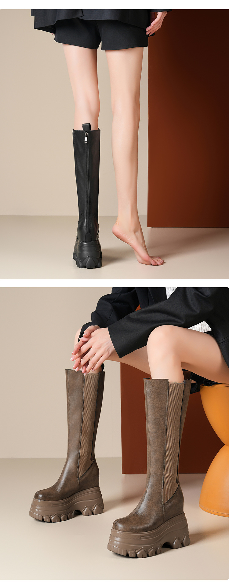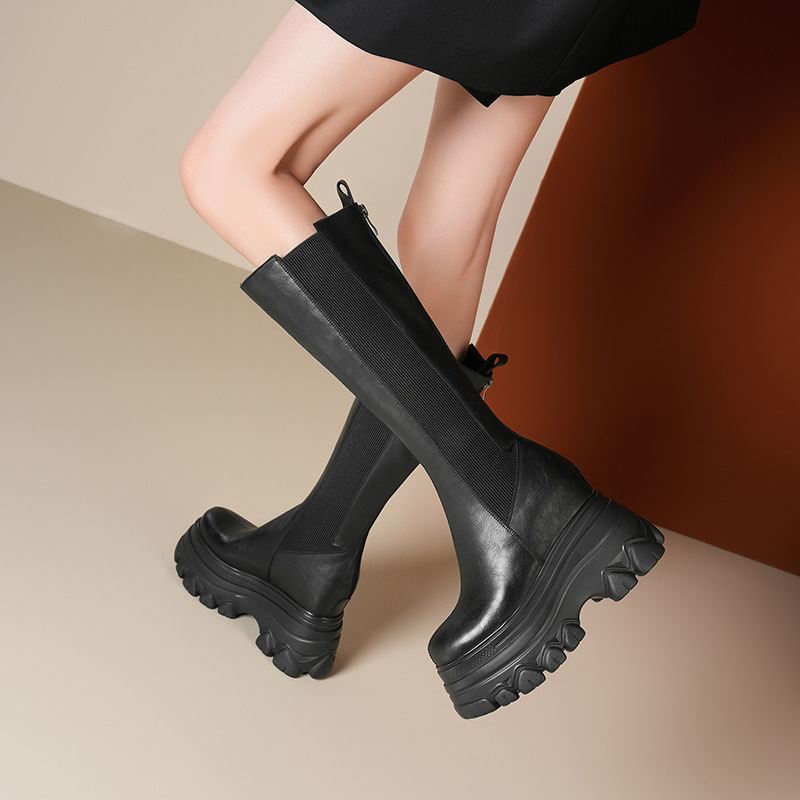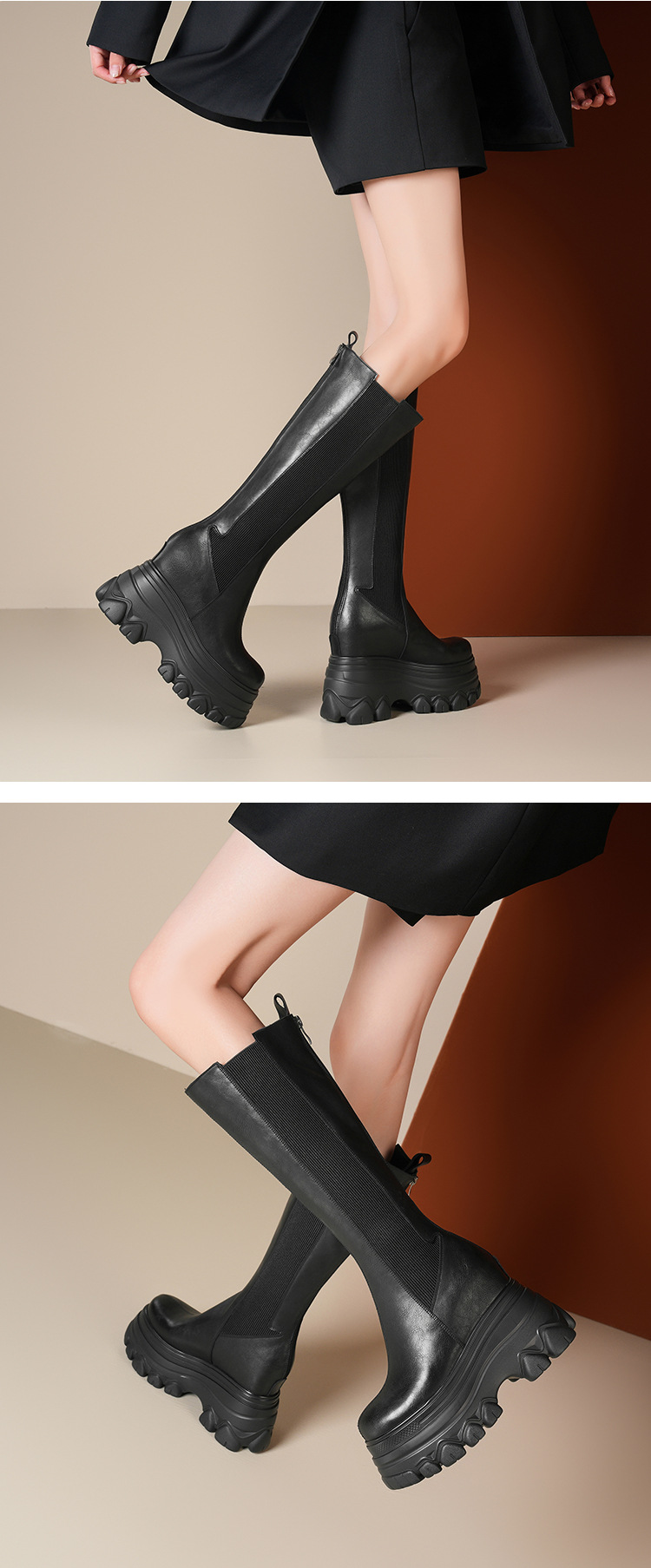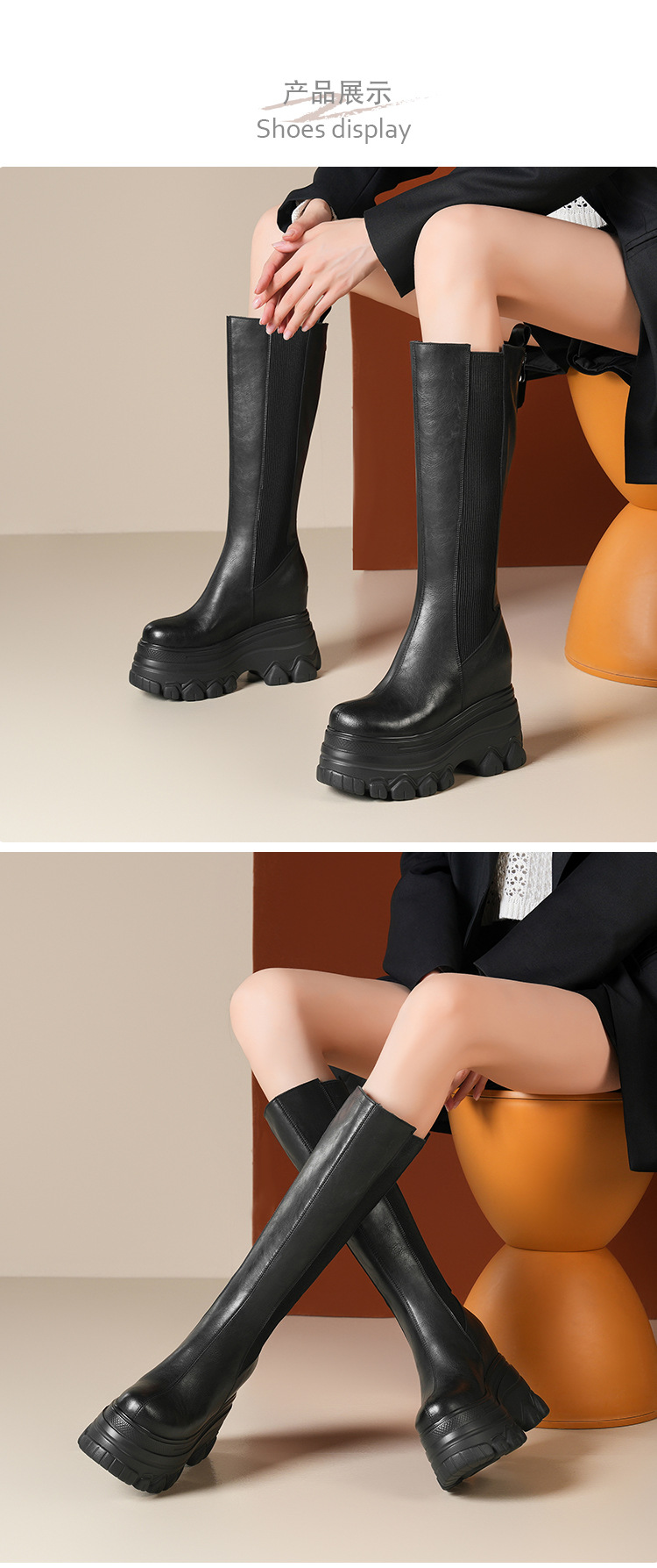 Đôi bốt cao cổ này có phần đế dày và gót cao mười hai phân, giúp tăng chiều cao đáng kể. Được làm từ chất liệu da mềm mại, ôm chân nhưng vẫn thoải mái. Kiểu dáng bốt kỵ sĩ không quá đầu gối, phù hợp để phối cùng nhiều loại trang phục khác nhau như quần jeans hay váy ngắn. Chỉ cần xỏ chân vào, kéo khóa phía sau là đã sẵn sàng diện xuống phố. | Tên sản phẩm: Cao Gót Nữ Chất Liệu Da Bò Cao 12cm Cổ Cao Qua Gối Đế Cao - Giày Dép Nữ | Mã sản phẩm: B4245 - Giá: 2.680.000đ | Mã nhà sản xuất: QIDNG-G06Hình ảnh sản phẩm