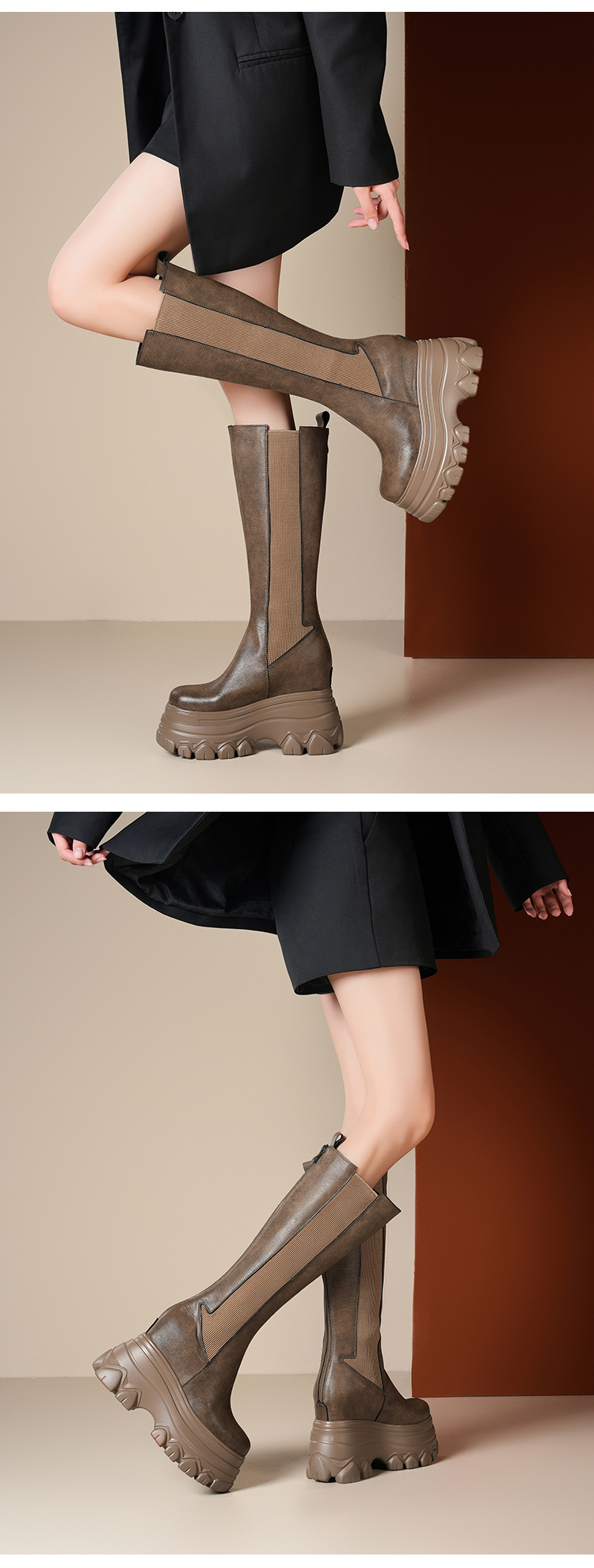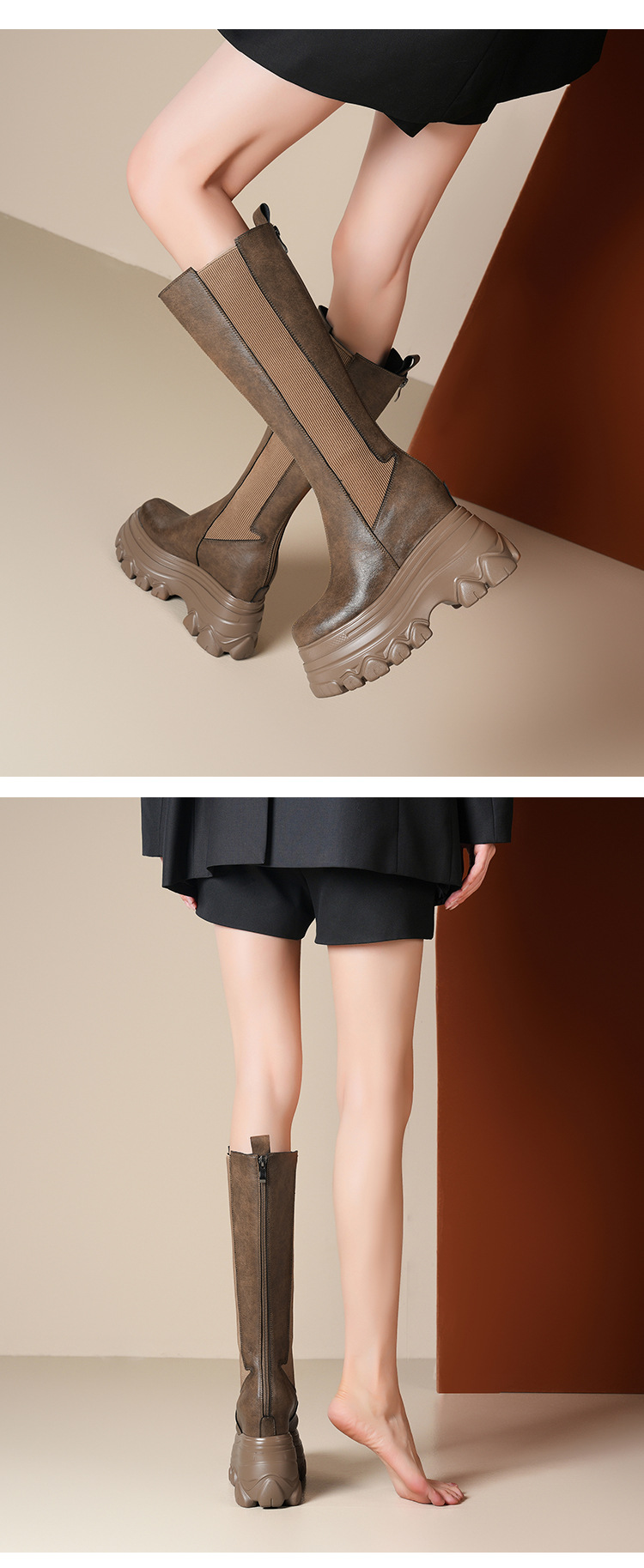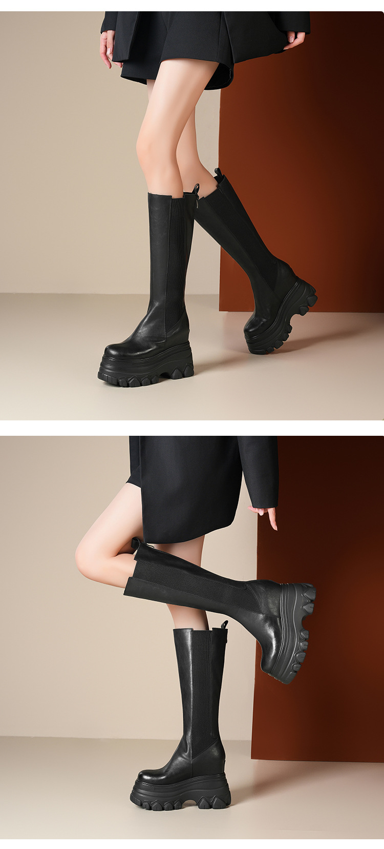 Đôi bốt cao cổ này có phần đế dày và gót cao mười hai phân, giúp tăng chiều cao đáng kể. Được làm từ chất liệu da mềm mại, ôm chân nhưng vẫn thoải mái. Kiểu dáng bốt kỵ sĩ không quá đầu gối, phù hợp để phối cùng nhiều loại trang phục khác nhau như quần jeans hay váy ngắn. Chỉ cần xỏ chân vào, kéo khóa phía sau là đã sẵn sàng diện xuống phố. | Tên sản phẩm: Cao Gót Nữ Chất Liệu Da Bò Cao 12cm Cổ Cao Qua Gối Đế Cao - Giày Dép Nữ | Mã sản phẩm: B4245 - Giá: 2.680.000đ | Mã nhà sản xuất: QIDNG-G06Hình ảnh sản phẩm
