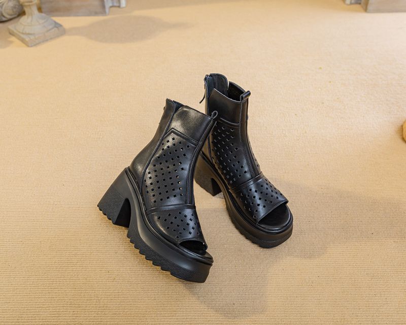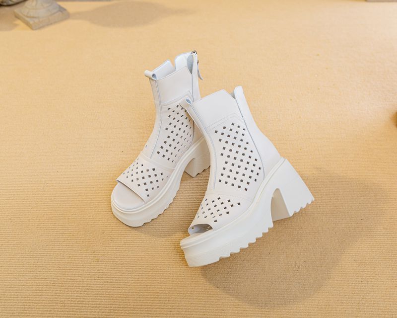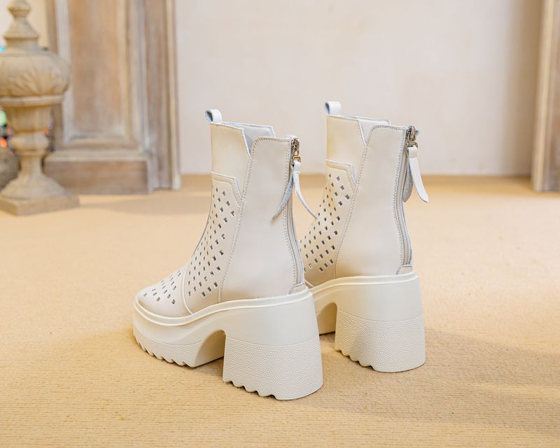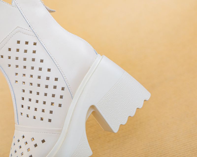 Đôi bốt này có phần đế rất dày, giúp tăng chiều cao một cách thoải mái. Trên thân bốt được đục lỗ nhỏ li ti tạo sự thông thoáng, phù hợp mang khi trời ấm. Chất liệu bằng da mềm, kết hợp kiểu dáng bốt bụi bặm và gót chắc chắn. Có thể phối hợp với nhiều loại trang phục như quần jeans hay váy để tạo phong cách cá tính. | Tên sản phẩm: Cao Gót Nữ Chất Liệu Da Bò Tăng Chiều Cao Đế Cao - Giày Dép Nữ | Mã sản phẩm: B4254 - Giá: 1.090.000đ | Mã nhà sản xuất: WEDS-G03Hình ảnh sản phẩm