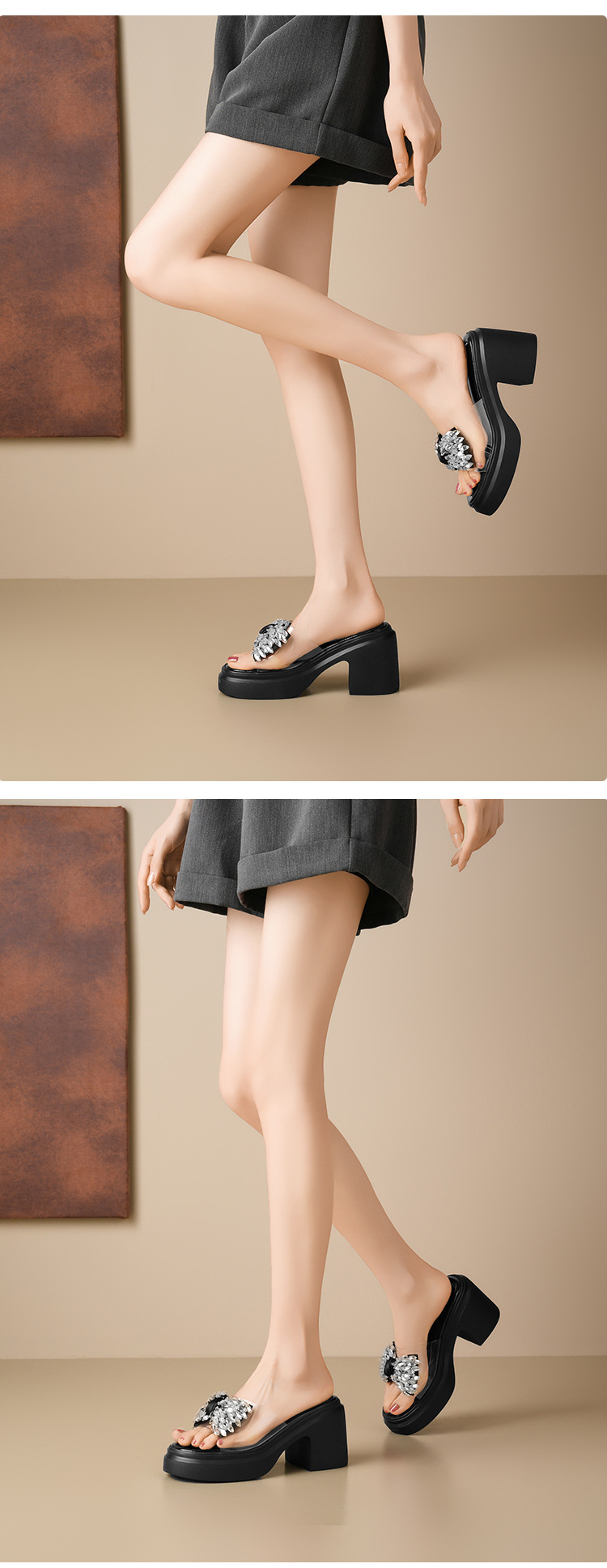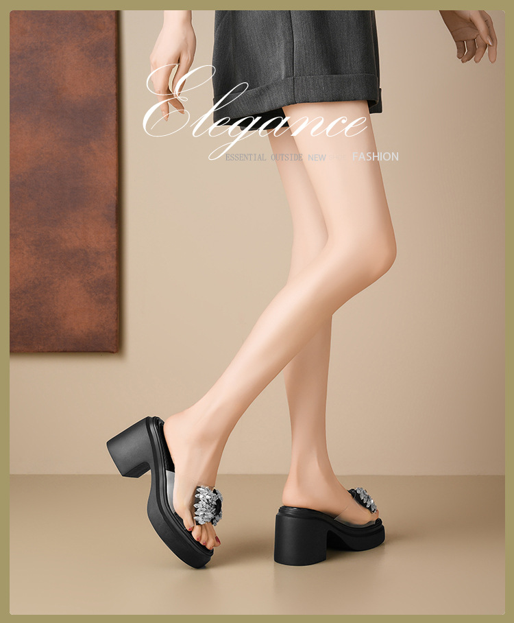 Đôi dép quai ngang mới với phần đế dày mười phân, giúp tăng chiều cao đáng kể. Điểm nhấn là chiếc nơ trong suốt gắn hạt lấp lánh, tạo vẻ đẹp nữ tính và tinh tế. Kiểu dáng cổ điển dễ dàng phối hợp cùng nhiều loại trang phục như đầm, quần shorts. Sản phẩm thích hợp để đi trong nhà, dạo phố hay gặp gỡ bạn bè. Bạn chỉ cần xỏ chân vào và điều chỉnh qu cho vừa vặn là có thể sử dụng ngay. | Tên sản phẩm: Giày Dép Lê Nữ Thắt Nơ Bướm Cao 10cm Gắn Đá Gót Vuông Tăng Chiều Cao Trong Suốt Đế Cao - Giày Dép Nữ | Mã sản phẩm: B4258 - Giá: 1.920.000đ | Mã nhà sản xuất: QIDNG-G05Hình ảnh sản phẩm