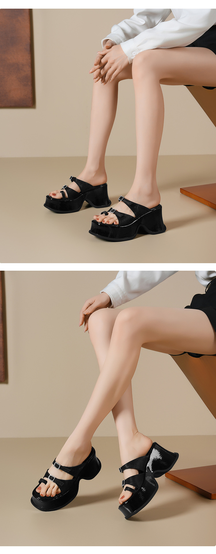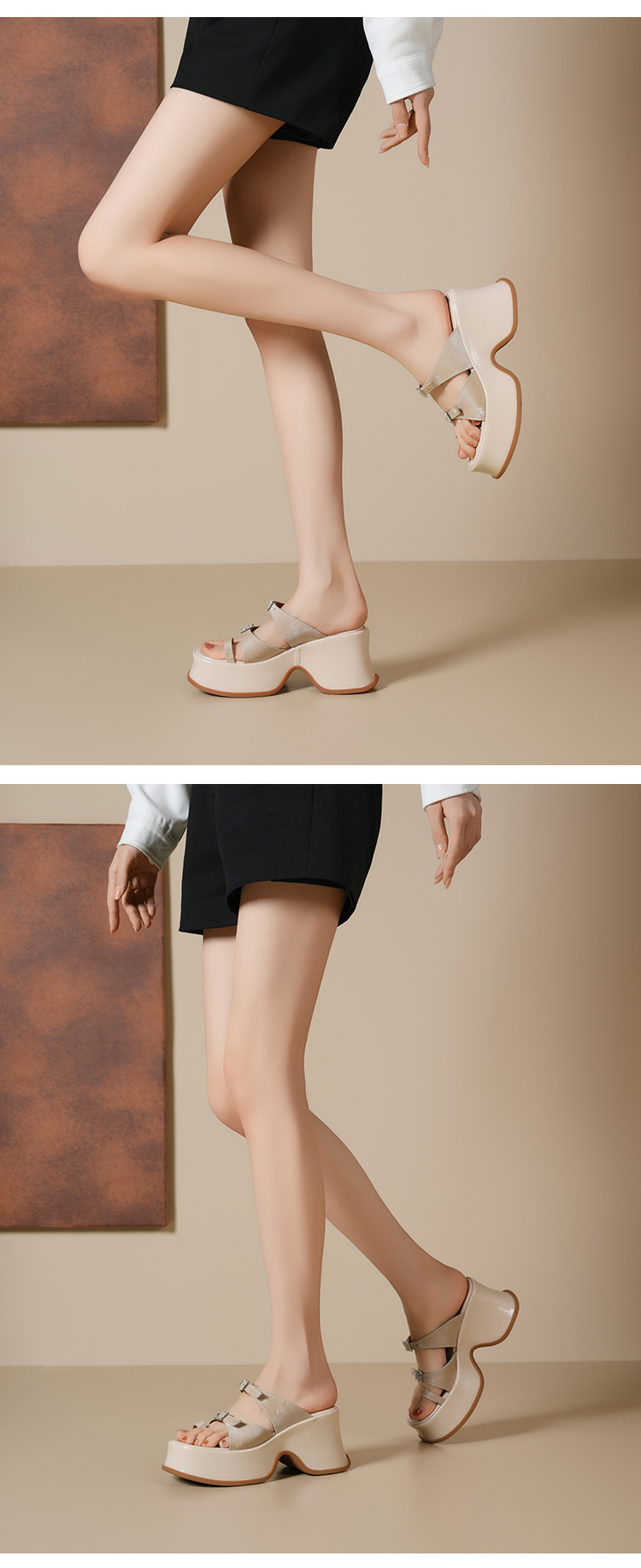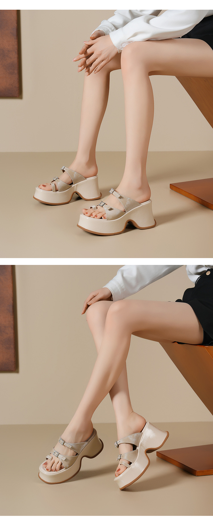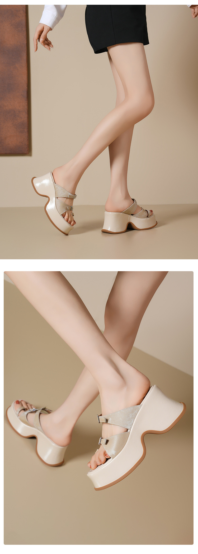 Đôi dép quai ngang này có phần đế dày thoải mái và độ cao vừa phải, giúp tôn dáng một cách nhẹ nhàng. Kiểu dáng thiết kế mở cùng qu chữ T ở phần mũi tạo cảm giác mát mẻ, dễ chịu, rất phù hợp cho những ngày hè. Sản phẩm được làm từ chất liệu da mềm mại, ôm chân nhẹ nhàng. Bạn có thể dùng làm dép đi trong nhà hoặc mang ra ngoài đường đều tiện lợi. | Tên sản phẩm: Giày Dép Lê Nữ Chất Liệu Da Bò Cao 9cm Đế Xuồng Đế Cao Hàng Mùa Hè - Giày Dép Nữ | Mã sản phẩm: B4271 - Giá: 1.300.000đ | Mã nhà sản xuất: QIDNG-G04Hình ảnh sản phẩm
