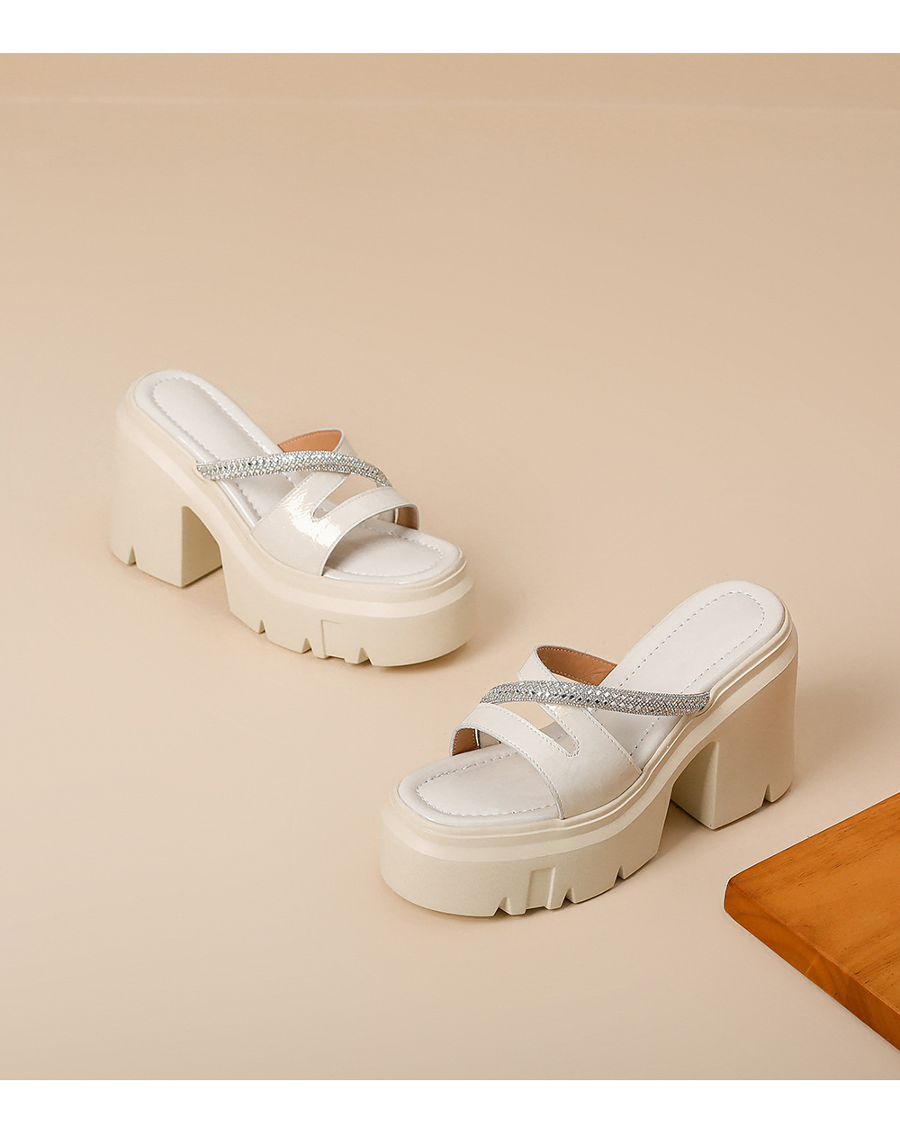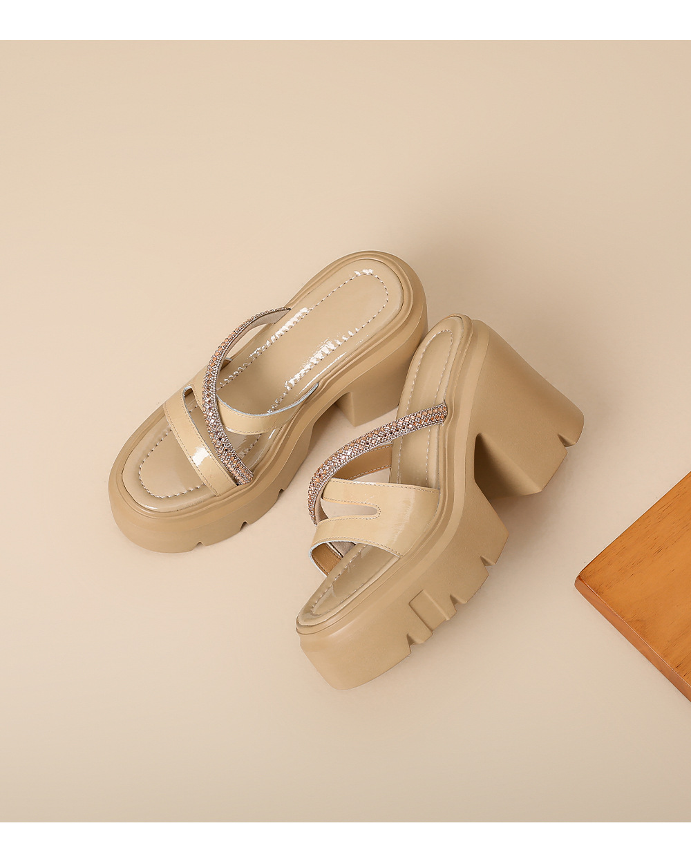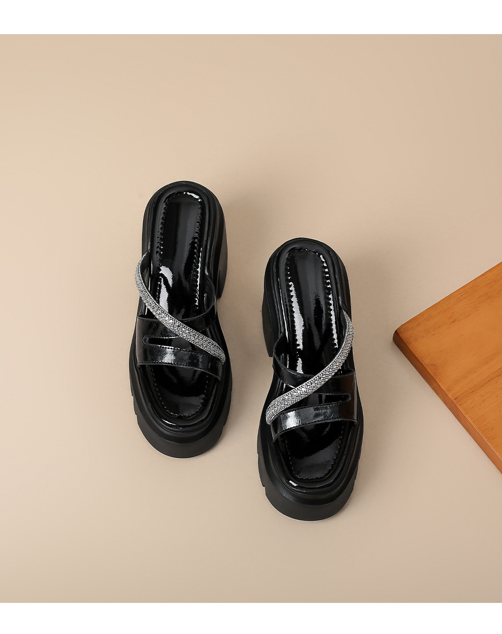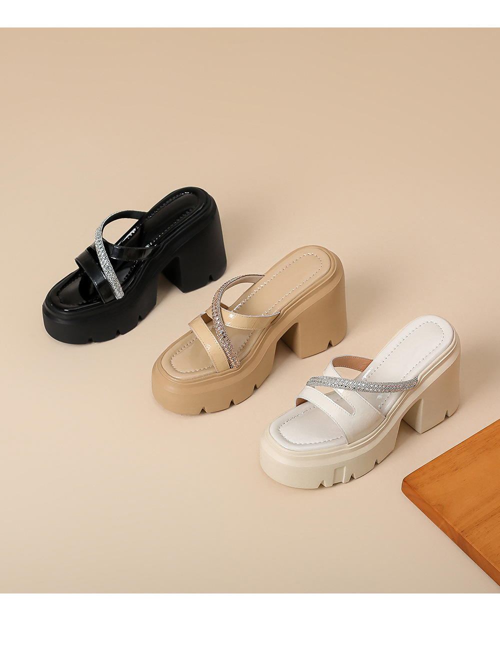 Đôi dép quai ngang có phần đế cao mười hai phân, giúp tăng chiều cao một cách nhẹ nhàng. Dáng dép thanh thoát, phần qu được làm từ chất liệu da mềm mại, tạo cảm giác dễ chịu khi mang. Trên qu dép có điểm xuyết những viên đá lấp lánh, tăng thêm phần nổi bật. Bạn có thể dùng làm dép đi trong nhà hoặc phối cùng nhiều kiểu trang phục để ra ngoài. | Tên sản phẩm: Giày Dép Lê Nữ Chất Liệu Da Bò Cao 12cm Gắn Đá Đế Cao Hàng Mùa Hè - Giày Dép Nữ | Mã sản phẩm: B4273 - Giá: 1.830.000đ | Mã nhà sản xuất: QIDNG-G05Hình ảnh sản phẩm