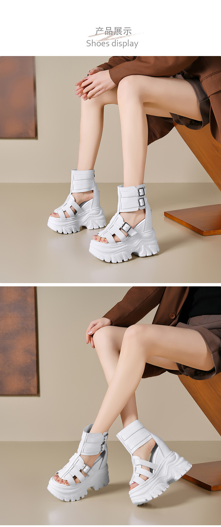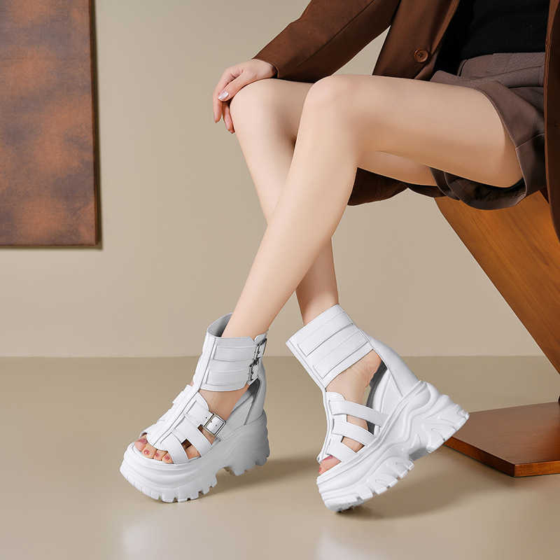 Đôi giày nữ thiết kế đế xuồng dày dặn, giúp tăng chiều cao một cách tự nhiên và thoải mái. Chất liệu da thật mang đến cảm giác mềm mại, bền bỉ khi sử dụng. Kiểu dáng sandal La Mã với các qu đan ôm chân, phong cách trẻ trung, phù hợp cho những ngày hè. Sản phẩm có phần đế chống nước, dễ dàng kết hợp cùng nhiều trang phục. Bạn chỉ cần xỏ và cài qu là đã có ngay một đôi giày thời trang để dạo phố hoặc gặp gỡ bạn bè. | Tên sản phẩm: Giày Dép Sandal Nữ Chất Liệu Da Bò Cao 14cm Chống Nước Tăng Chiều Cao Đế Cao Hàng Mùa Hè - Giày Dép Nữ | Mã sản phẩm: B4280 - Giá: 2.780.000đ | Mã nhà sản xuất: QIDNG-G06Hình ảnh sản phẩm