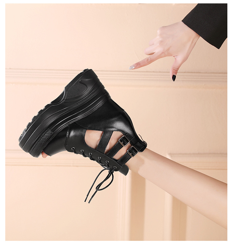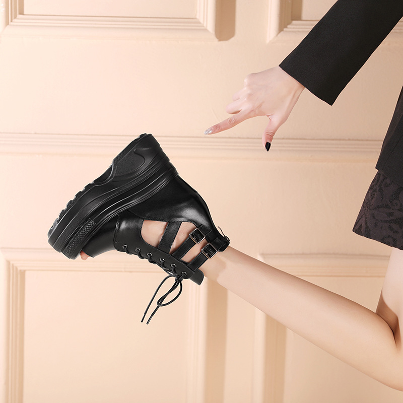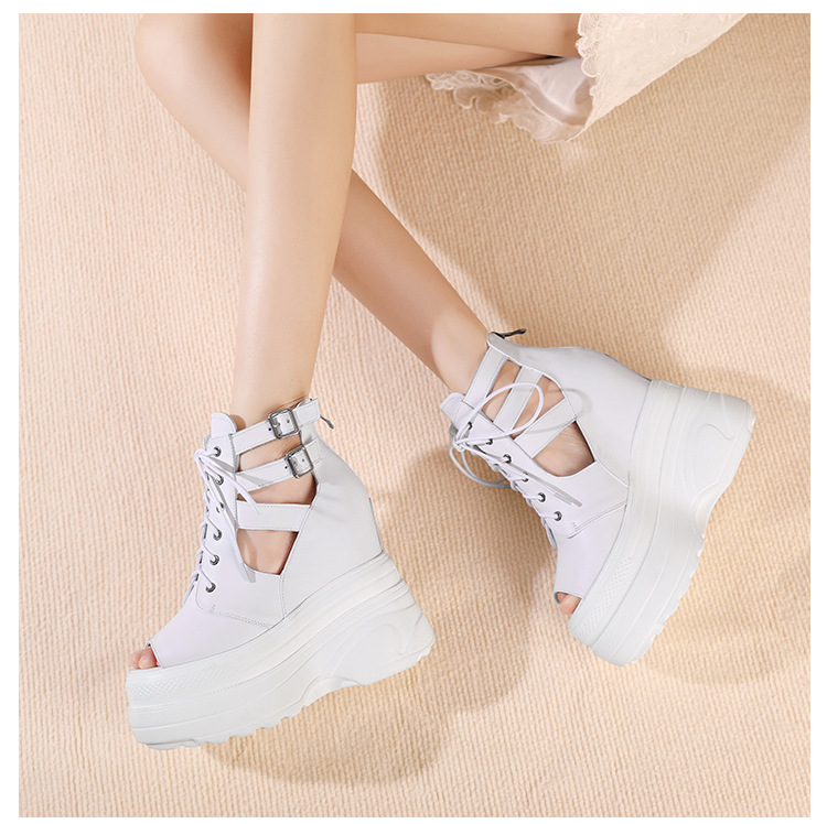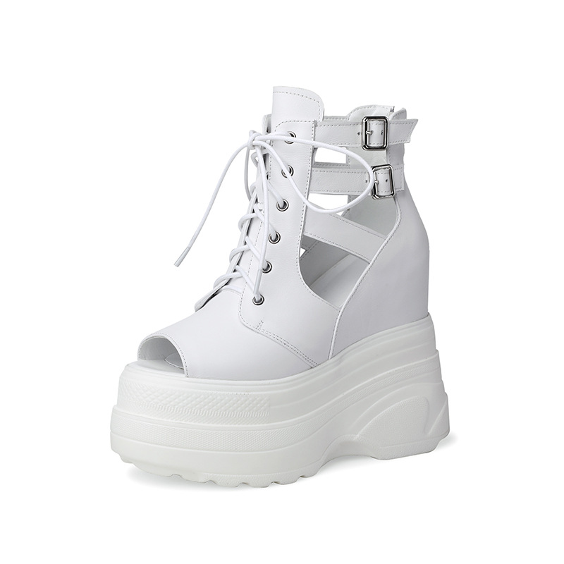 Đôi giày sandal này có phần đế rất dày và vững chãi, giúp tăng chiều cao một cách tự nhiên lên đến 14cm. Kiểu dáng cổ cao ôm sát cổ chân, kết hợp cùng thiết kế hở mũi chân tạo nên vẻ ngoài năng động, cá tính. Sản phẩm rất dễ phối đồ, phù hợp cho nhiều dịp khác nhau. Bạn chỉ cần xỏ chân vào, điều chỉnh khóa kéo hoặc dây qu cho vừa vặn là có thể tự tin bước đi. | Tên sản phẩm: Giày Cao Gót Nữ Cao 14cm Chống Nước Tăng Chiều Cao Miệng Cá - Giày Dép Nữ | Mã sản phẩm: B4281 - Giá: 2.210.000đ | Mã nhà sản xuất: QIDNG-G05Hình ảnh sản phẩm
