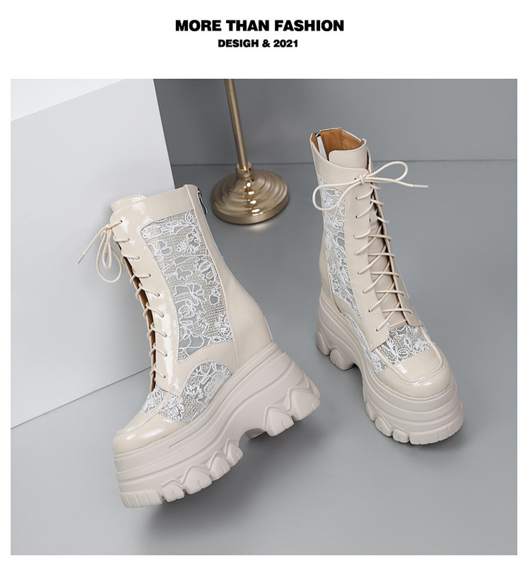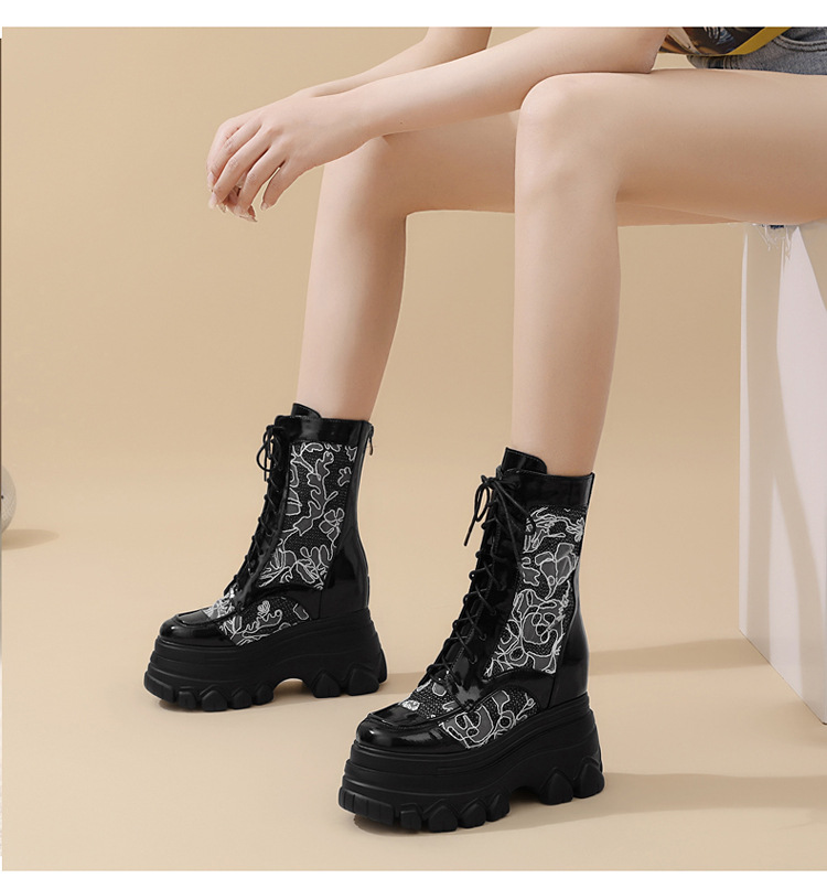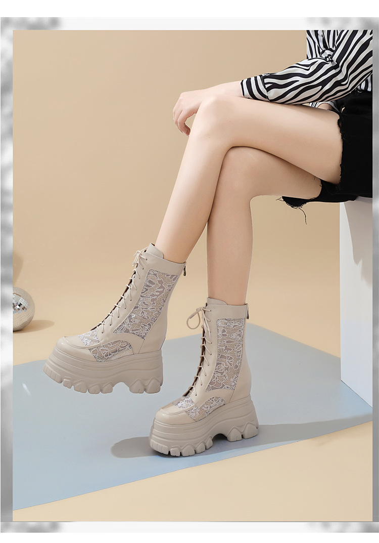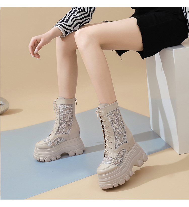 Đôi bốt cổ trung này có phần đế dày giúp tăng chiều cao một cách tự nhiên, phù hợp cho những ngày hè. Chất liệu vải lưới thoáng khí giúp chân luôn dễ chịu, kết hợp với bề mặt bóng tạo điểm nhấn. kiểu dáng linh hoạt giữa bốt và dép mùa hè, mang phong cách nhẹ nhàng. Bạn có thể dùng để kết hợp với nhiều loại trang phục khi đi chơi, đi dạo. Chỉ cần xỏ vào và cài khóa kéo là đã sẵn sàng. | Tên sản phẩm: Boot Martin Nữ Chất Liệu Vải Lưới Cao 12cm Tăng Chiều Cao Thoáng Khí Đế Cao Hàng Mùa Hè - Giày Dép Nữ | Mã sản phẩm: B4284 - Giá: 2.020.000đ | Mã nhà sản xuất: QIDNG-G05Hình ảnh sản phẩm