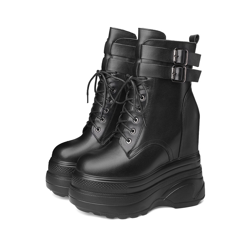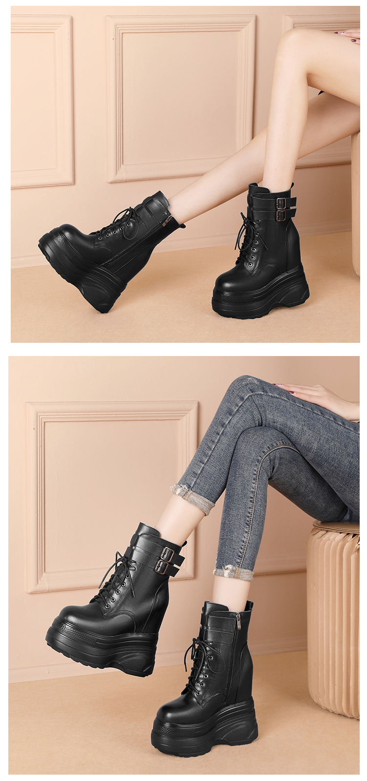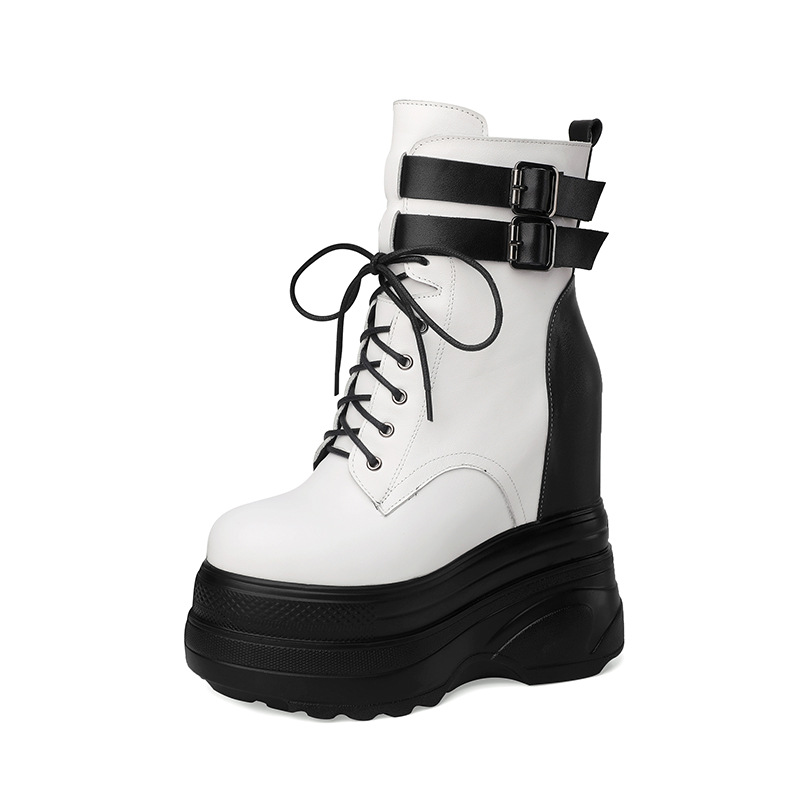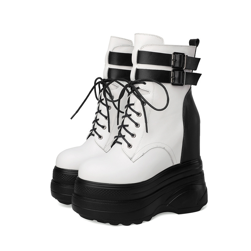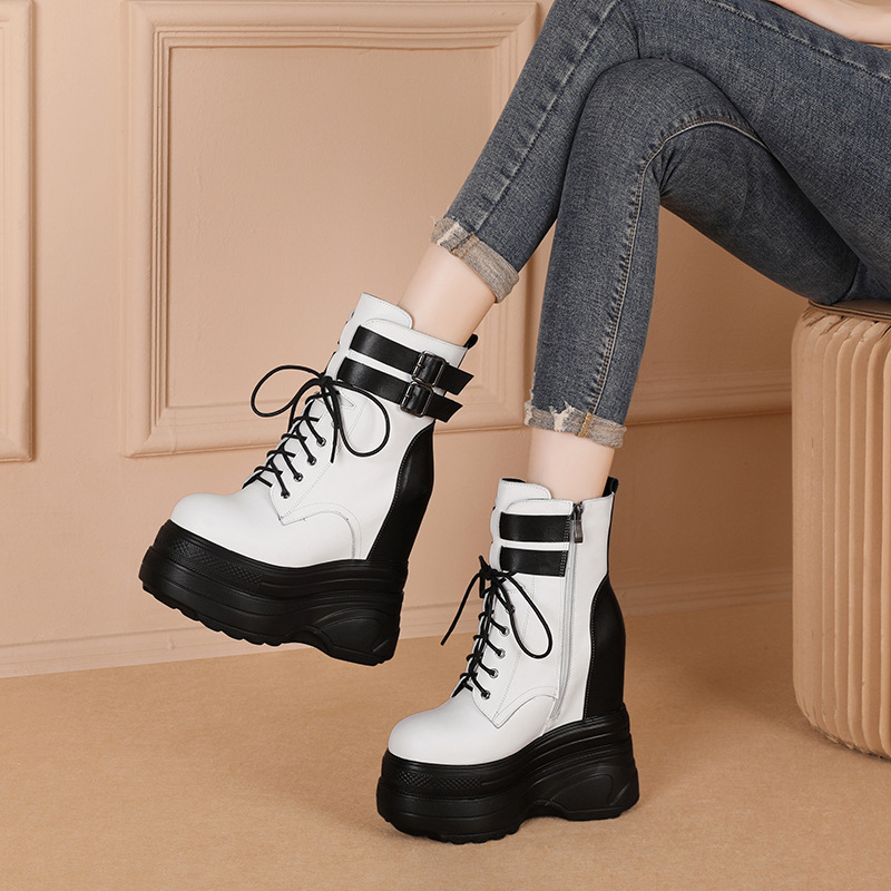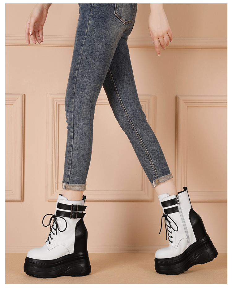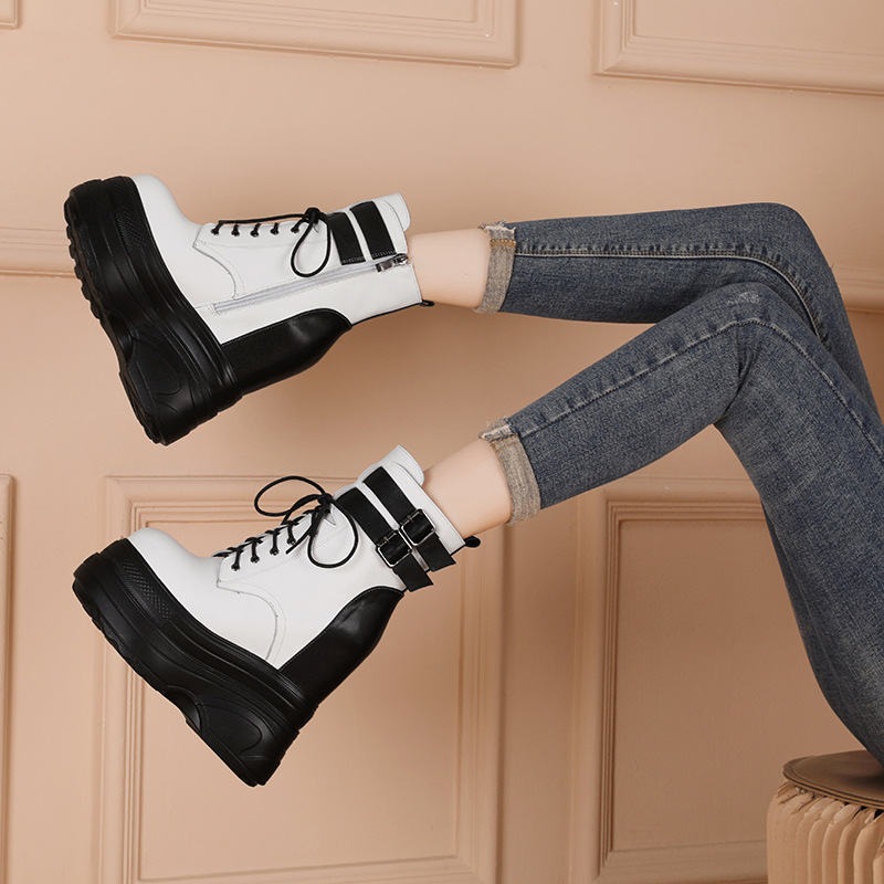 Đôi bốt này có phần đế rất dày giúp tăng chiều cao một cách tự nhiên. Kiểu dáng phối màu độc đáo, kết hợp khóa kéo tiện lợi cho việc mang vào và tháo ra. Mẫu mã theo phong cách hiện đại, dễ dàng phối hợp với nhiều loại trang phục khác nhau như quần jean hay váy. Bạn có thể sử dụng hằng ngày để đi làm, đi chơi. Chất liệu bền bỉ, phù hợp để sử dụng trong những tháng tiết trời mát mẻ. | Tên sản phẩm: Boot Martin Nữ Cao 16cm Tăng Chiều Cao Đế Cao Hàng Mùa Xuân Thu Đông Phong Cách Hàn Quốc - Giày Dép Nữ | Mã sản phẩm: B4302 - Giá: 2.600.000đ | Mã nhà sản xuất: QIDNG-G06Hình ảnh sản phẩm