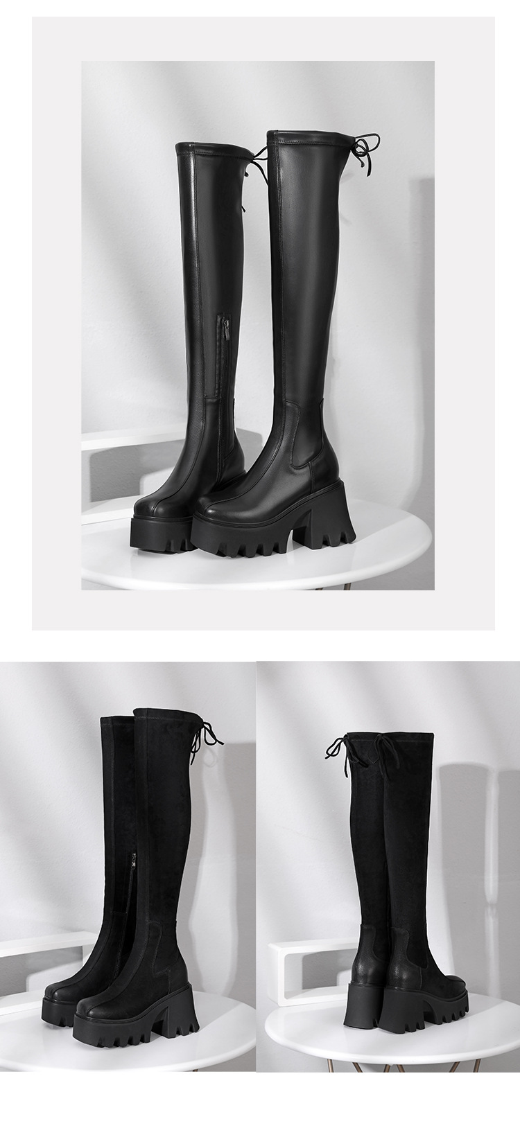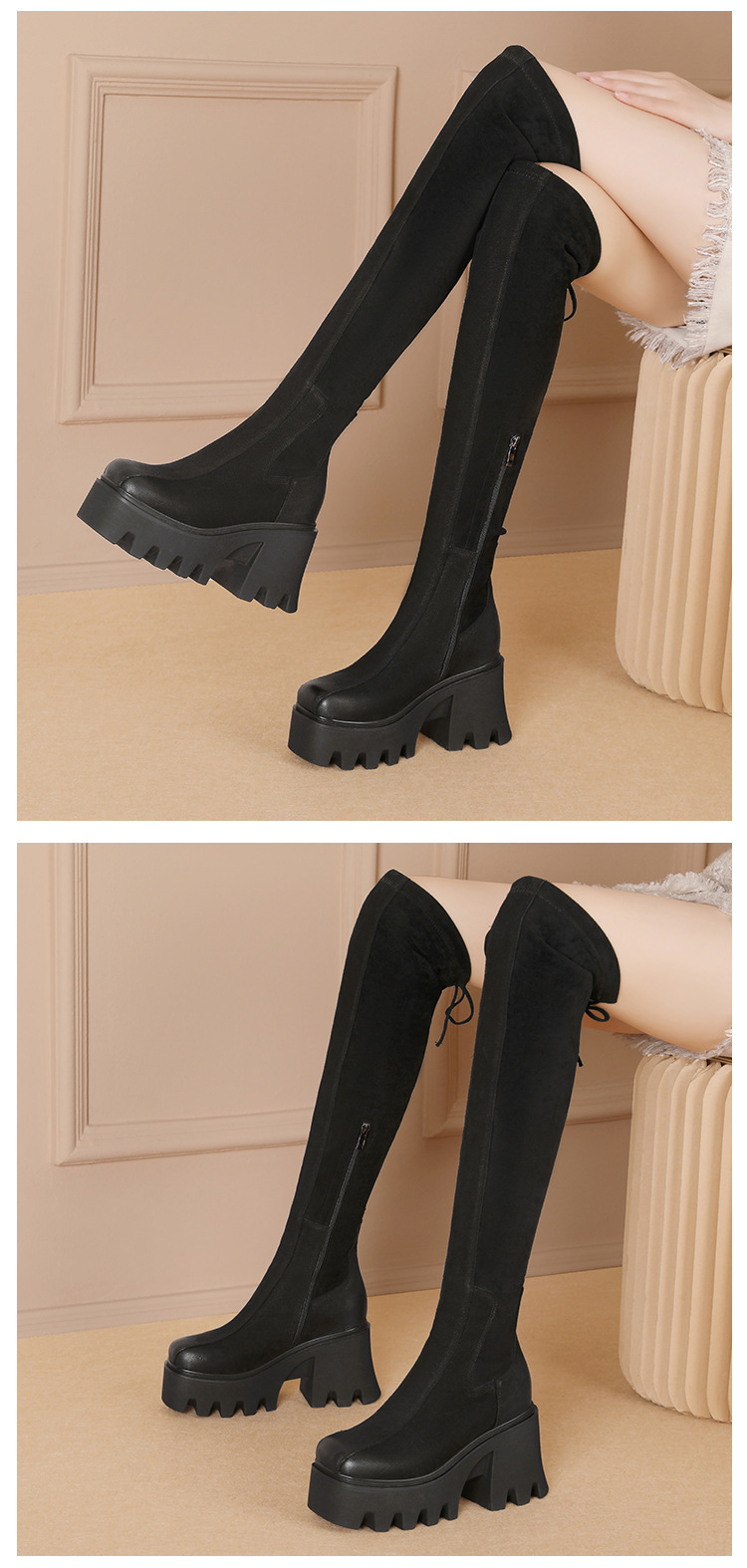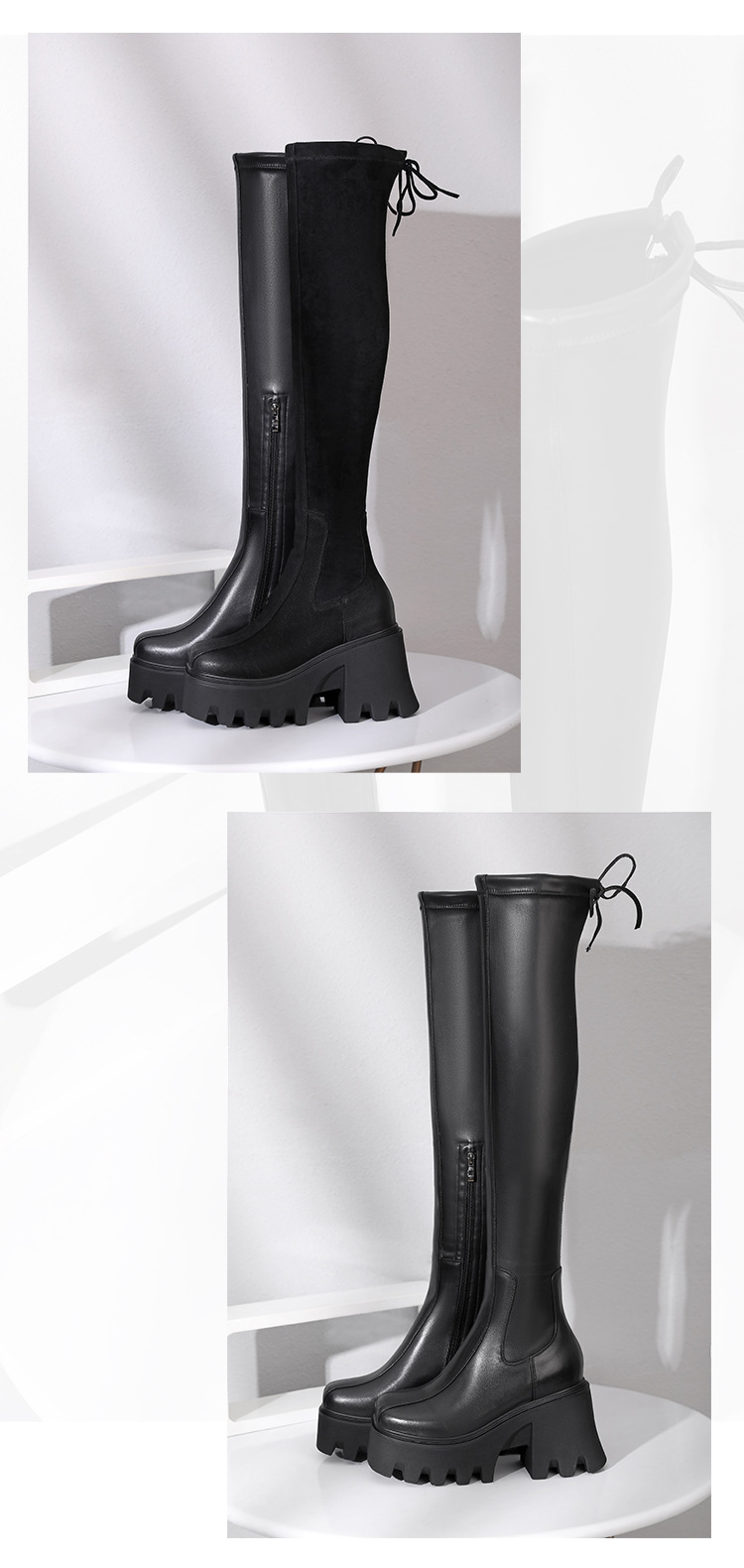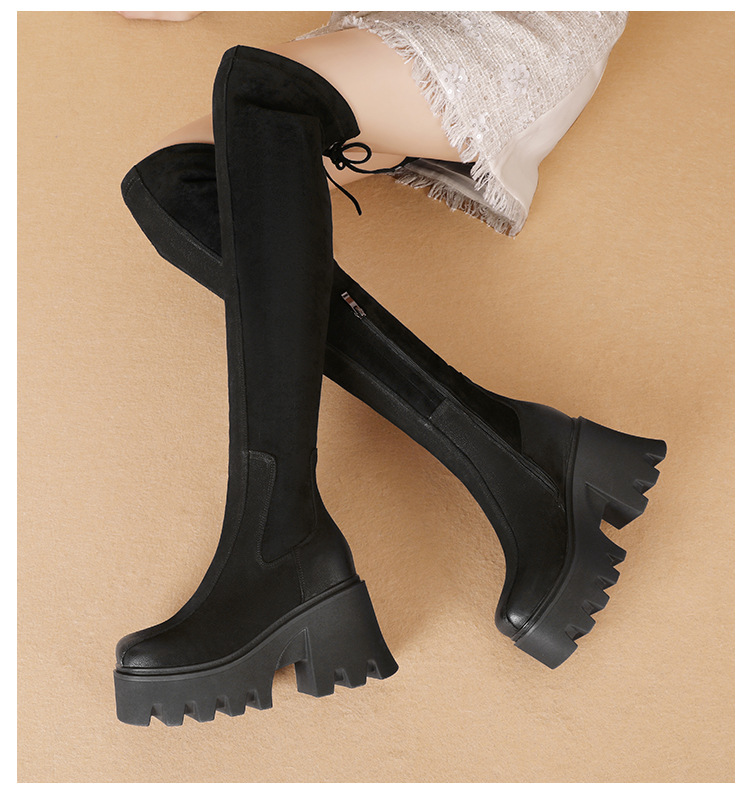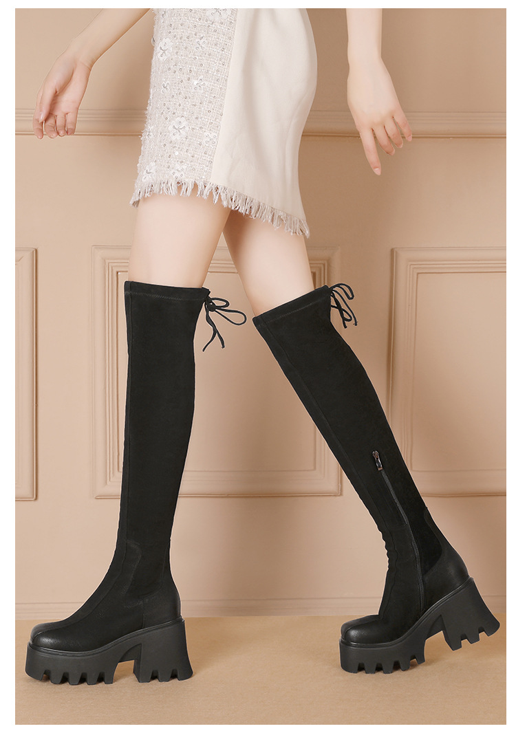 Đôi bốt cổ cao quá gối dành cho nữ, được làm từ chất liệu da mềm dẻo, co giãn nhẹ ôm sát chân. Thiết kế mũi vuông và phần đế bên trong giúp tăng chiều cao thêm 10cm một cách tinh tế, tạo dáng thanh thoát và giúp người mang trông cao hơn. Kiểu dáng phù hợp để phối cùng nhiều loại trang phục khác nhau trong mùa thu. Sử dụng dễ dàng, mang vào và tháo ra thuận tiện. | Tên sản phẩm: Boot Cổ Cao Nữ Cao 10cm Cổ Cao Qua Gối Tăng Chiều Cao Hàng Mùa Xuân Thu Đông - Giày Dép Nữ | Mã sản phẩm: B4305 - Giá: 1.830.000đ | Mã nhà sản xuất: QIDNG-G05Hình ảnh sản phẩm