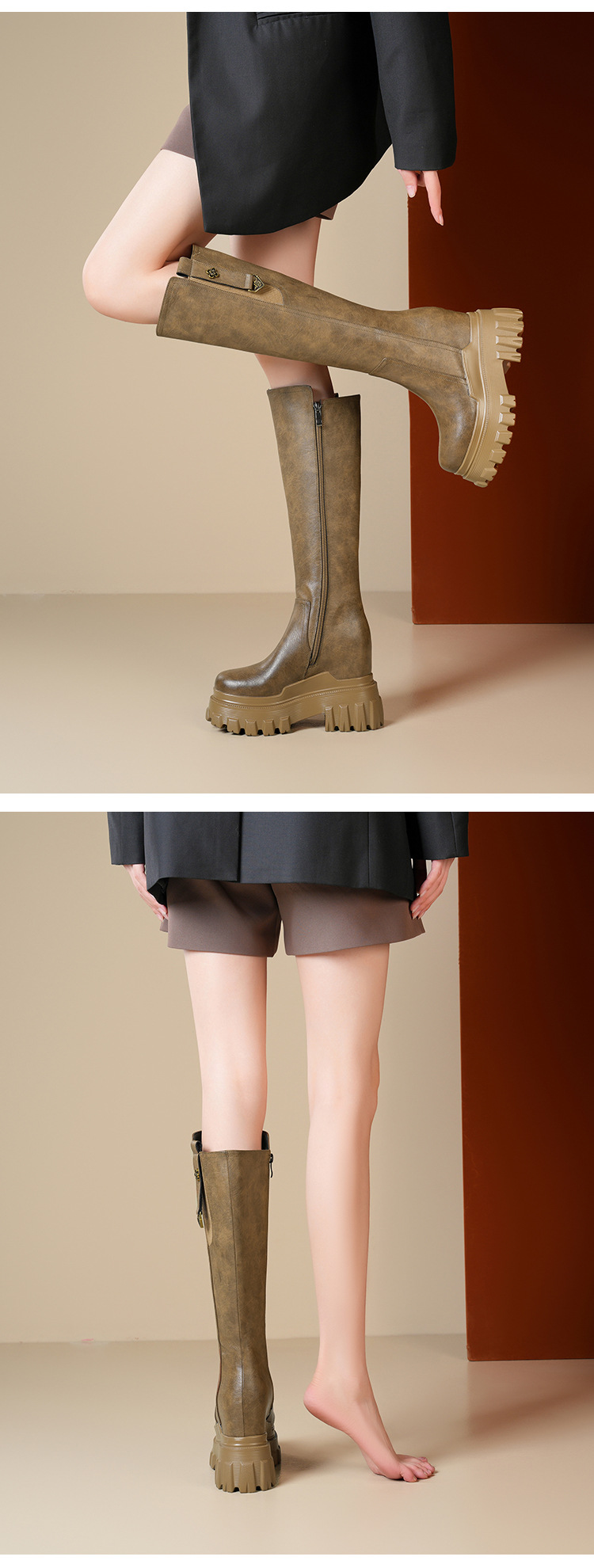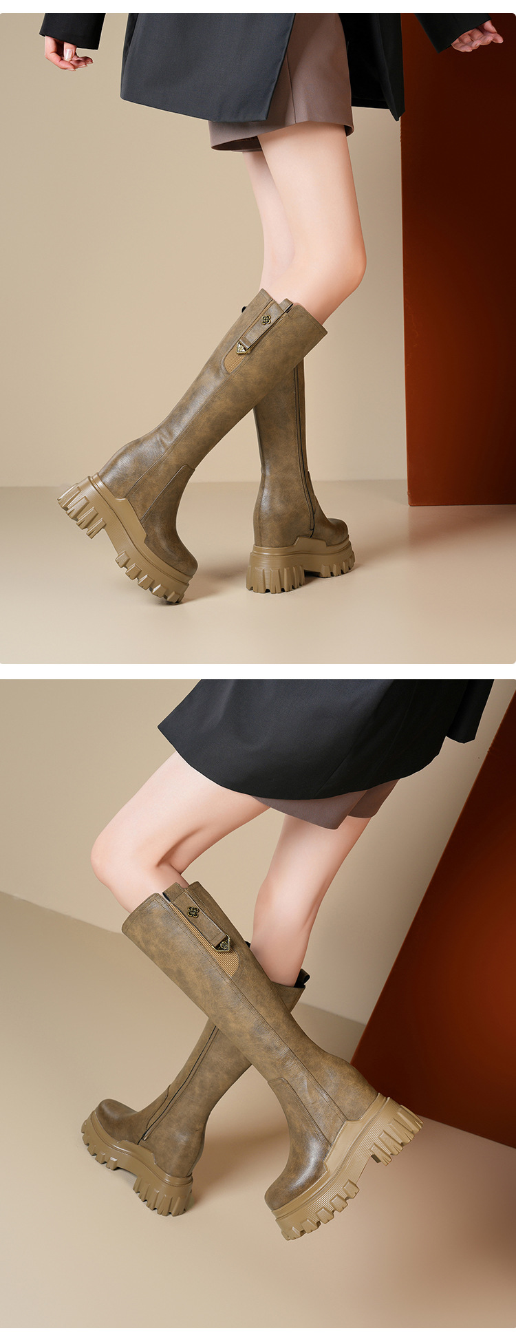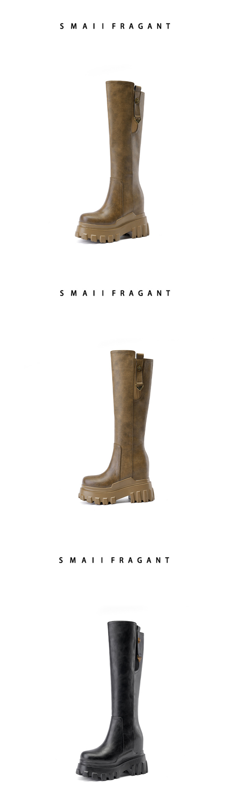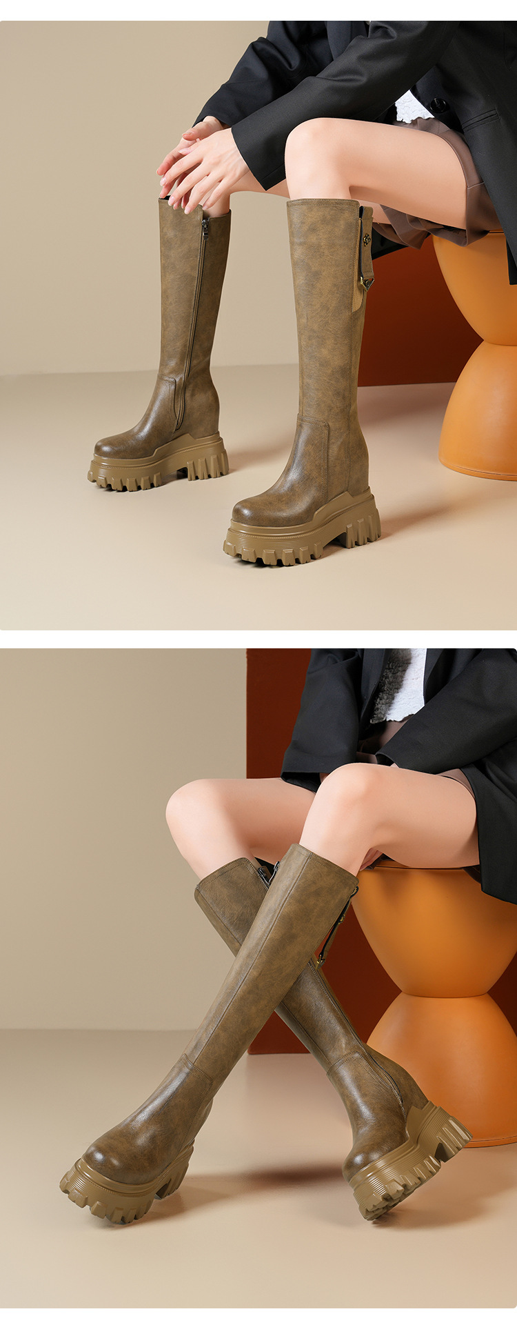 Đôi bốt này có phần đế dày bên trong giúp tăng chiều cao lên đến mười hai phân một cách tự nhiên. Kiểu dáng bốt dài không quá đầu gối, phù hợp cho thời tiết mát mẻ. Phần đế ngoài được thiết kế kiểu đế xuồng vững chãi, tạo dáng đứng đắn. Bạn có thể dễ dàng phối cùng quần legging, quần jeans hay váy để tạo điểm nhấn cho trang phục hằng ngày. | Tên sản phẩm: Boot Cổ Cao Nữ Cao 12cm Cổ Cao Qua Gối Tăng Chiều Cao Đế Cao Hàng Mùa Xuân Thu Đông - Giày Dép Nữ | Mã sản phẩm: B4313 - Giá: 2.690.000đ | Mã nhà sản xuất: QIDNG-G06Hình ảnh sản phẩm