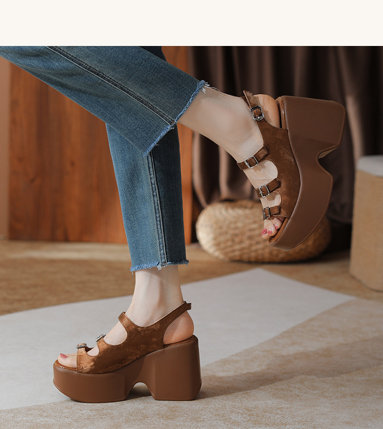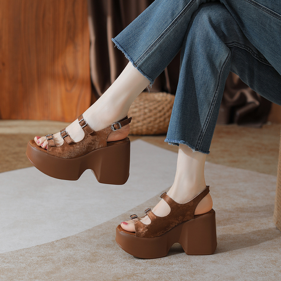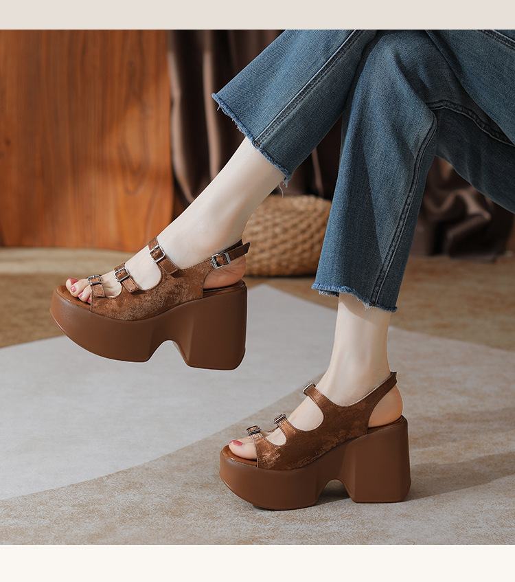 Đôi giày sandal nữ này có phần đế dày và gót cao 10cm, giúp tôn dáng một cách thoải mái. Kiểu dáng mang phong cách châu Âu cổ điển, với các dây quấn mắt cá chân theo kiểu dáng La Mã. Sản phẩm được làm từ chất liệu da thật, mang lại cảm giác mềm mại và bền đẹp. Bạn có thể phối hợp cùng váy hoặc quần để tạo nên vẻ ngoài ấn tượng cho mùa hè. | Tên sản phẩm: Giày Cao Gót Nữ Chất Liệu Da Bò Cao 10cm Đế Cao Hàng Mùa Hè Phục Cổ Cổ Điển - Giày Dép Nữ | Mã sản phẩm: B4321 - Giá: 1.440.000đ | Mã nhà sản xuất: QIDNG-G04Hình ảnh sản phẩm