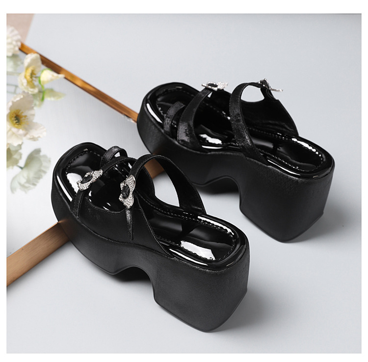 Đôi dép quai ngang có phần đế dày tạo dáng gót cao mười phân, mang đến cảm giác thoải mái khi di chuyển. Sản phẩm được làm từ chất liệu da thật, kiểu dáng thanh lịch theo phong cách châu Âu. Dép có qu hở ngón tiện lợi, phù hợp mặc cùng nhiều loại trang phục trong mùa hè. Bạn có thể dùng làm dép đi trong nhà hoặc mang ra ngoài đường đều phù hợp. | Tên sản phẩm: Giày Dép Lê Nữ Chất Liệu Da Bò Cao 10cm Tăng Chiều Cao Đế Xuồng Đế Cao Hàng Mùa Hè - Giày Dép Nữ | Mã sản phẩm: B4324 - Giá: 1.440.000đ | Mã nhà sản xuất: QIDNG-G04Hình ảnh sản phẩm