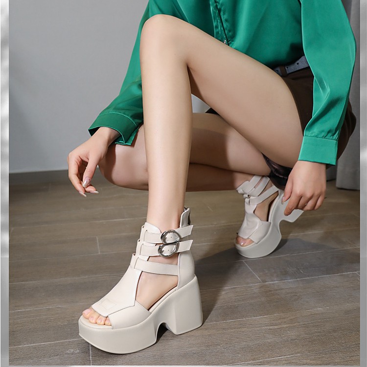 Đôi bốt mùa hè này có phần đế bên trong giúp tăng chiều cao thêm mười phân. Kiểu dáng ủng mát mẻ với phần mũi hở điệu đà, thân giày có các họa tiết đục lỗ tinh tế. Phần đế ngoài được thiết kế đặc biệt giúp chống thấm nước tốt. Bạn có thể dễ dàng phối hợp với nhiều loại trang phục như quần jeans, váy hay quần short để tạo điểm nhấn nổi bật. | Tên sản phẩm: Giày Cao Gót Nữ Cao 10cm Chống Nước Tăng Chiều Cao Miệng Cá Hàng Mùa Hè - Giày Dép Nữ | Mã sản phẩm: B4329 - Giá: 2.020.000đ | Mã nhà sản xuất: QIDNG-G05Hình ảnh sản phẩm