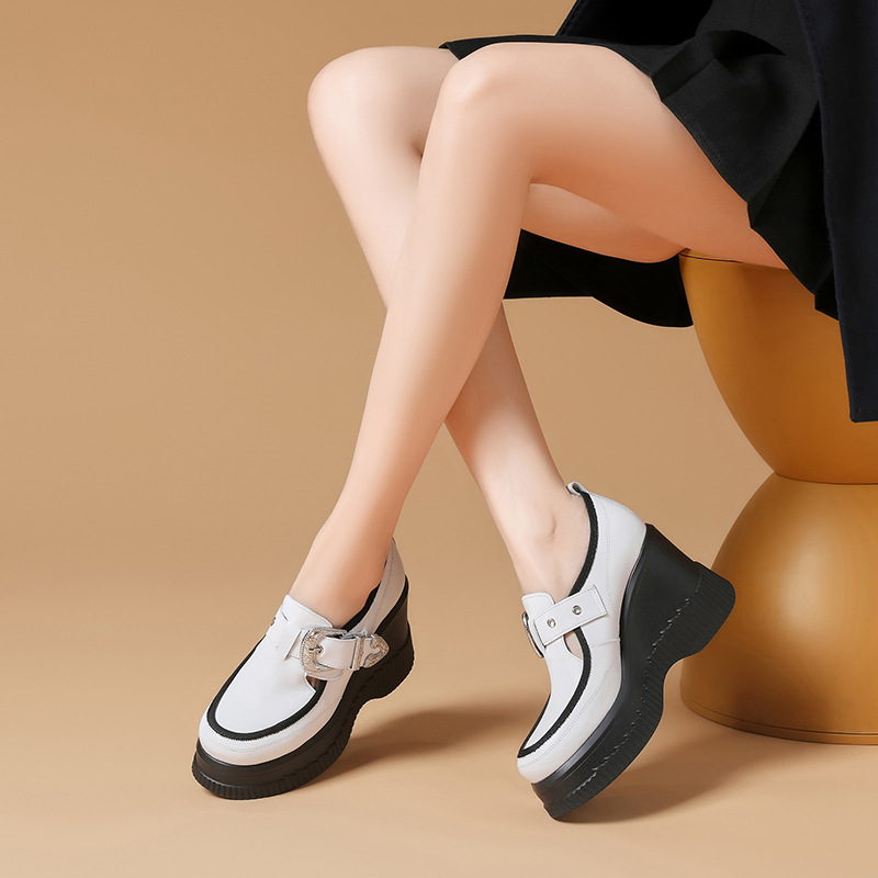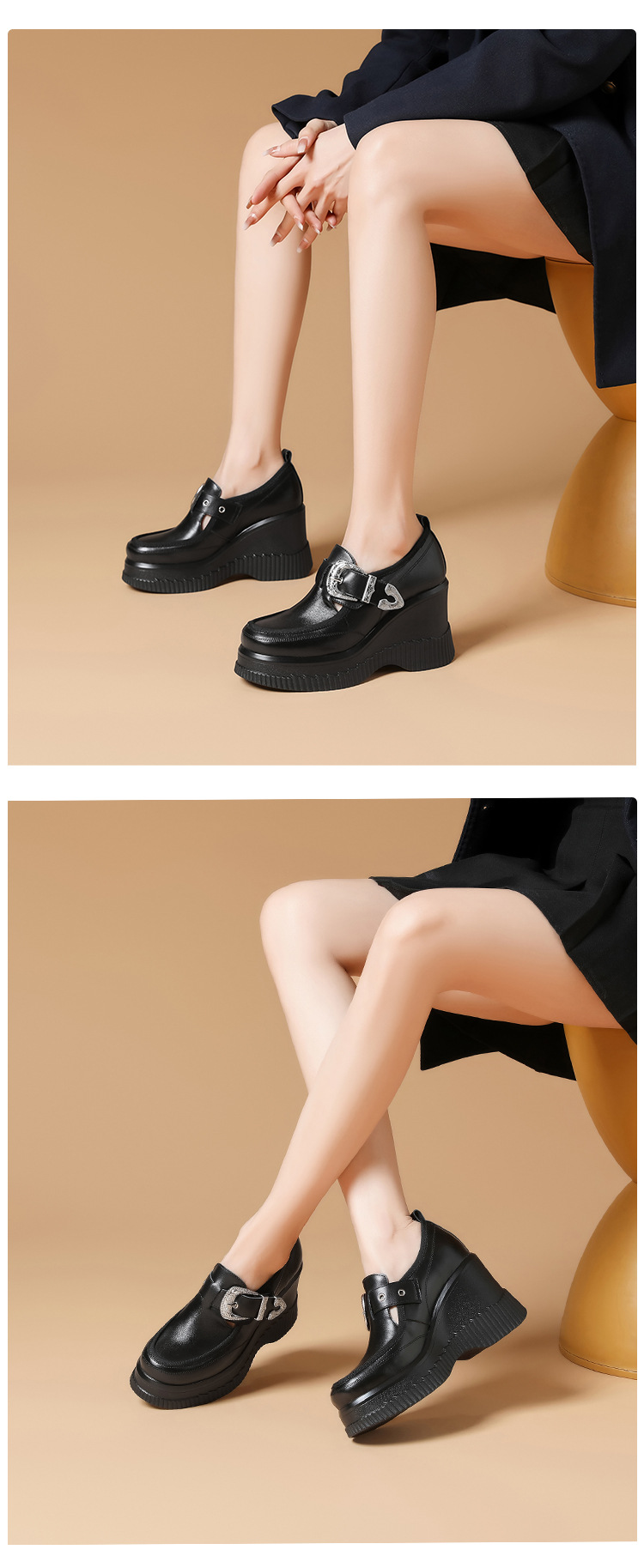 Giày đế xuồng cho nữ, kiểu dáng hở mũi, được làm từ chất liệu da mềm mại. Sản phẩm có phần đế dày 10cm, tạo dáng đế bằng thời trang giúp tôn chiều cao đáng kể. Đây là kiểu giày dễ mang với thiết kế không cần buộc dây, rất tiện lợi. Bạn có thể phối hợp cùng quần jeans, váy hay nhiều trang phục khác để tạo điểm nhấn năng động và cá tính cho bản thân. | Tên sản phẩm: Giày Cao Gót Nữ Chất Liệu Da Bò Cao 10cm Đế Xuồng Đế Cao Hàng Mùa Xuân Thu Đông - Giày Dép Nữ | Mã sản phẩm: B4345 - Giá: 1.730.000đ | Mã nhà sản xuất: QIDNG-G05Hình ảnh sản phẩm